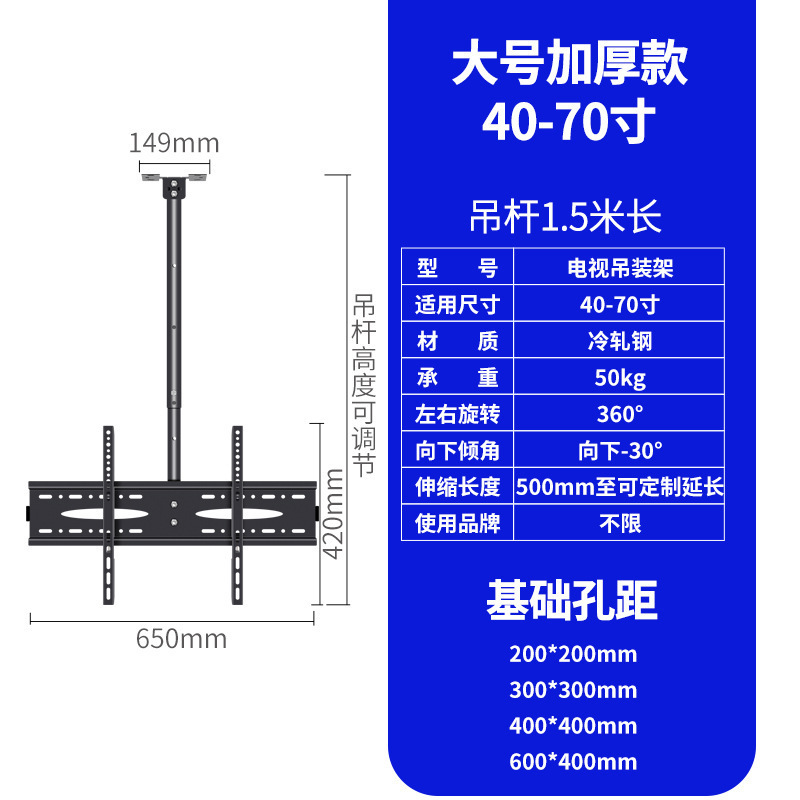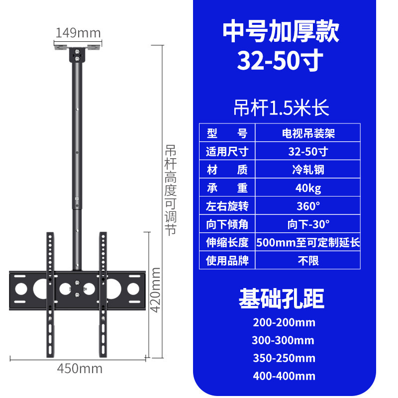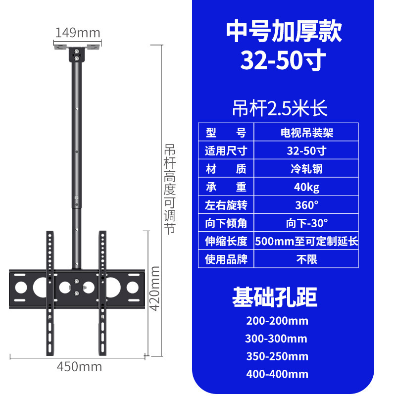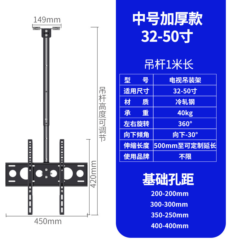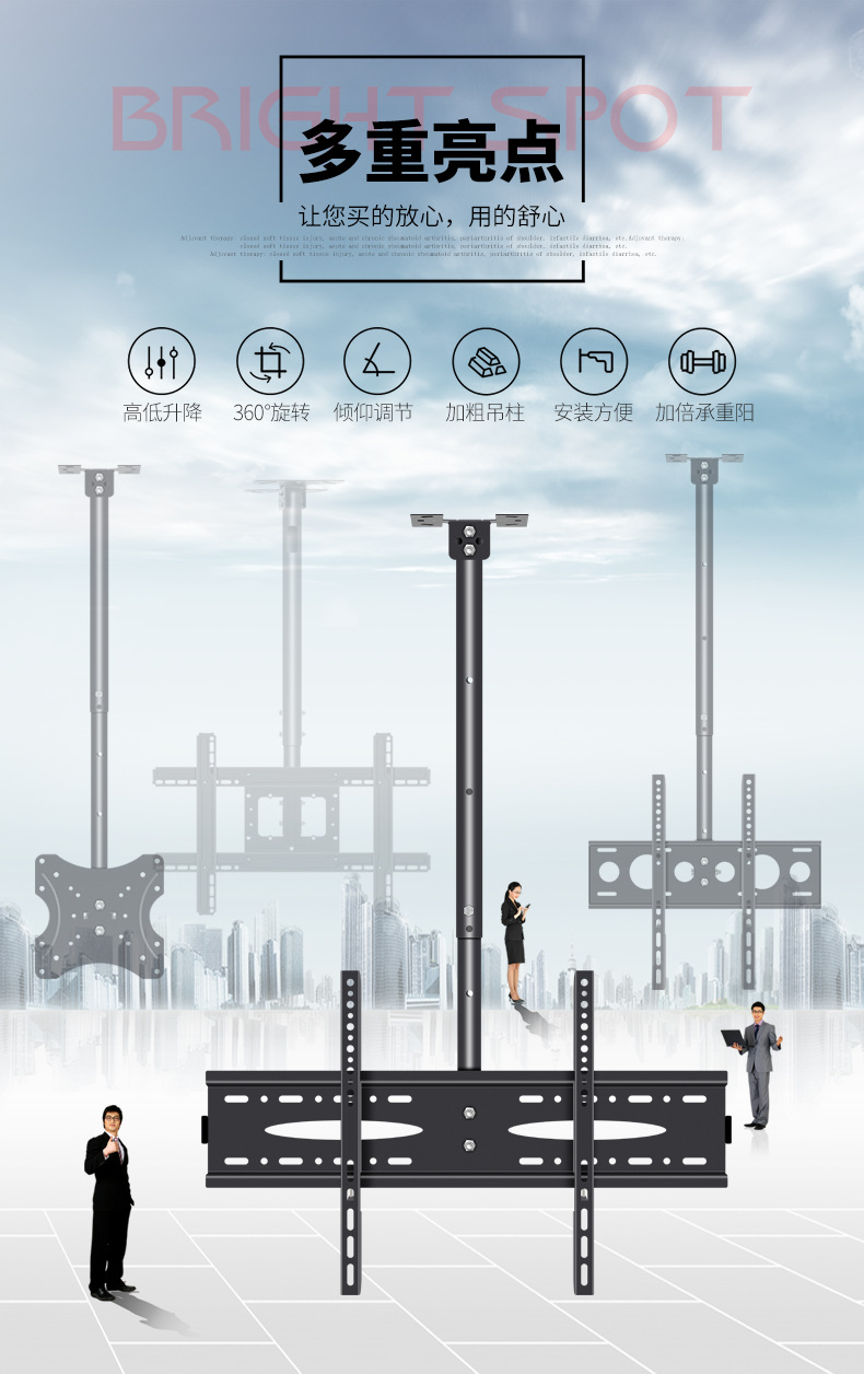 Малый размер 14—32inch (регулировка по высоте 0,5—1m) телескопический, угол поворота и наклона, боковой монтаж; Малый размер 14—32inch (регулировка по высоте 0,5—1.5m), телескопический, угол поворота и наклона, боковой монтаж; Малый размер 14–32inch (регулировка высоты 0,5–2m) телескопическое вращение, угол наклона/боковое крепление; Малый размер 14–32inch (регулировка по высоте 0,5–3m) телескопическое вращение, угол наклона/боковое крепление; Средний размер 32—50inch (регулировка по высоте 0,5—1m) телескопическое вращение, угол наклона/боковой монтаж; Средний размер 32–50inch (регулировка по высоте 0,5–1.5m градусов), телескопическое вращение, угол наклона/боковое крепление; Средний размер 32—50inch (регулировка по высоте 0,5—2m) телескопическое вращение, угол наклона/боковой монтаж; Средний размер 32—50inch (регулировка по высоте 0,5—3m) телескопическое вращение, угол наклона/боковой монтаж; Большой утолщенный 40— 75inch (регулировка по высоте 0,5— 1m), выдвижной, вращающийся и наклоняемый/монтируемый сбоку; Большой утолщенный 40— 75inch (регулировка по высоте 0,5— 1.5m), выдвижной, вращающийся и наклоняемый/монтируемый сбоку; Большой утолщенный 40—75inch (регулировка по высоте 0,5—2m) выдвижной, вращающийся и наклоняемый/монтируемый сбоку; Большой утолщенный 40—75inch (регулировка по высоте 0,5—3m) выдвижной, вращающийся и наклоняемый/монтируемый сбоку; Флагманская модель 40—80inch (регулировка по высоте 0,5—1.5m) выдвижной угол наклона вращения/может быть установлен сбоку; Флагманская модель 40—80inch (регулировка по высоте 0,5—2.5m) выдвижной угол наклона вращения/может быть установлен сбоку; 32— 43inch Бесшовный однополюсный два телевизора Высота 0.5m — 1m; 32— 43inch Бесшовный однополюсный два телевизора Высота 0.5m — 2m; 32— 50inch Бесшовный двухполюсный два телевизора Высота 0.5m — 1m; 32— 50inch Бесшовный двухполюсный два телевизора Высота 0.5m — 2m; 32— 50inch Бесшовный двойной штатив для трех телевизоров Высота 0.5m — 1m; 32— 50inch Бесшовный двойной штатив для трех телевизоров Высота 0.5m — 2m