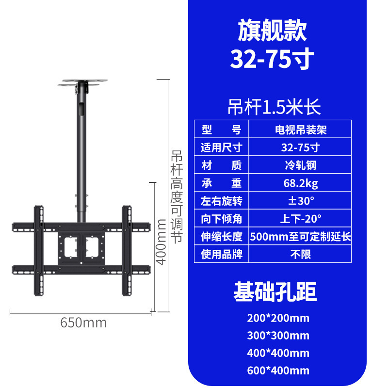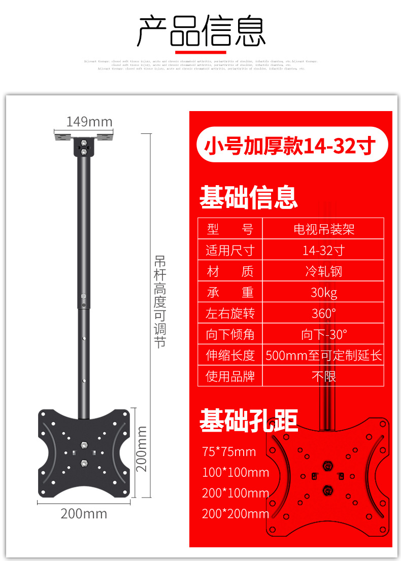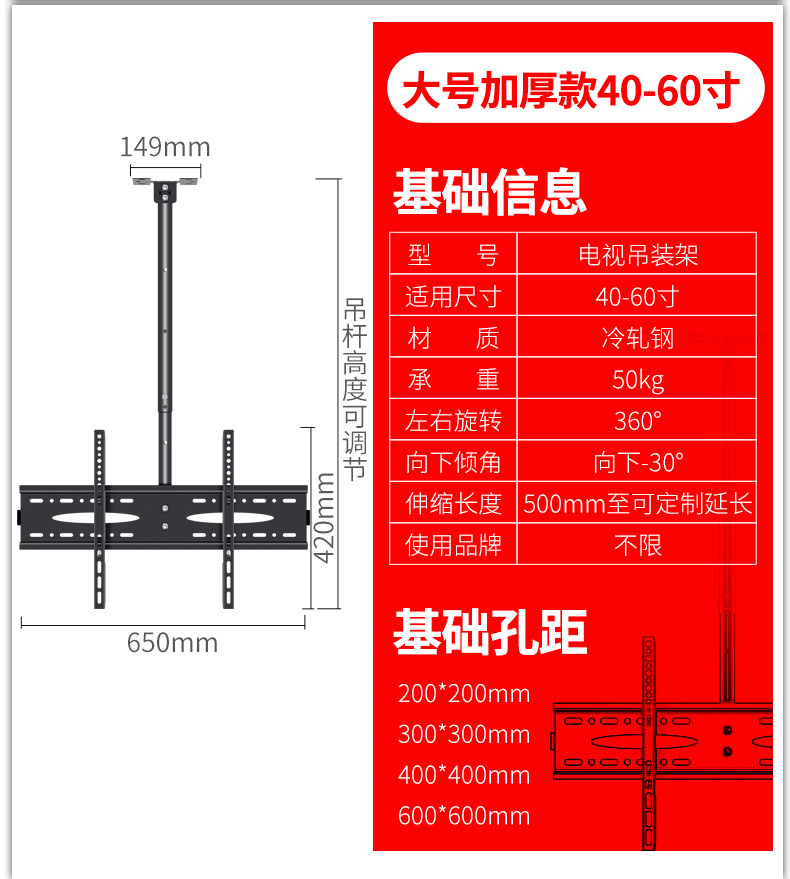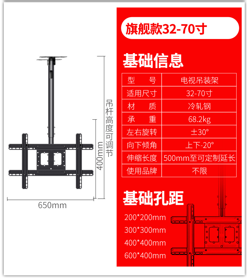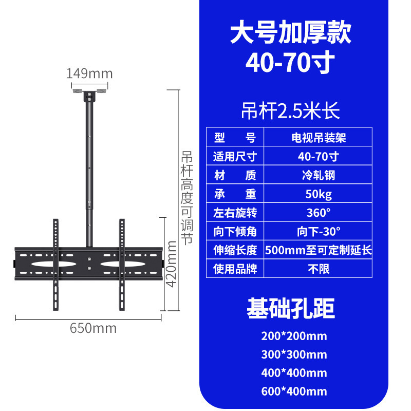 Малый размер 14—32inch (регулировка по высоте 0,5—1m) телескопический, угол поворота и наклона, боковой монтаж; Малый размер 14—32inch (регулировка по высоте 0,5—1.5m), телескопический, угол поворота и наклона, боковой монтаж; Малый размер 14–32inch (регулировка высоты 0,5–2m) телескопическое вращение, угол наклона/боковое крепление; Малый размер 14–32inch (регулировка по высоте 0,5–3m) телескопическое вращение, угол наклона/боковое крепление; Средний размер 32—50inch (регулировка по высоте 0,5—1m) телескопическое вращение, угол наклона/боковой монтаж; Средний размер 32–50inch (регулировка по высоте 0,5–1.5m градусов), телескопическое вращение, угол наклона/боковое крепление; Средний размер 32—50inch (регулировка по высоте 0,5—2m) телескопическое вращение, угол наклона/боковой монтаж; Средний размер 32—50inch (регулировка по высоте 0,5—3m) телескопическое вращение, угол наклона/боковой монтаж; Большой утолщенный 40— 75inch (регулировка по высоте 0,5— 1m), выдвижной, вращающийся и наклоняемый/монтируемый сбоку; Большой утолщенный 40— 75inch (регулировка по высоте 0,5— 1.5m), выдвижной, вращающийся и наклоняемый/монтируемый сбоку; Большой утолщенный 40—75inch (регулировка по высоте 0,5—2m) выдвижной, вращающийся и наклоняемый/монтируемый сбоку; Большой утолщенный 40—75inch (регулировка по высоте 0,5—3m) выдвижной, вращающийся и наклоняемый/монтируемый сбоку; Флагманская модель 40—80inch (регулировка по высоте 0,5—1.5m) выдвижной угол наклона вращения/может быть установлен сбоку; Флагманская модель 40—80inch (регулировка по высоте 0,5—2.5m) выдвижной угол наклона вращения/может быть установлен сбоку; 32— 43inch Бесшовный однополюсный два телевизора Высота 0.5m — 1m; 32— 43inch Бесшовный однополюсный два телевизора Высота 0.5m — 2m; 32— 50inch Бесшовный двухполюсный два телевизора Высота 0.5m — 1m; 32— 50inch Бесшовный двухполюсный два телевизора Высота 0.5m — 2m; 32— 50inch Бесшовный двойной штатив для трех телевизоров Высота 0.5m — 1m; 32— 50inch Бесшовный двойной штатив для трех телевизоров Высота 0.5m — 2m