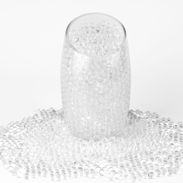 圆珠形吸水树脂简称吸水珠,是一种带有强亲水性基团材料经交联形成网状结构的高分子聚合物,是一种具有吸水保水及吸附香精功能的新型材料,产品吸水后成为晶莹剔透的水晶状材料,可应用于花卉,家居用品等。