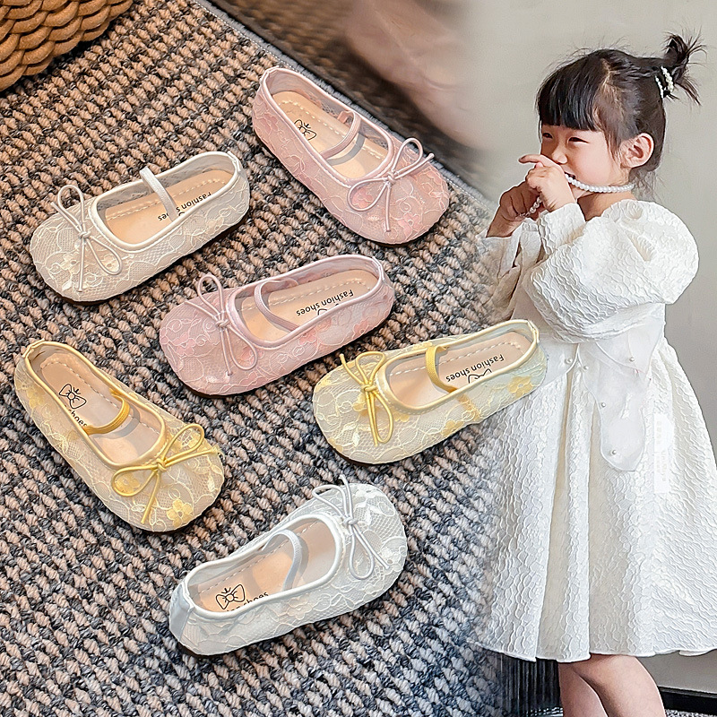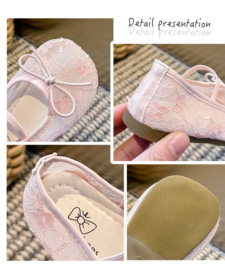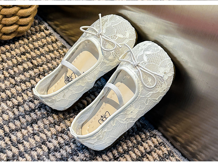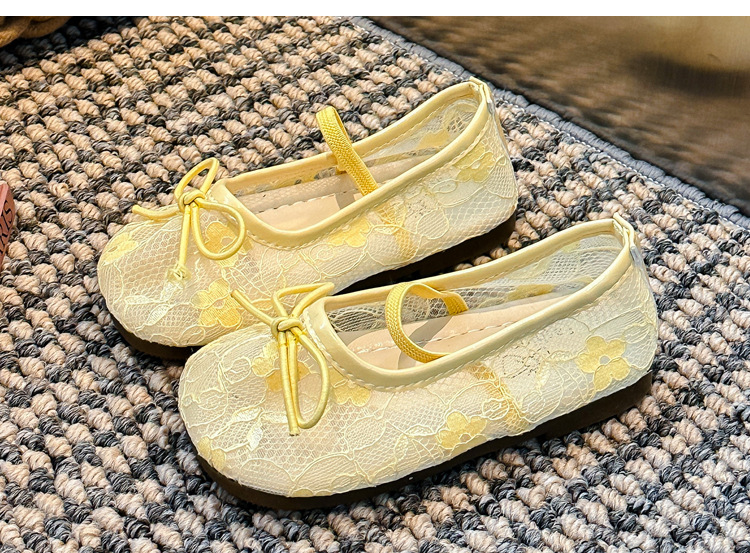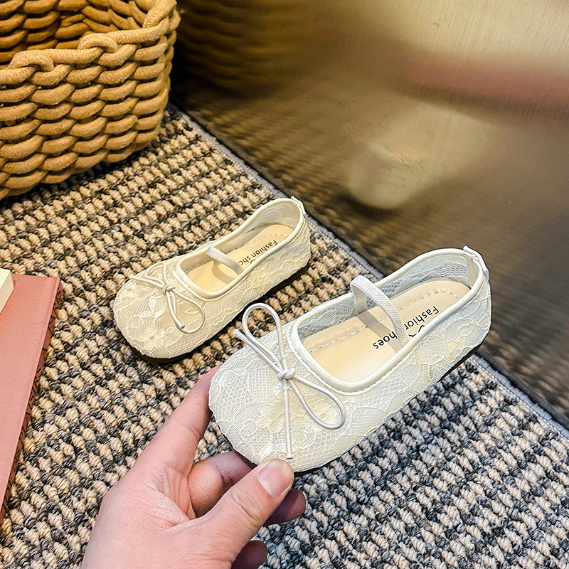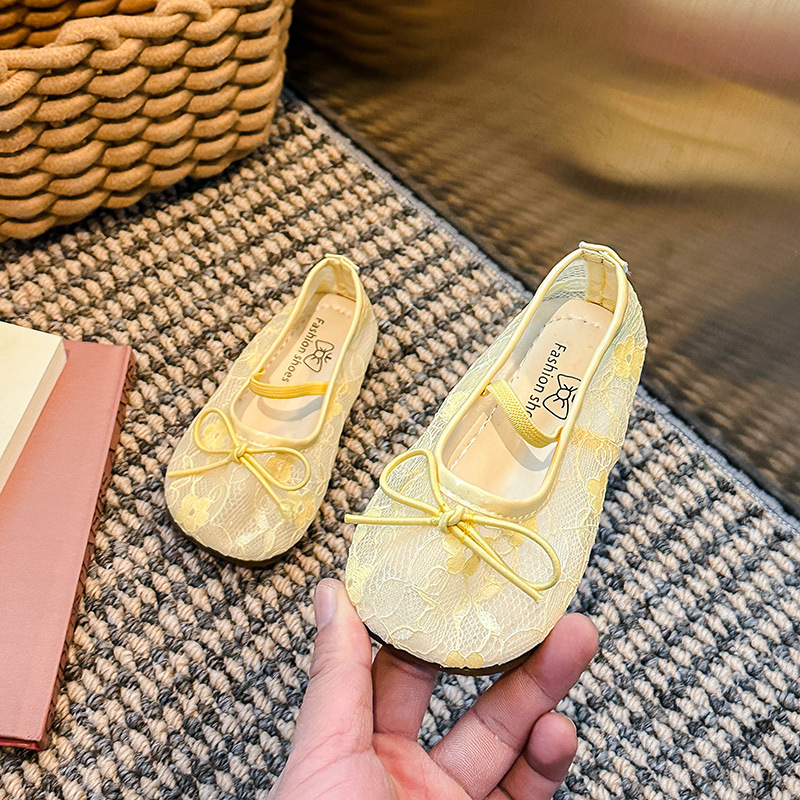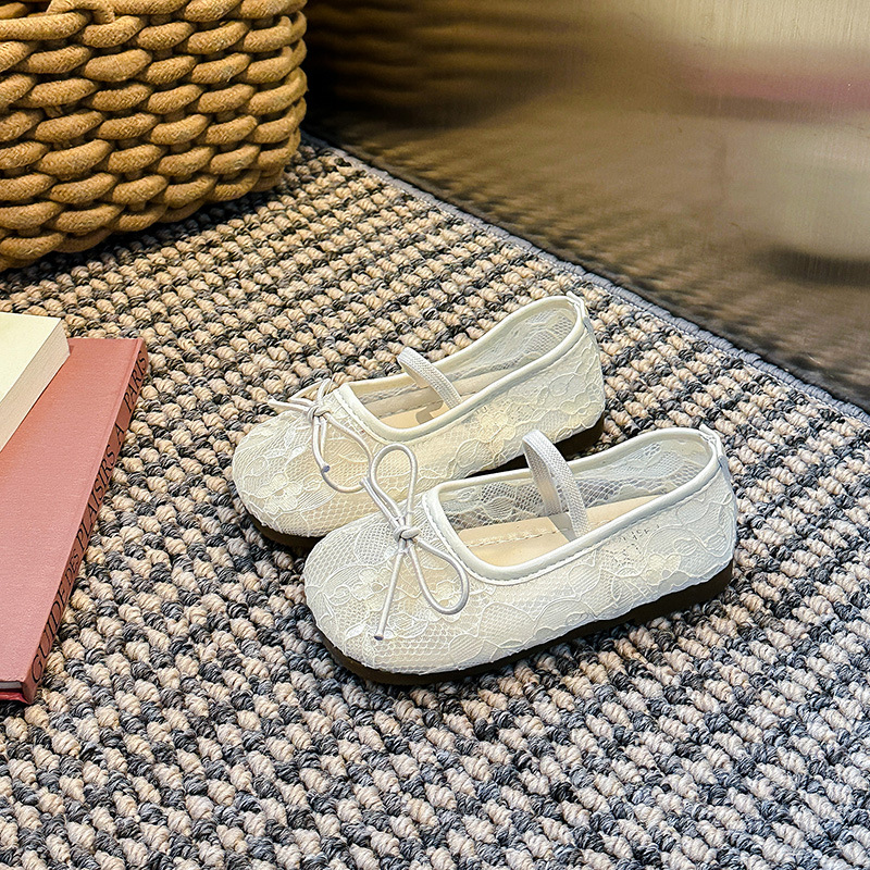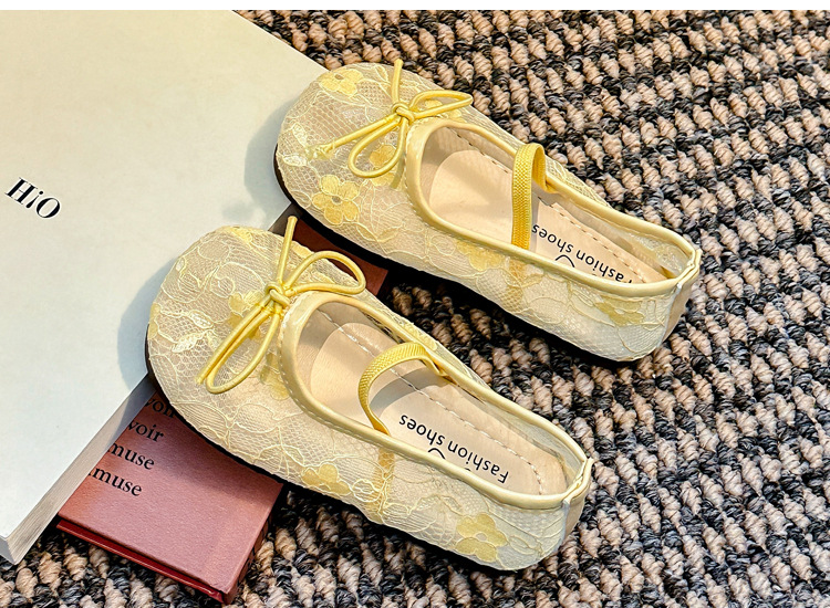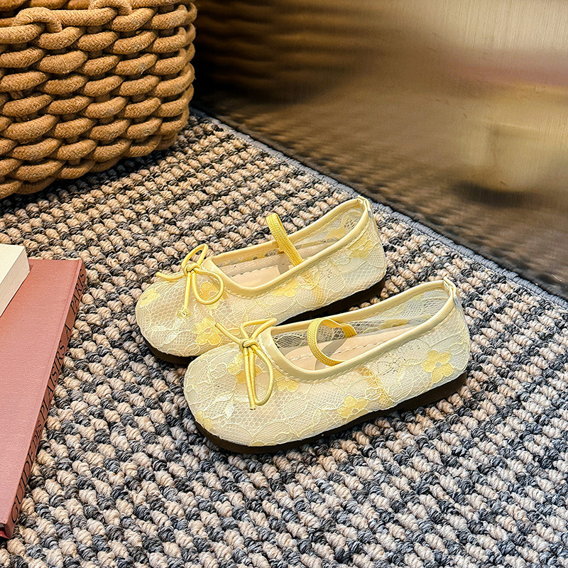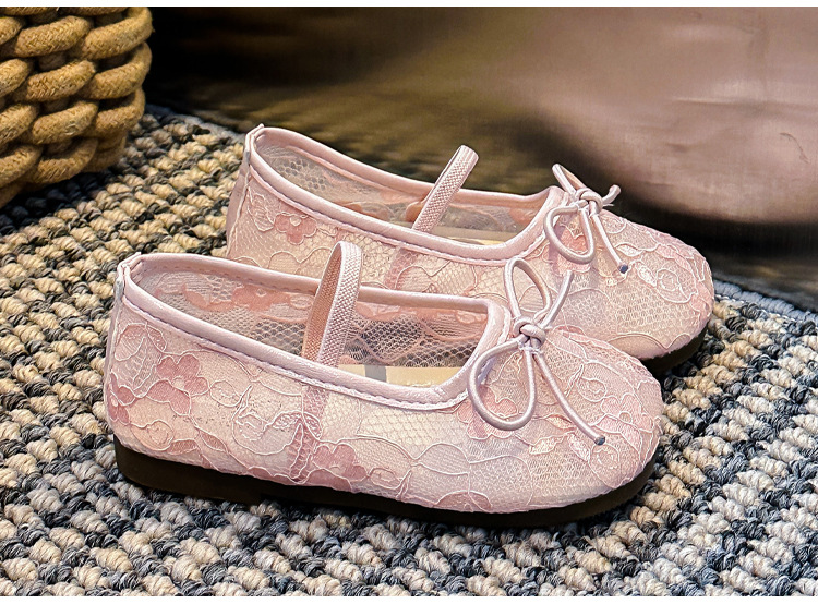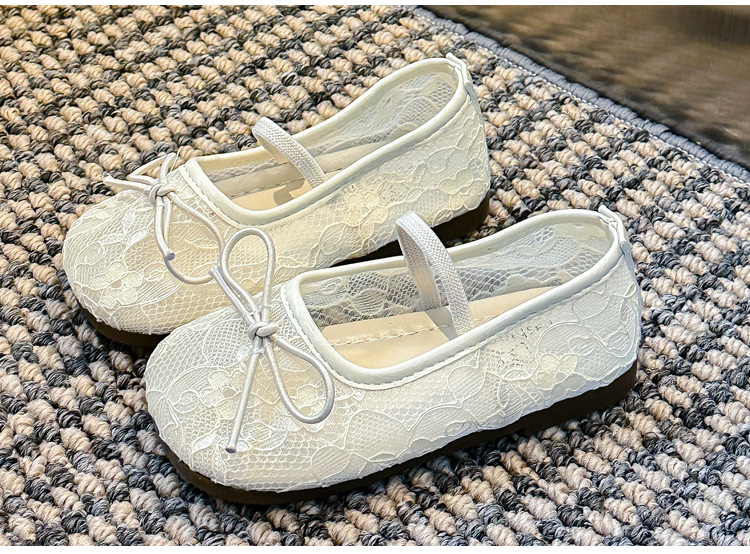 Девушки сплошной цвет милые банты маленькие одиночные туфли 2025 Летние кружевные цветы через сеть сладкие академические сандалии