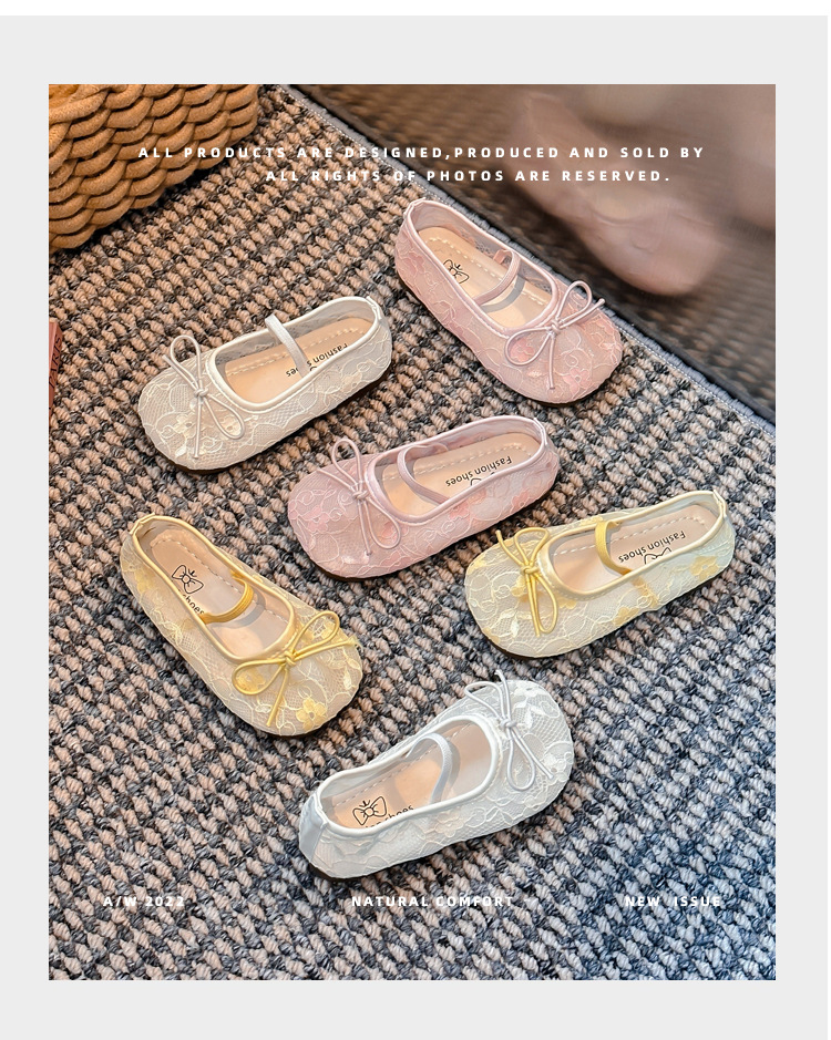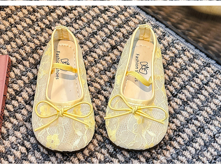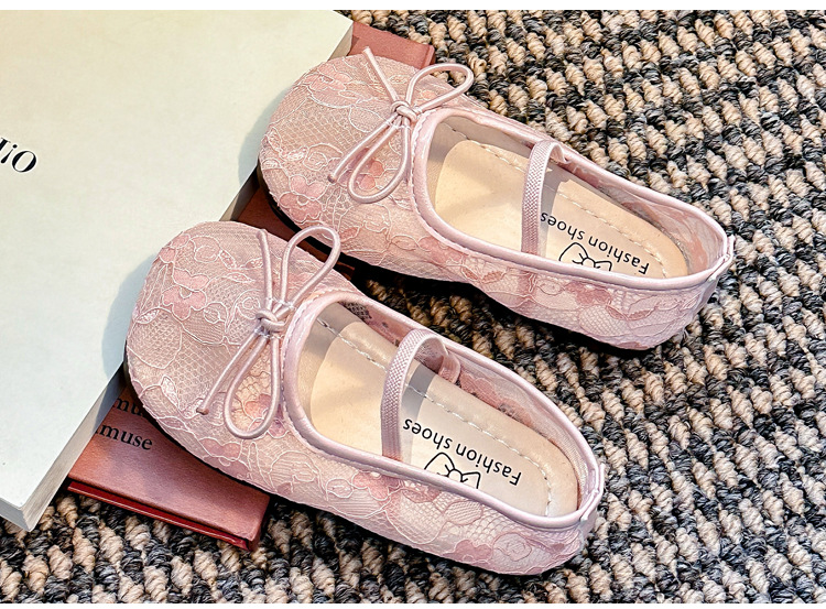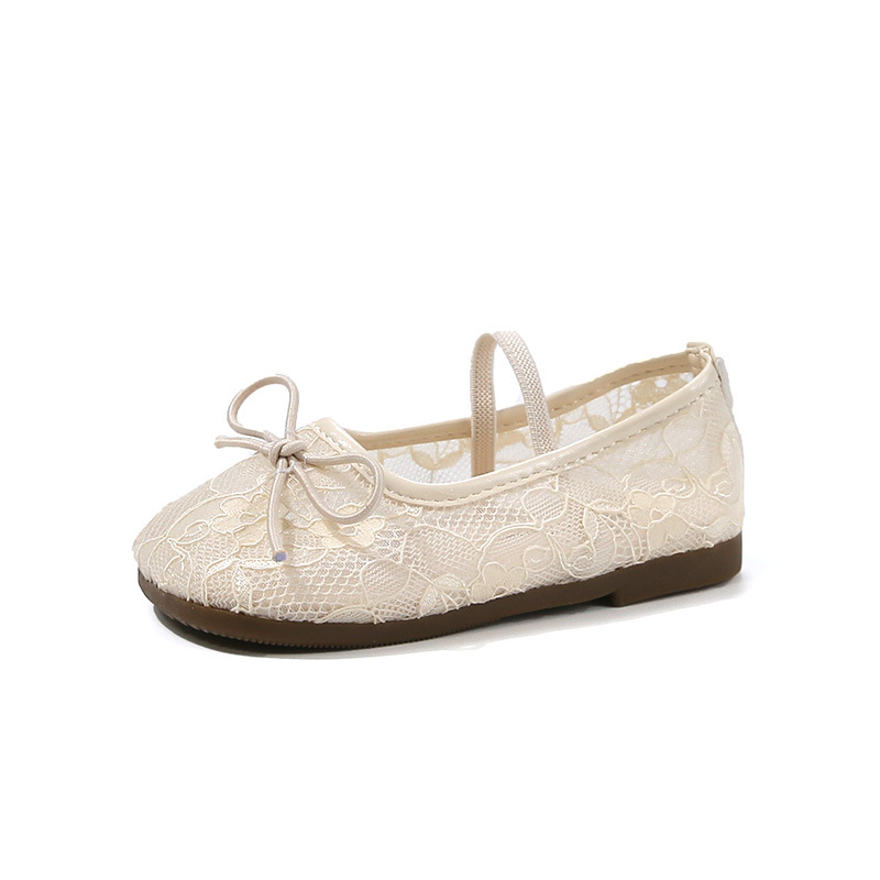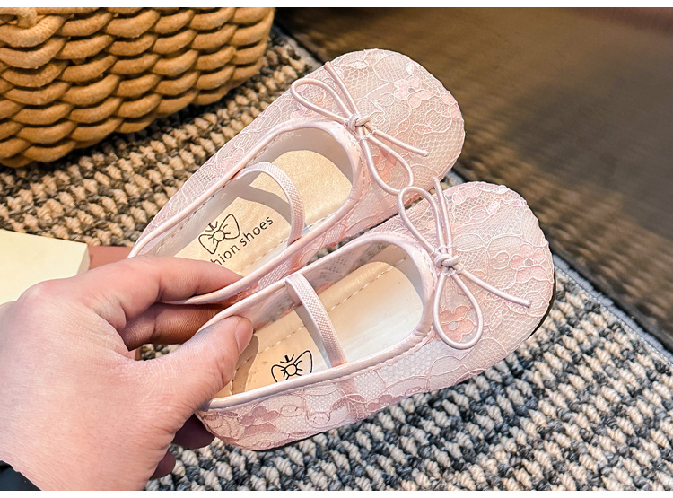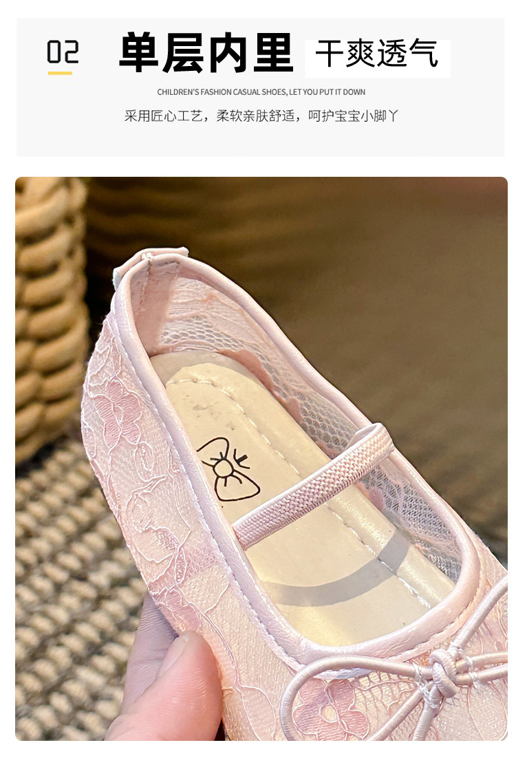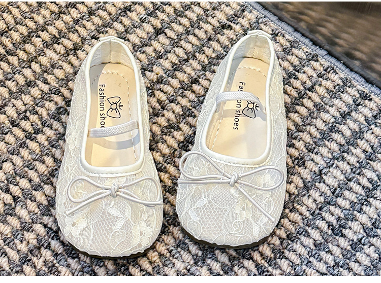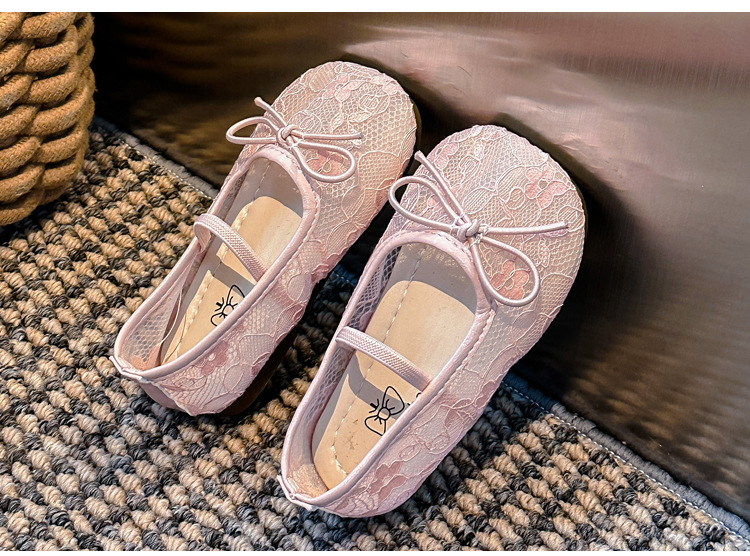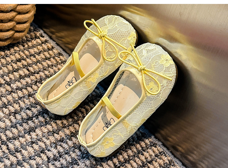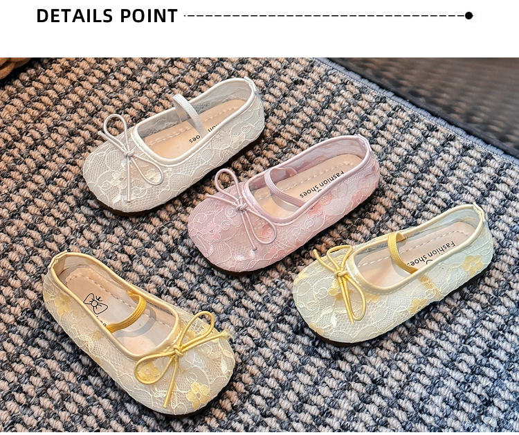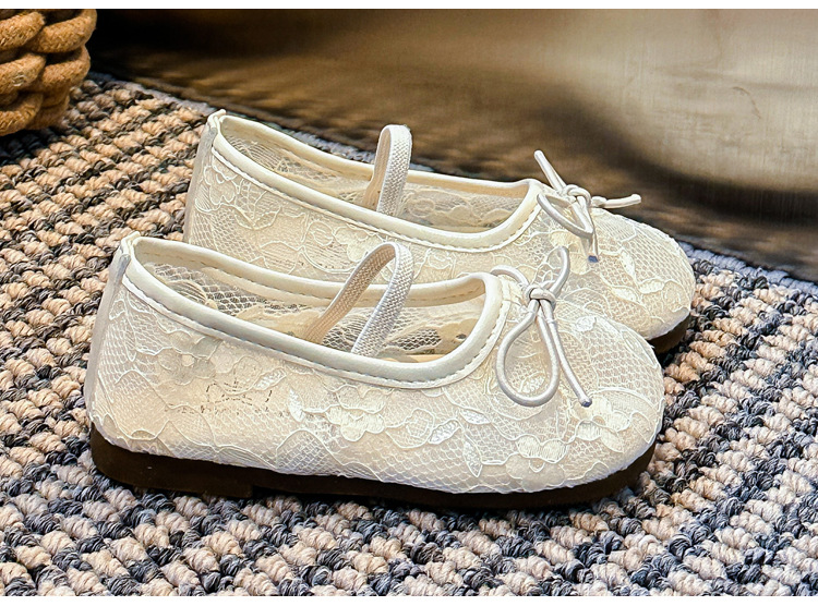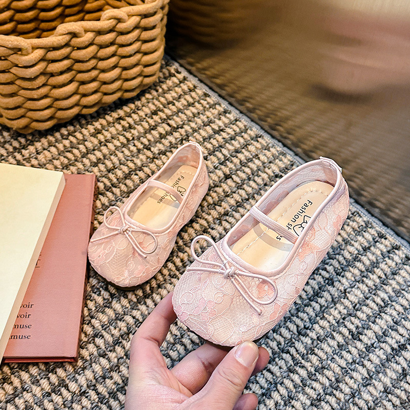 Девушки сплошной цвет милые банты маленькие одиночные туфли 2025 Летние кружевные цветы через сеть сладкие академические сандалии