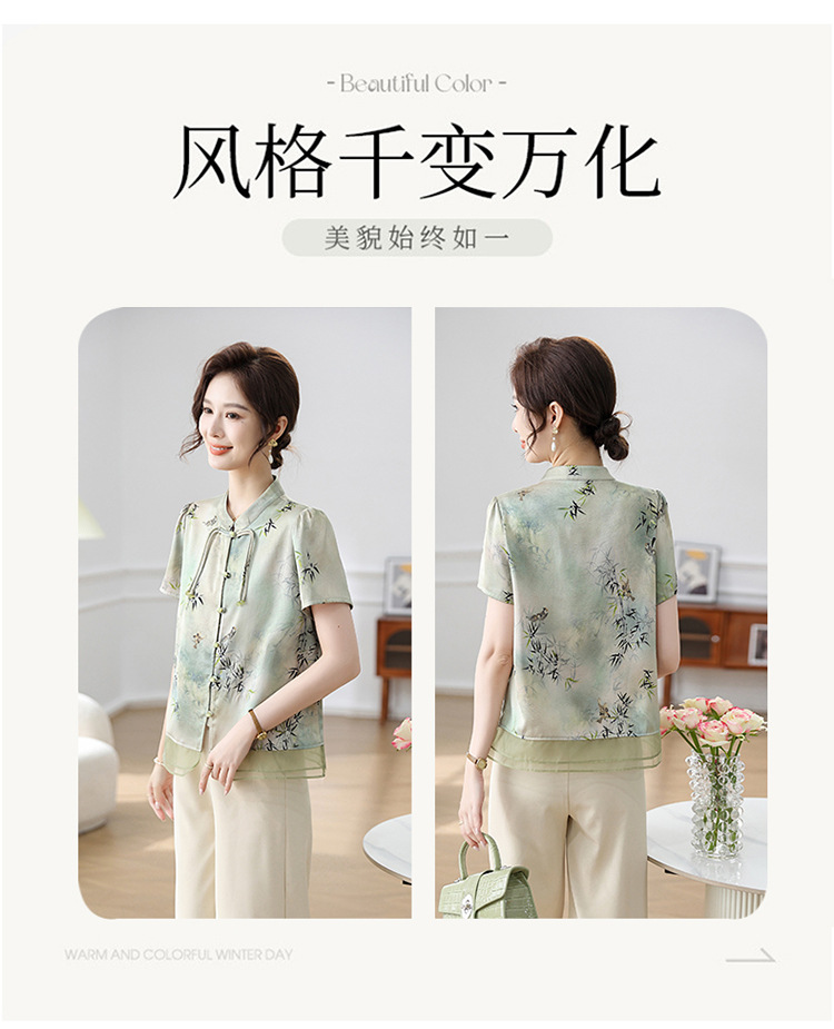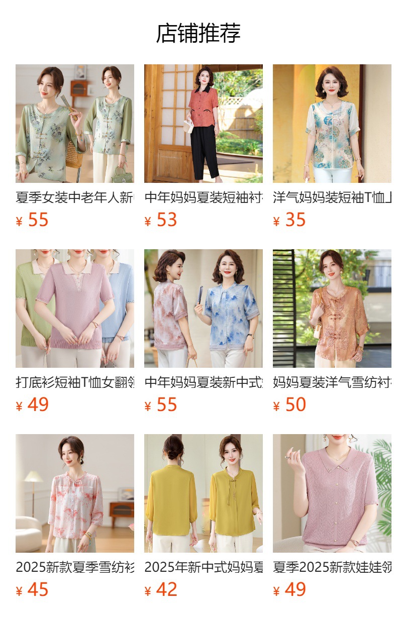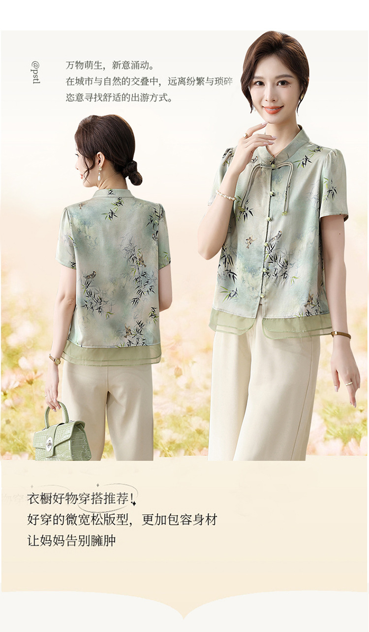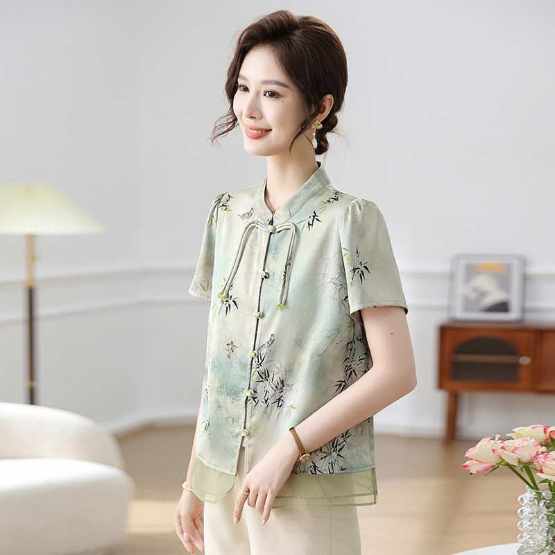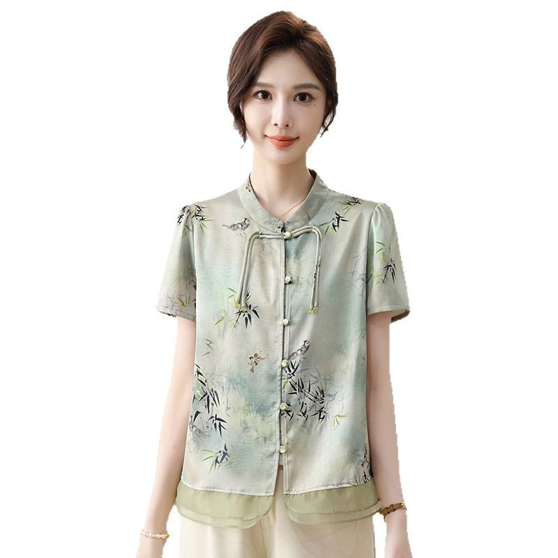 2025 новой летней одежды для мам, рубашки в западном стиле для женщин 40 и 50 лет, летняя одежда для женщин среднего и пожилого возраста, модные топы с короткими рукавами.