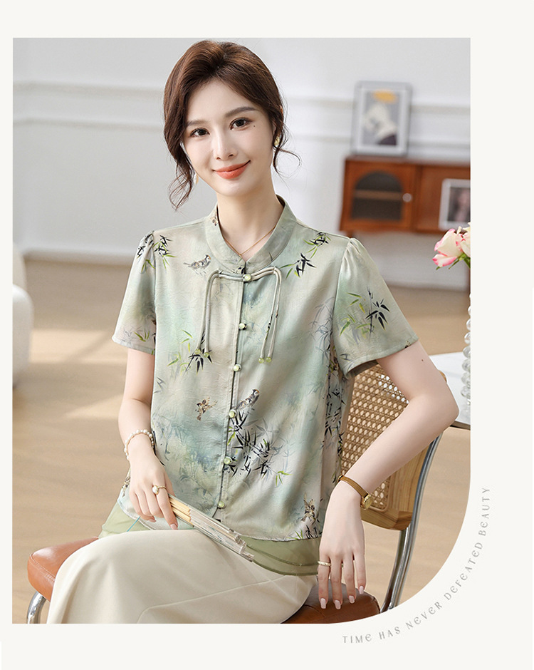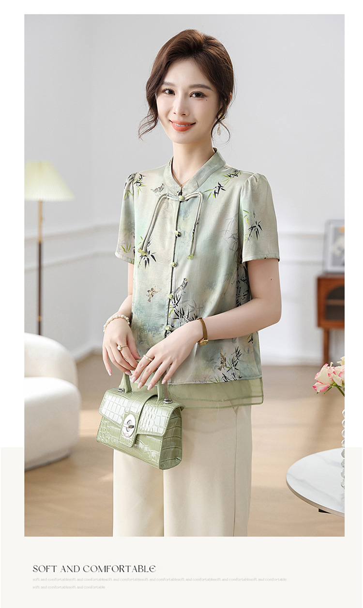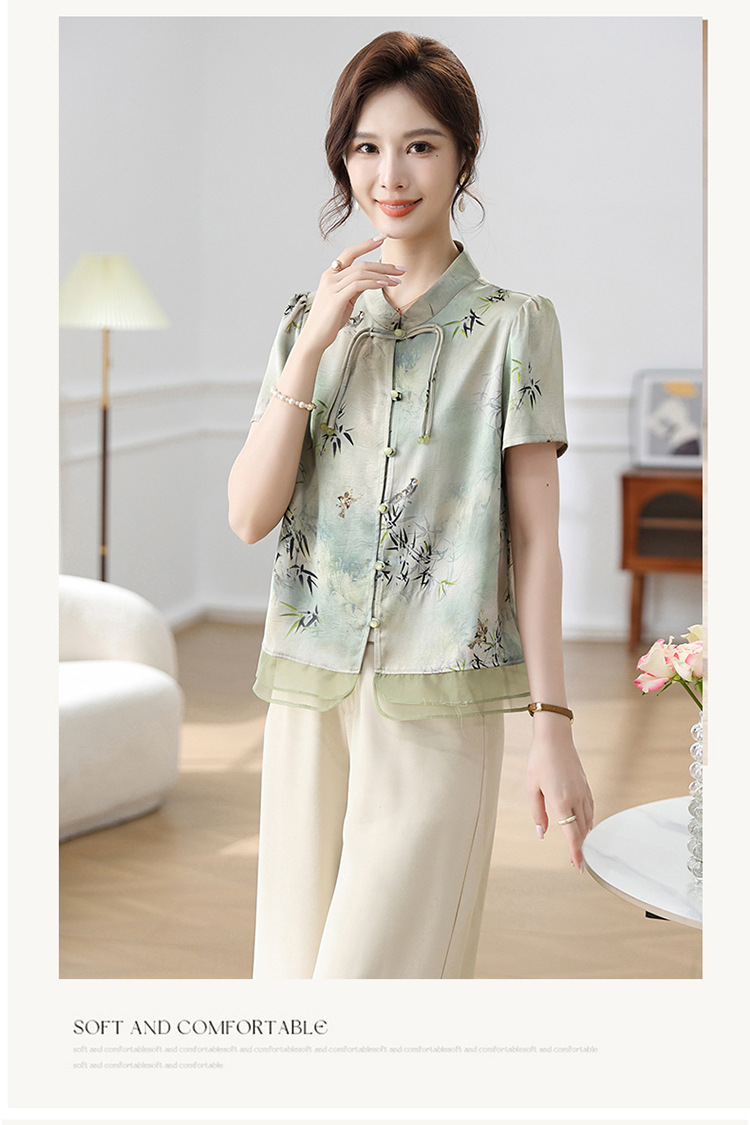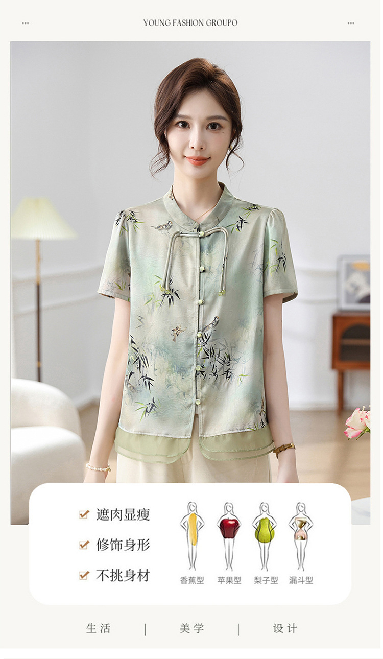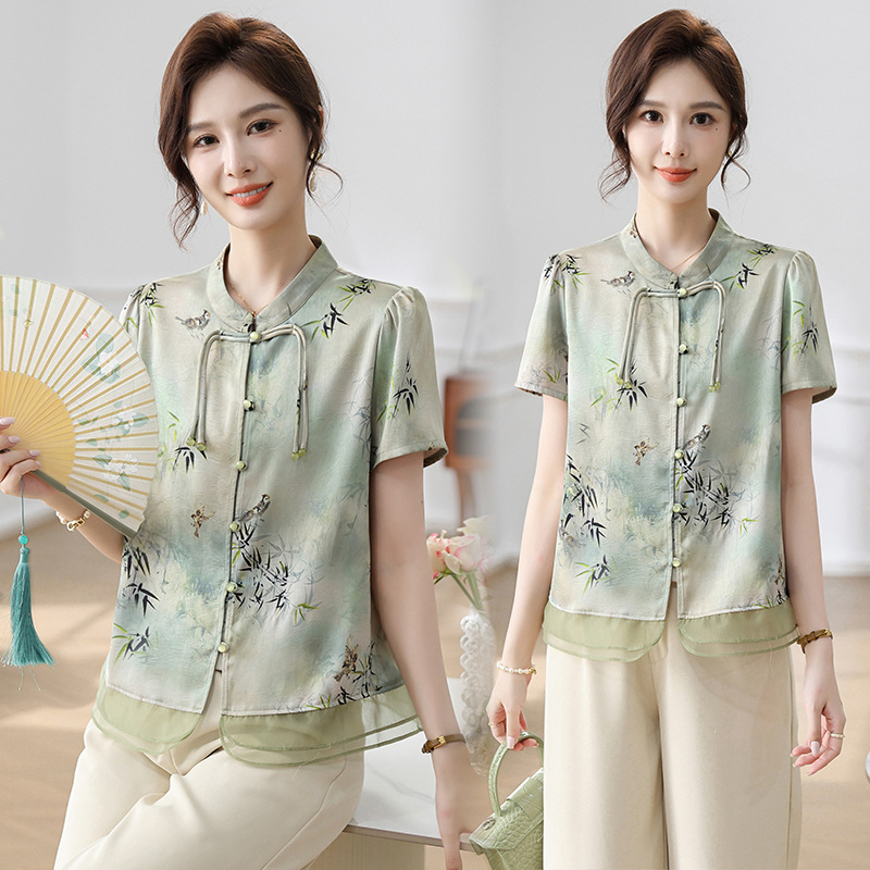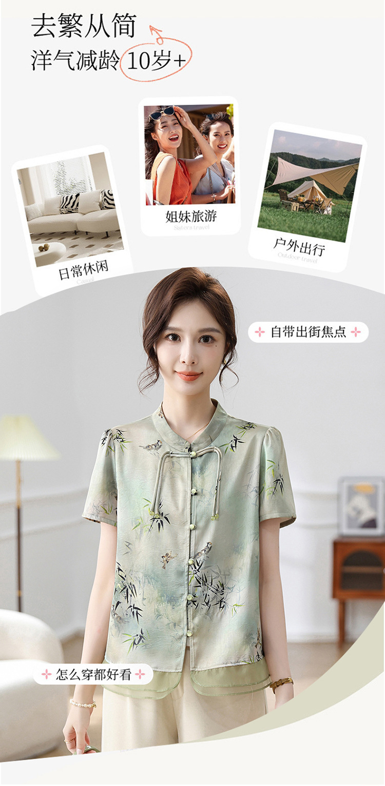 2025 новой летней одежды для мам, рубашки в западном стиле для женщин 40 и 50 лет, летняя одежда для женщин среднего и пожилого возраста, модные топы с короткими рукавами.