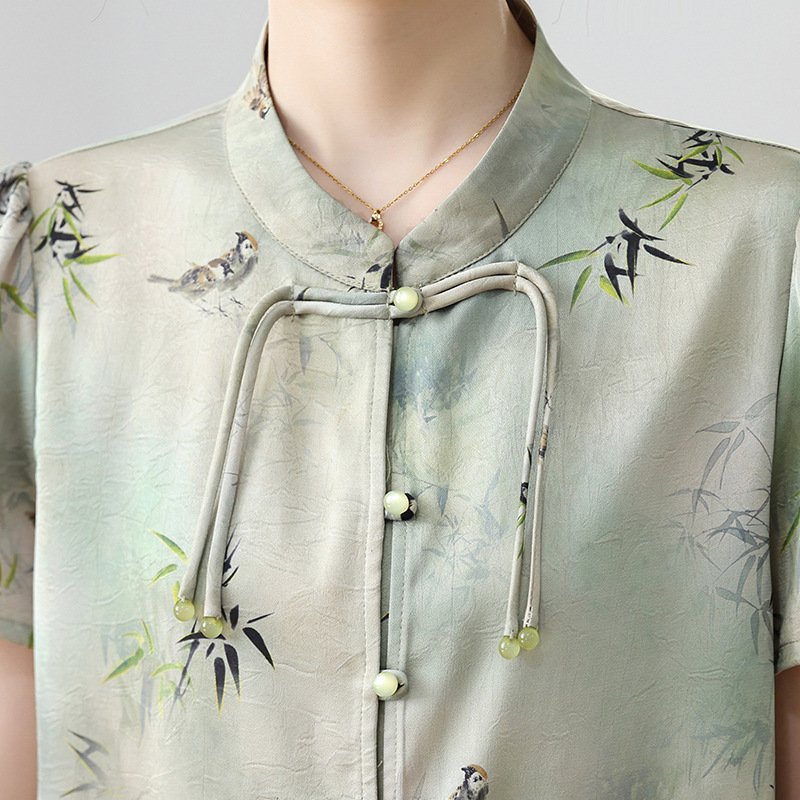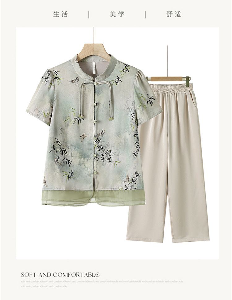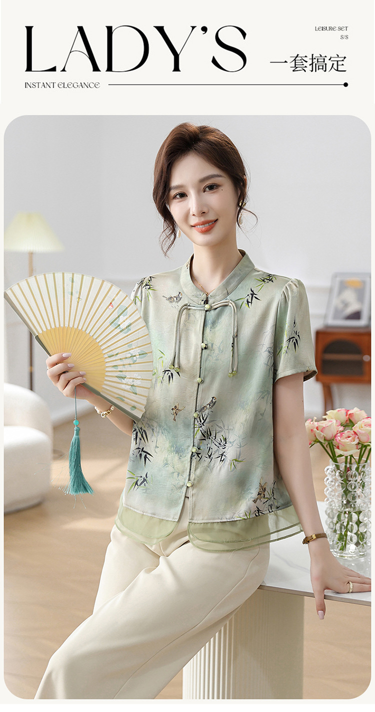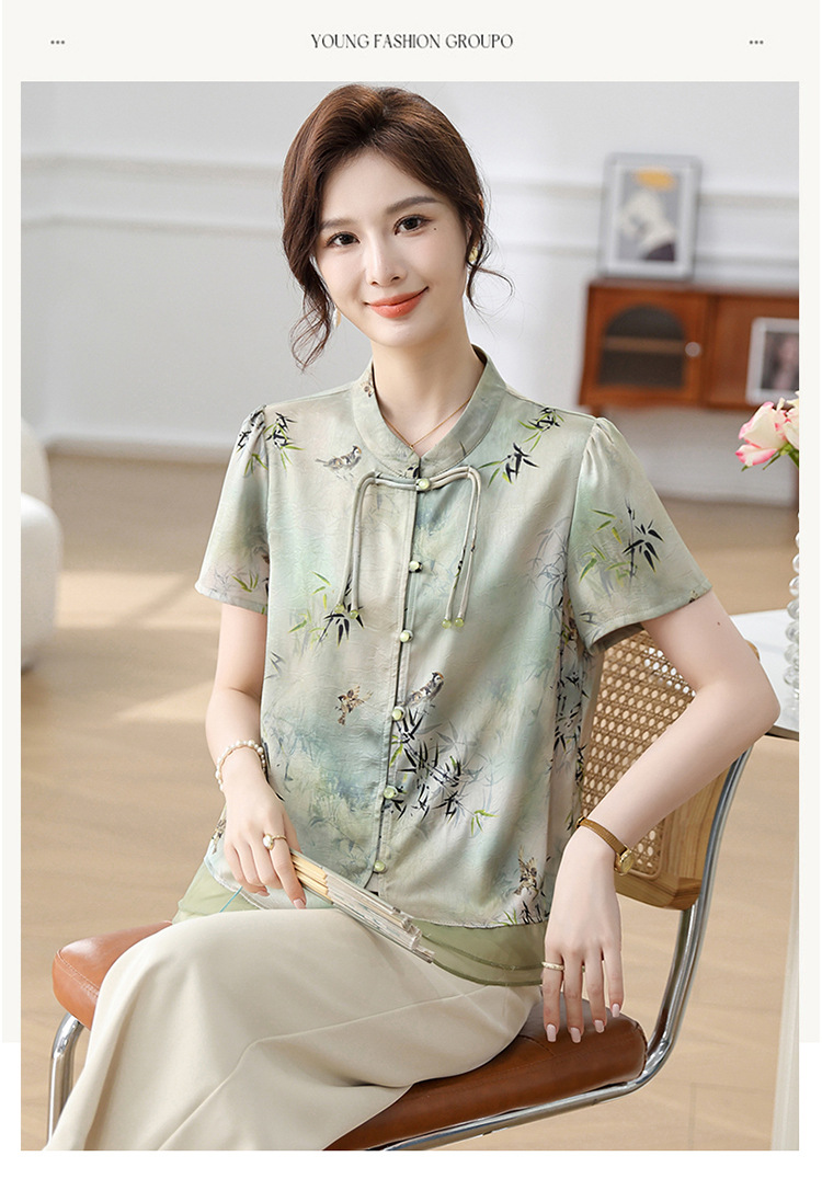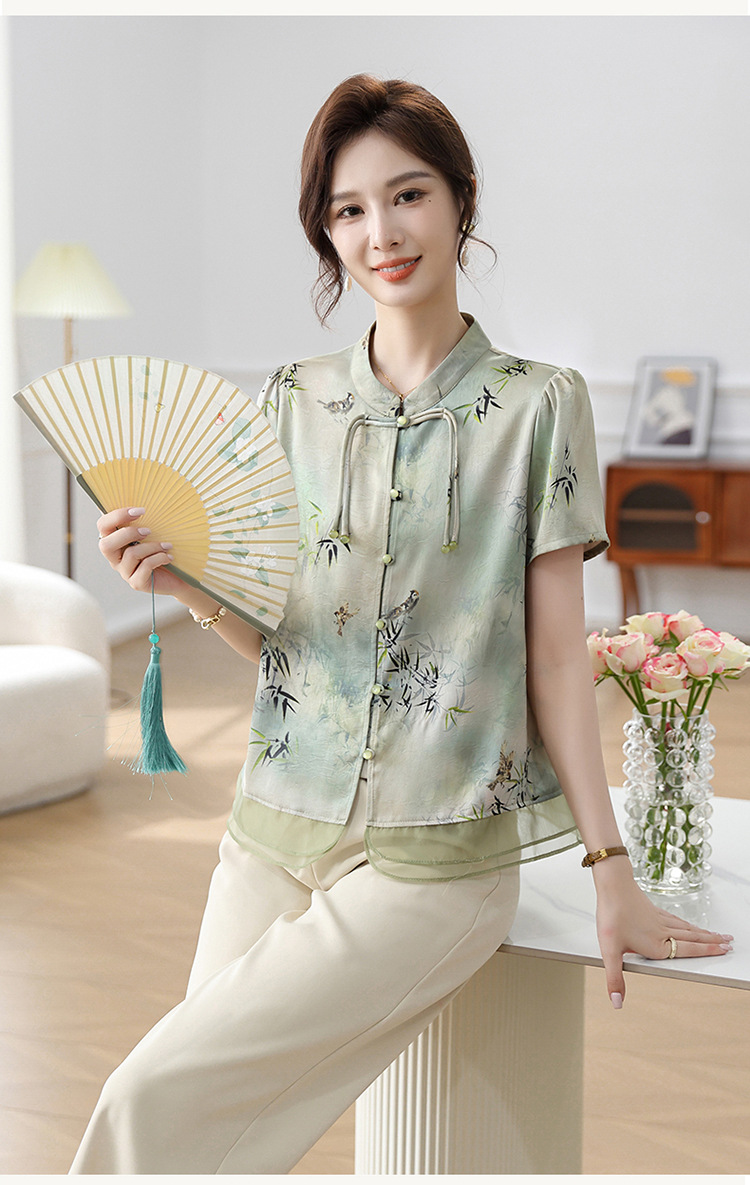 2025 новой летней одежды для мам, рубашки в западном стиле для женщин 40 и 50 лет, летняя одежда для женщин среднего и пожилого возраста, модные топы с короткими рукавами.