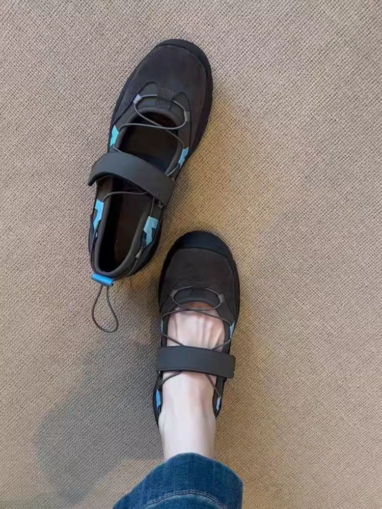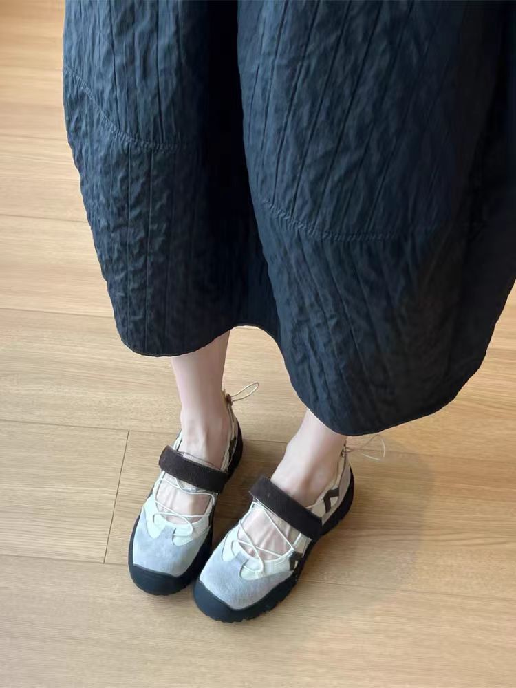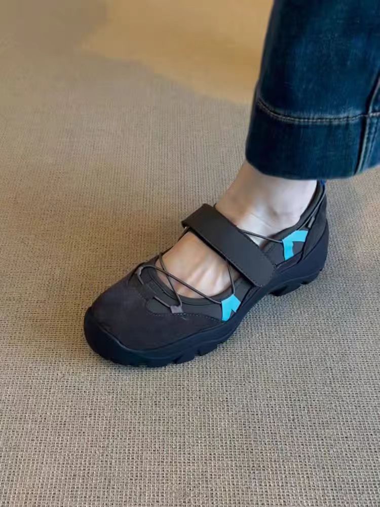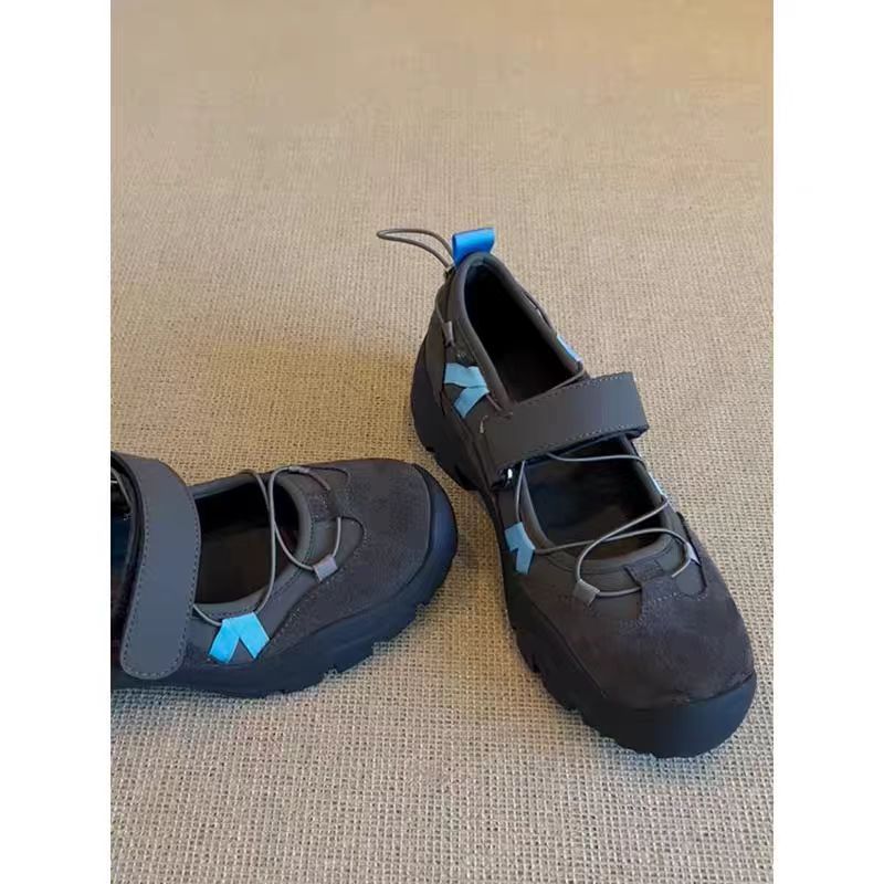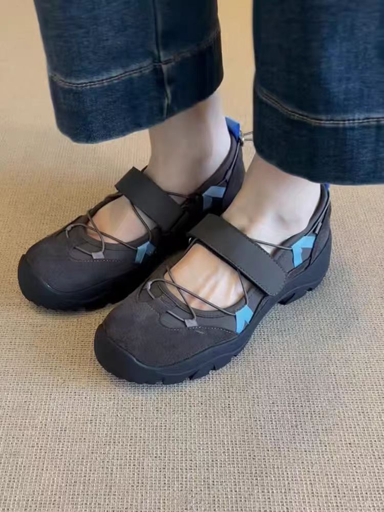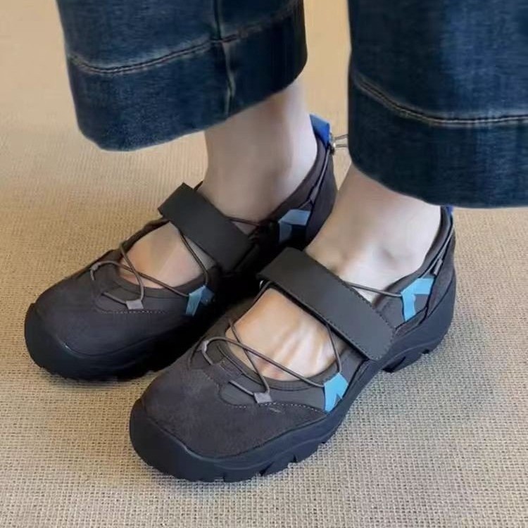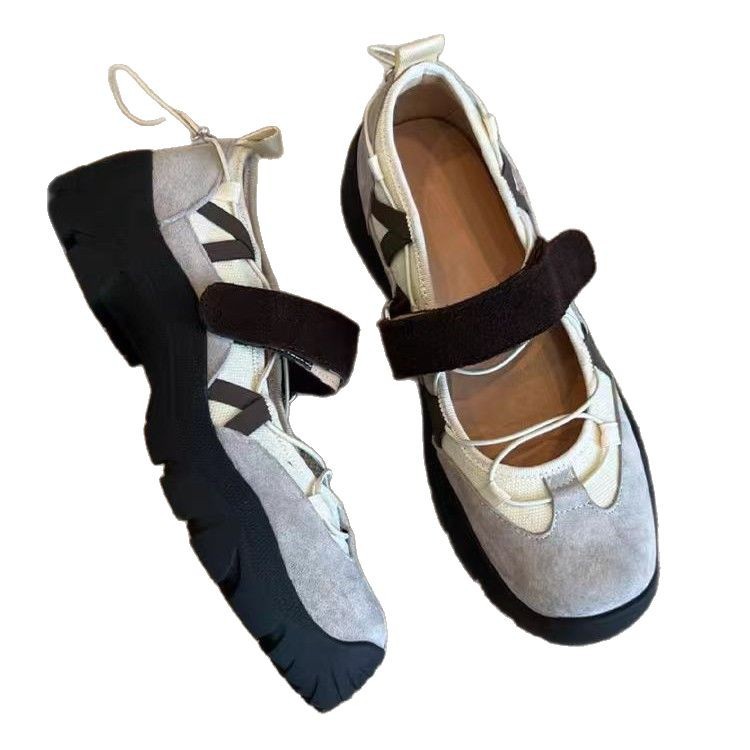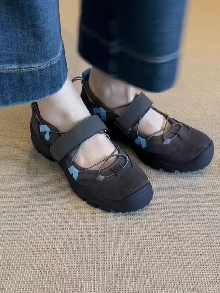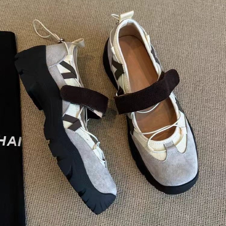 Стильные и удобные женские повседневные туфли на среднем каблуке из натуральной кожи с толстой подошвой, цветными блоками и застежкой-липучкой, 2025 год.