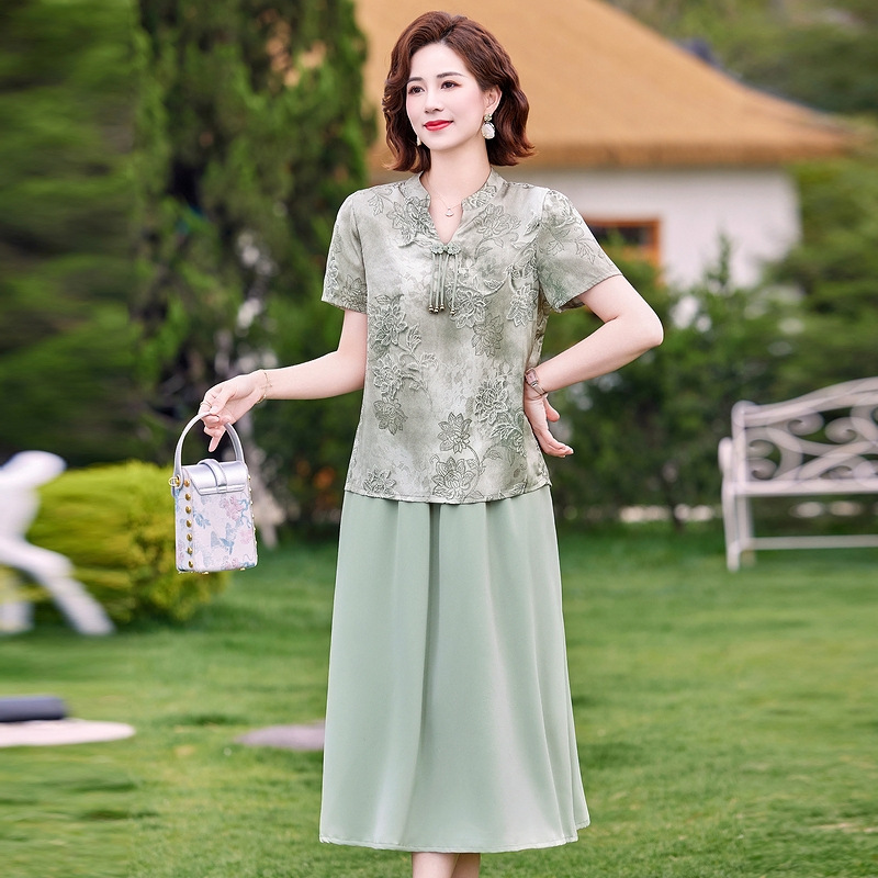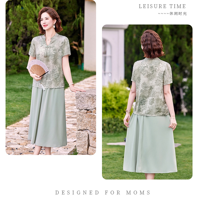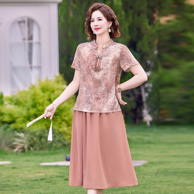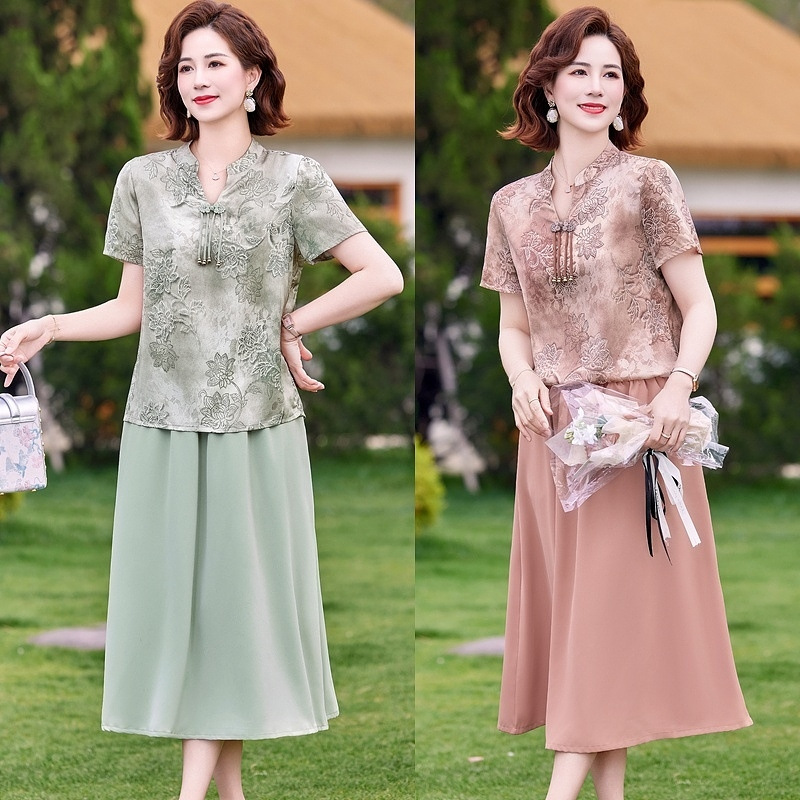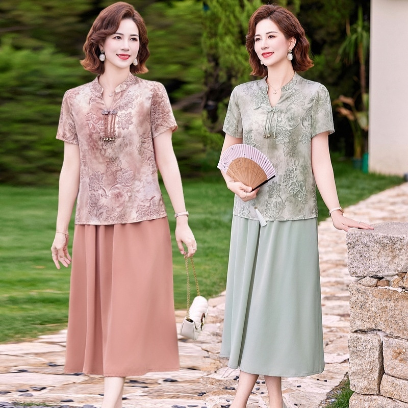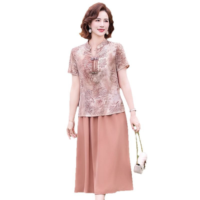Весенне-осенний повседневный костюм для мамы среднего возраста, осень 2025, новый весенне-осенний повседневный комплект из двух предметов с принтом для женщин среднего и пожилого возраста