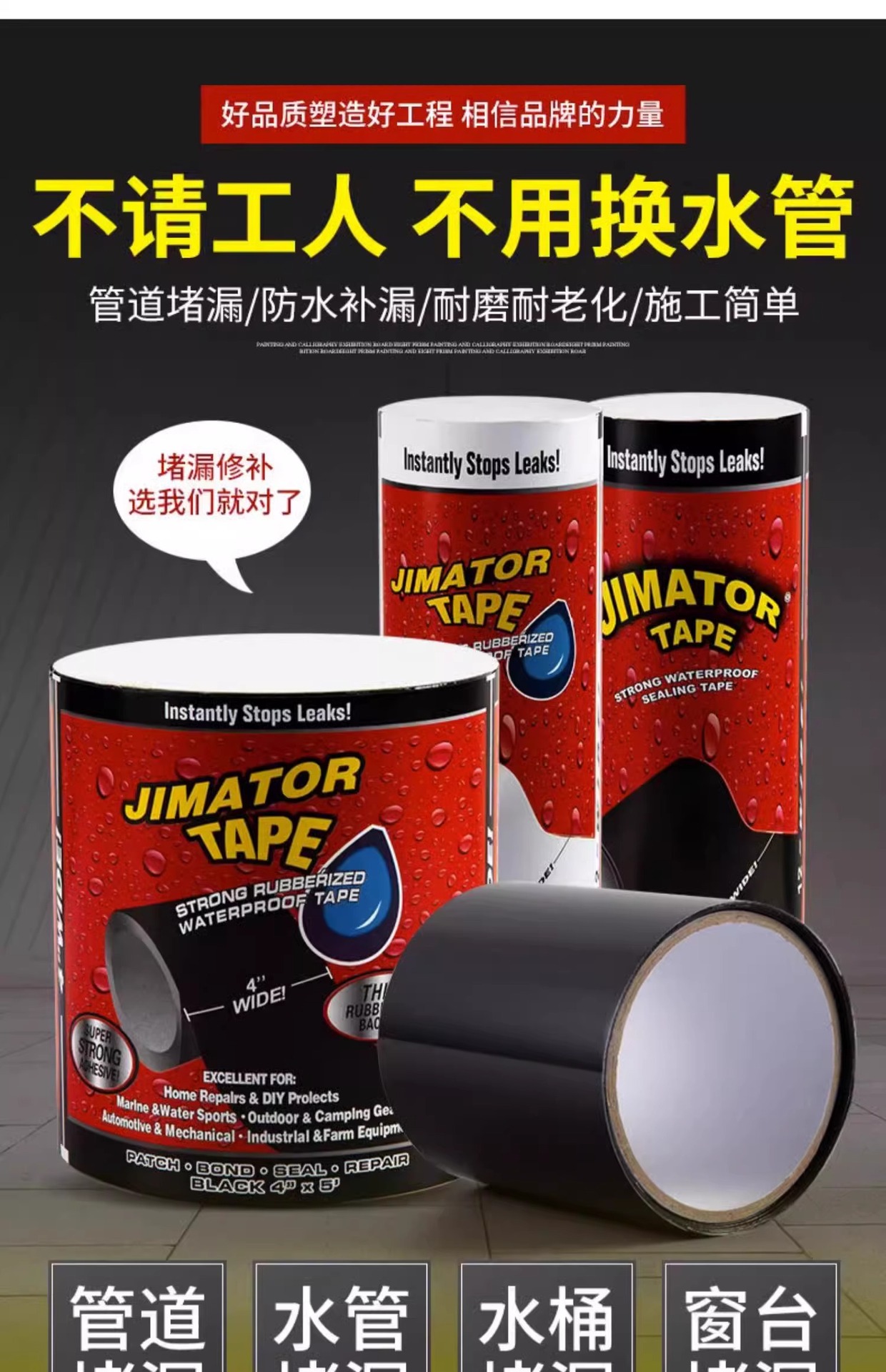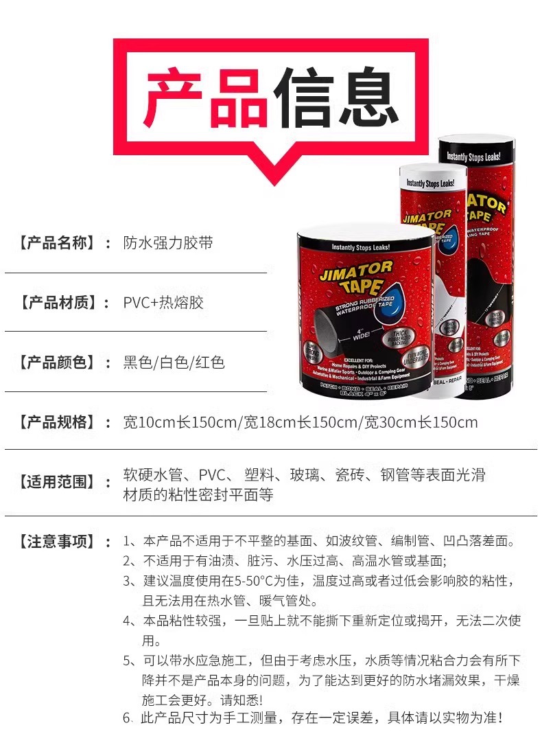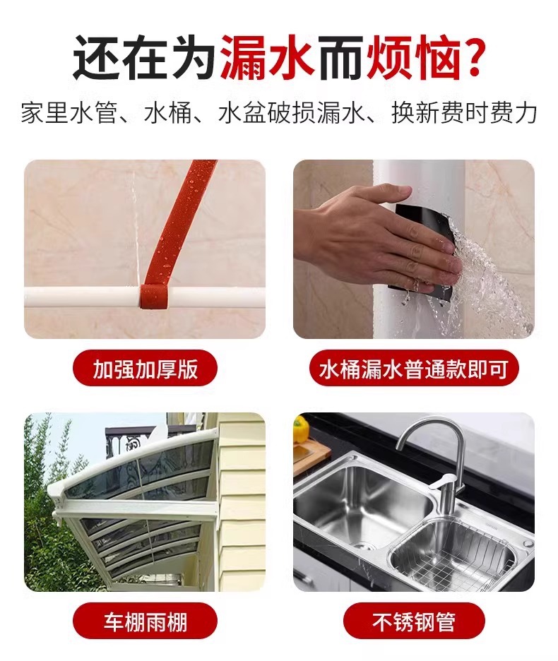 Сверхпрочная водонепроницаемая лента для ремонта трещин в ПВХ-трубах, дыр в ведрах и других поверхностей, герметизирующая лента для устранения протечек.