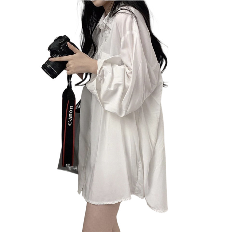 Шикарная солнцезащитная рубашка в корейском стиле с шелковистой драпировкой и длинными рукавами, свободная рубашка с длинными рукавами