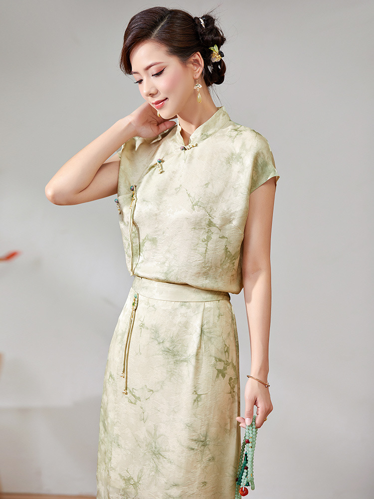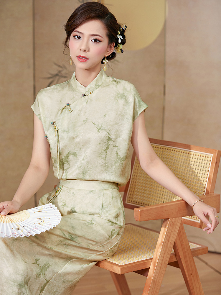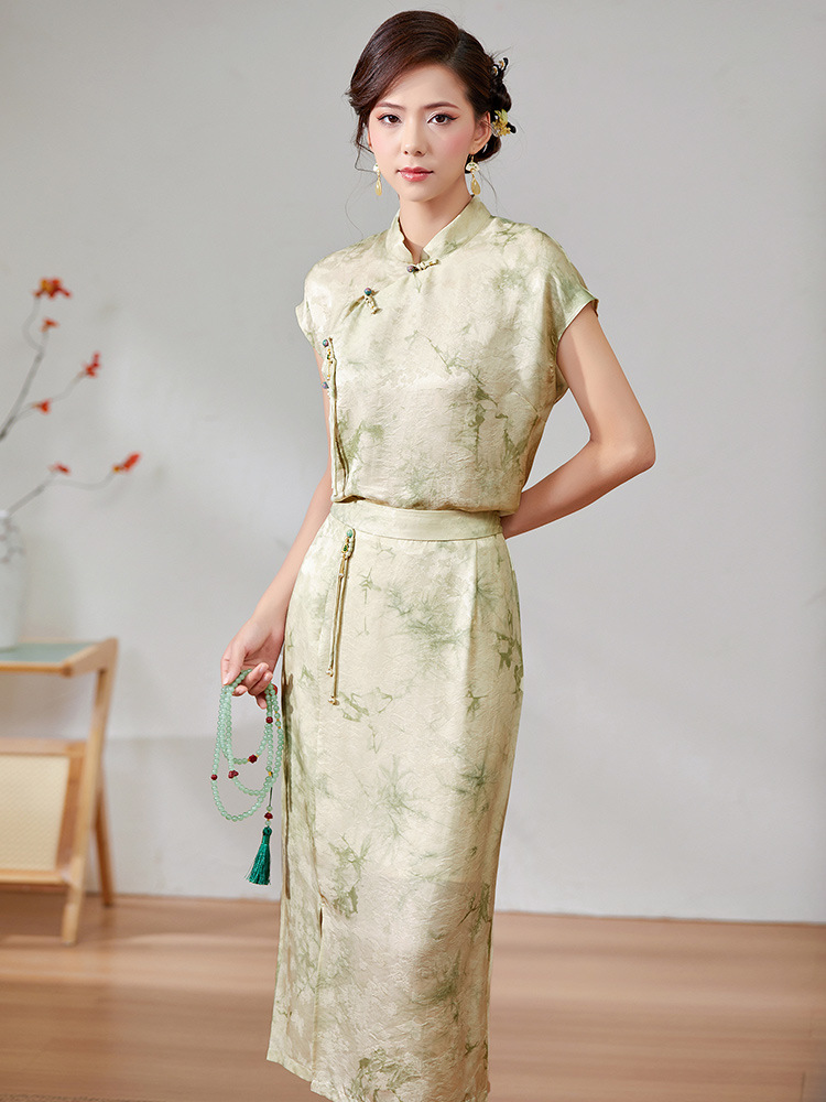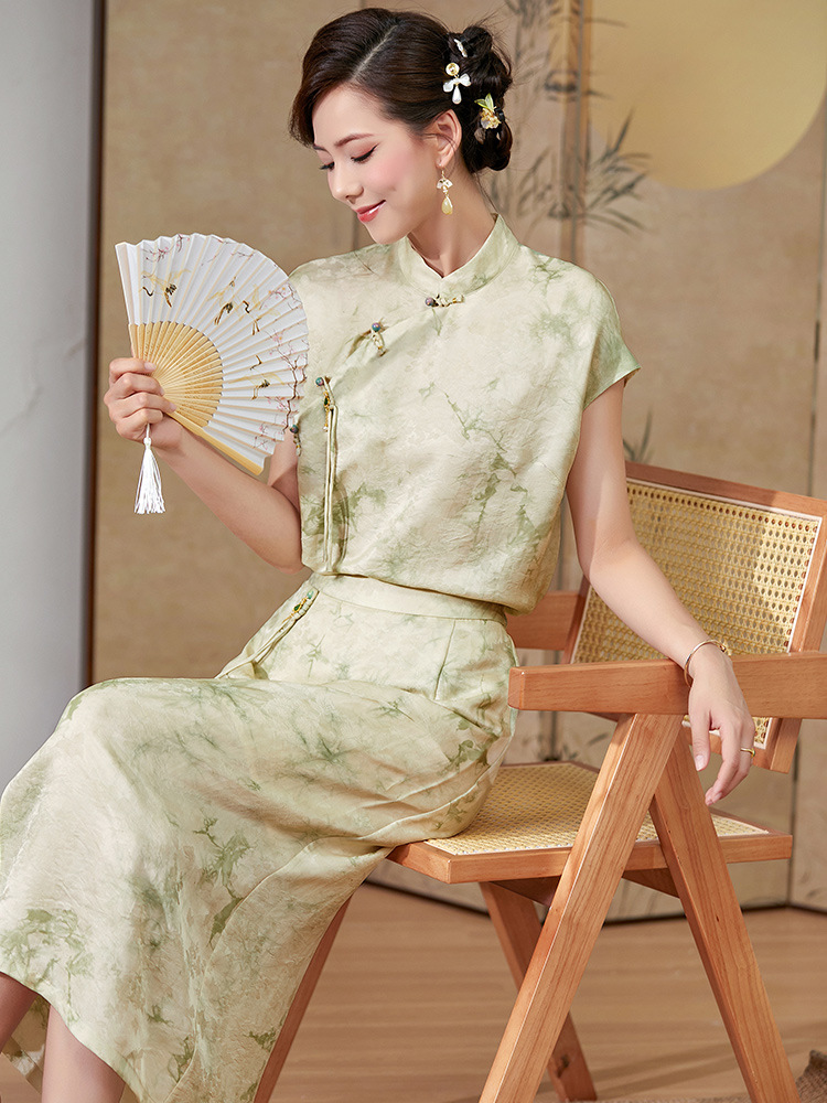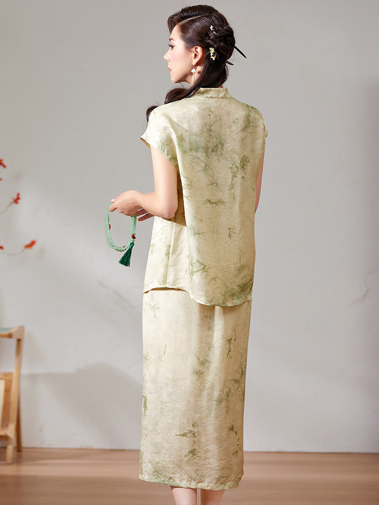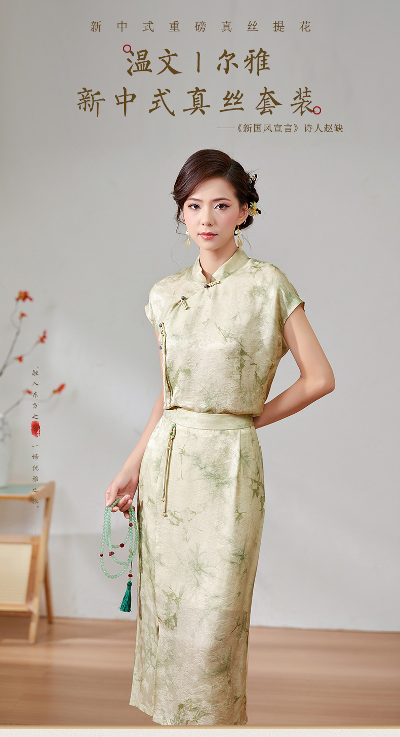 Маленький человек в шелковых модных костюмах I Новый китайский стиль достойный темперамент топ и юбка из двух частей