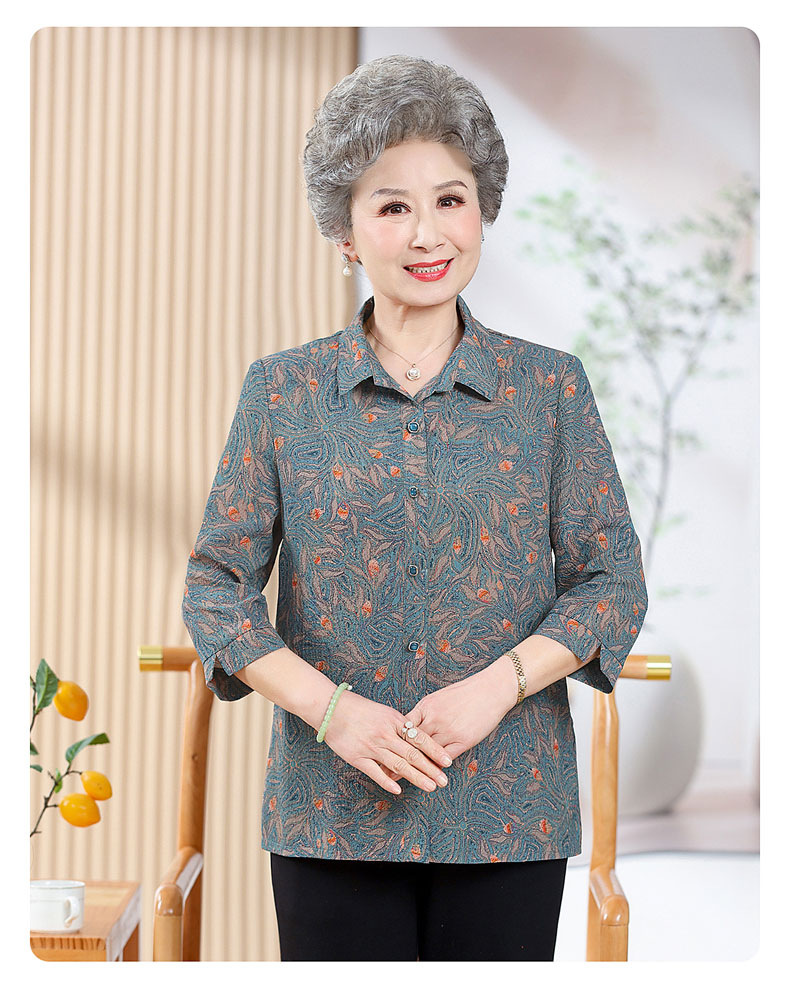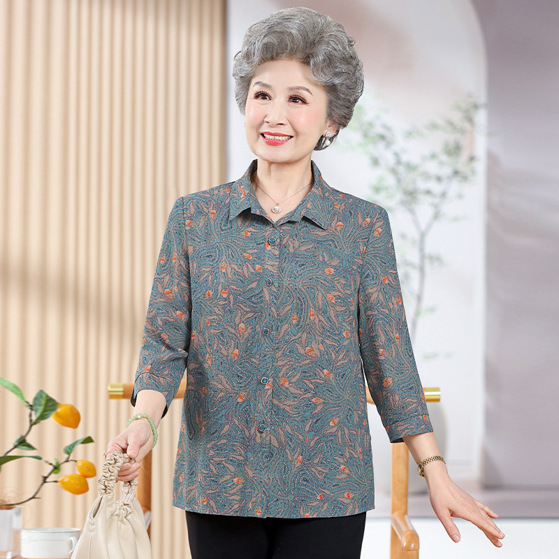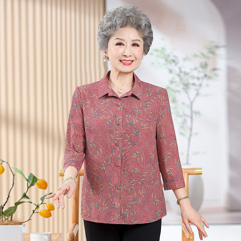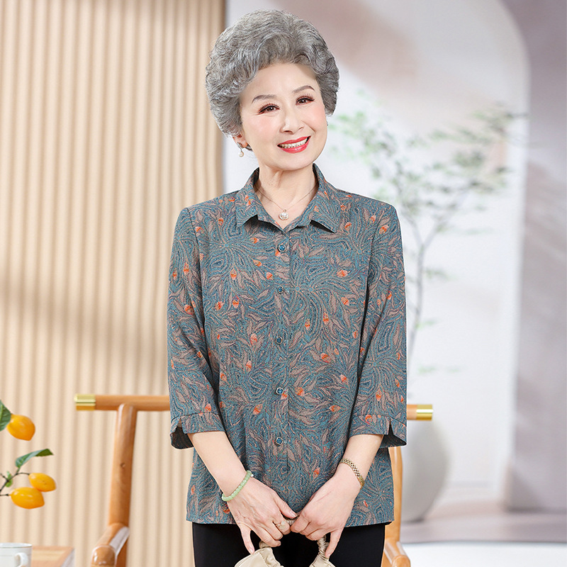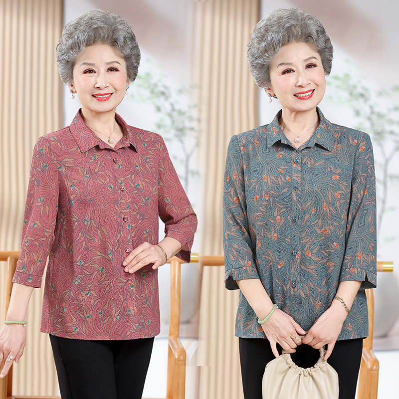 Женская одежда 2025, рубашка весна-осень, новый стиль, свободные топы для женщин среднего и пожилого возраста, модные рубашки с принтом для пожилых