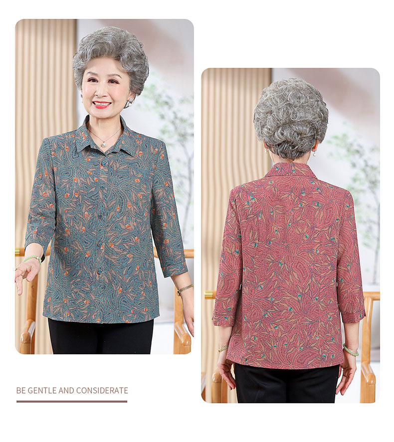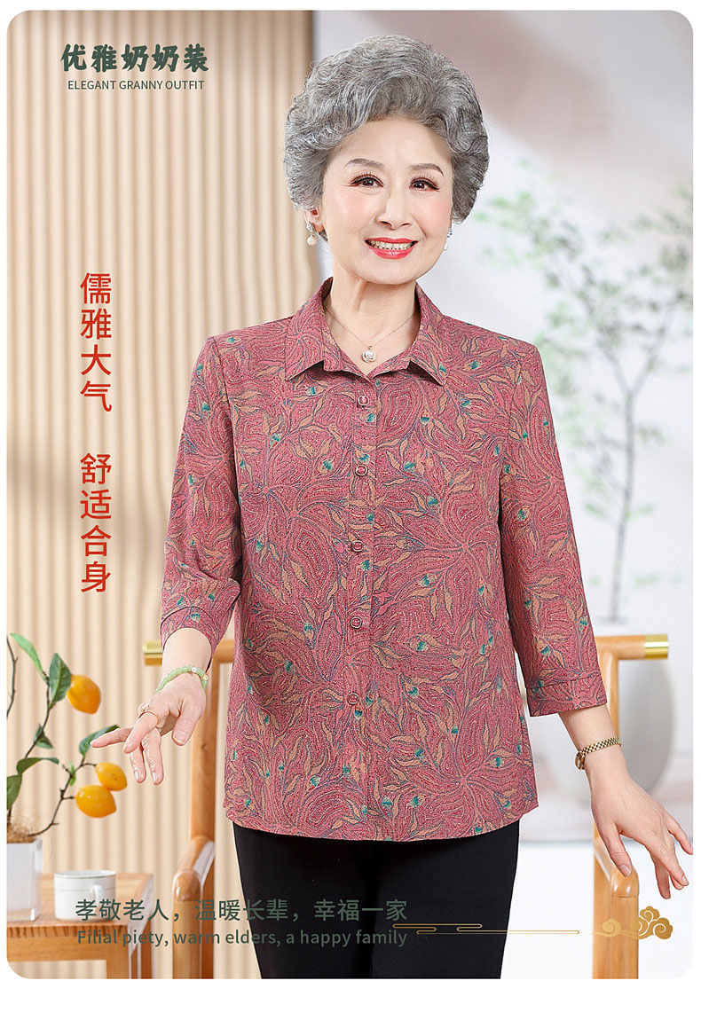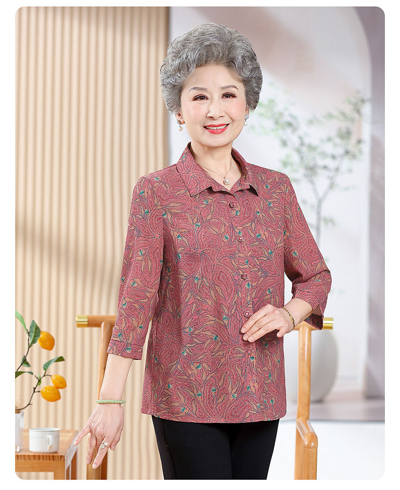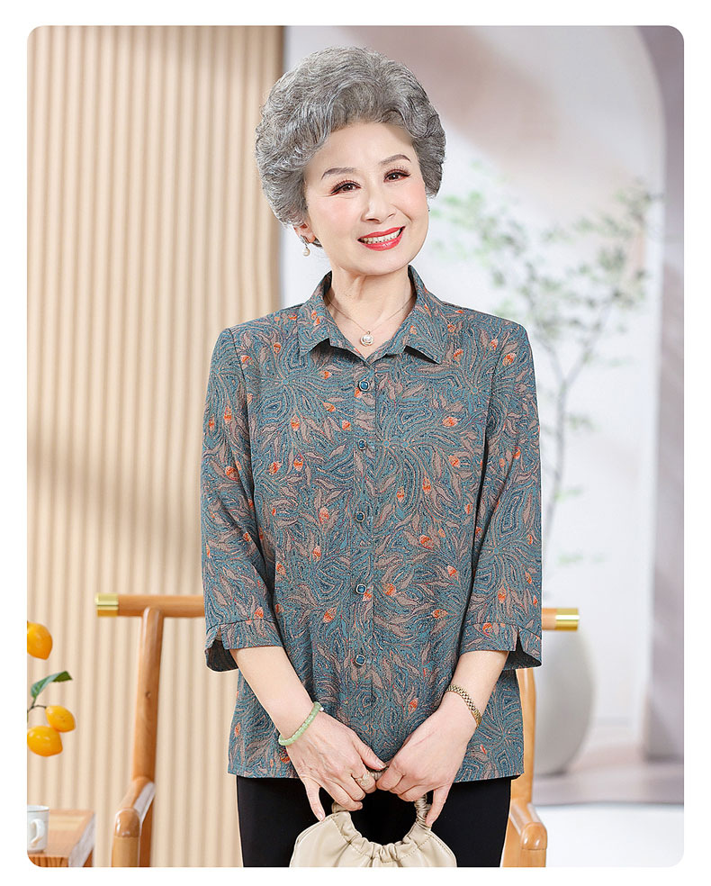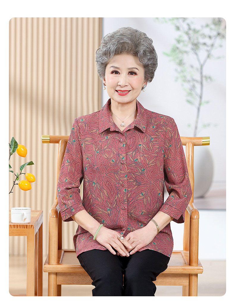 Женская одежда 2025, рубашка весна-осень, новый стиль, свободные топы для женщин среднего и пожилого возраста, модные рубашки с принтом для пожилых