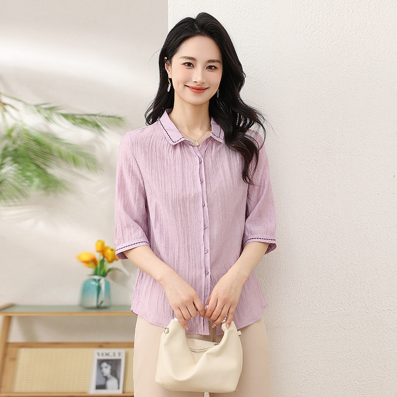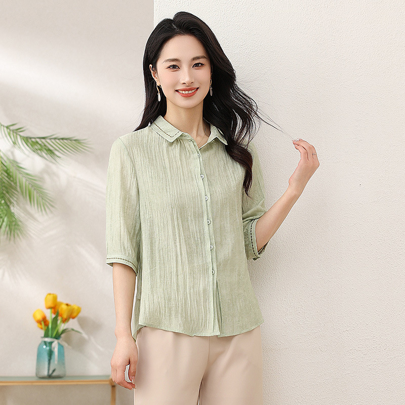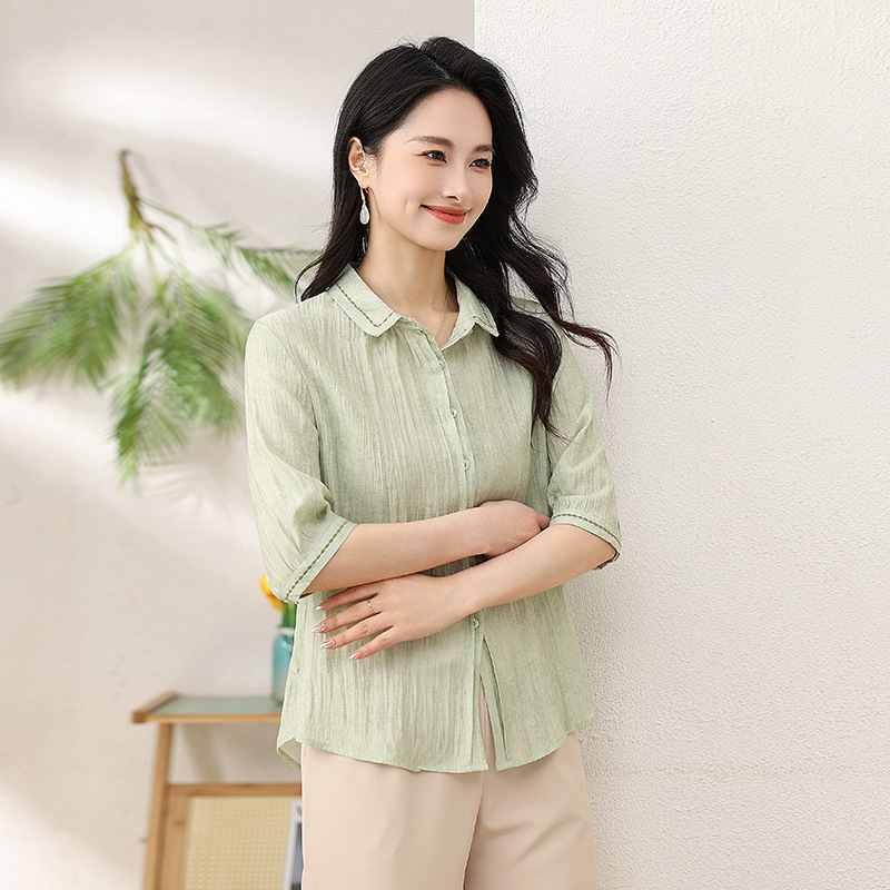 Мама платье 2025 рубашка весна и осень новый средний и пожилой женщины свободный топ для пожилых людей рубашка с принтом моды