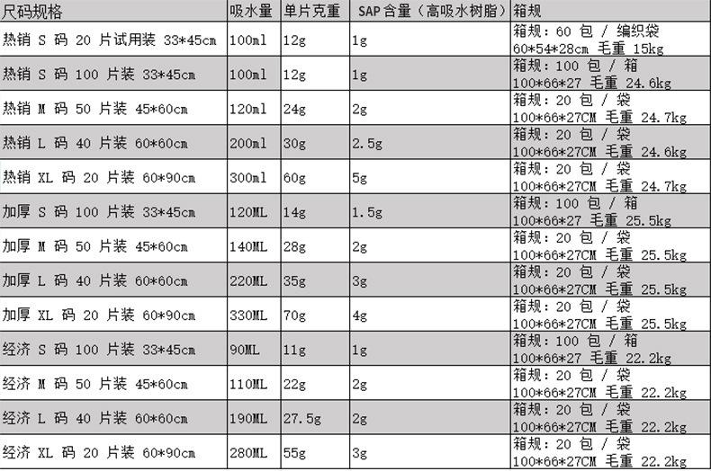 Размер S 33*45 см-100 штук [Экономическая модель и экономичная рекомендация]; Размер М 45*60 см-50 штук [Экономическая модель и экономичная рекомендация]; Размер L 60*60 см-40 штук [Экономическая модель и экономичная рекомендация]; Размер XL 60*90 см-20 штук [Экономическая модель и экономичная рекомендация]; Размер S 33*45 см, пробный набор из 20 штук [популярная модель, настоятельно рекомендуется менеджером магазина]; Размер S 33*45 см-100 штук [популярная модель, настоятельно рекомендуется менеджером магазина]; Размер М 45*60 см-50 штук [популярная модель, настоятельно рекомендуется менеджером магазина]; Размер L 60*60 см-40 штук [популярная модель, настоятельно рекомендуется менеджером магазина]; Размер XL 60*90 см — 20 штук [популярная модель, настоятельно рекомендуется менеджером магазина]; Размер S 33*45 см-100 штук [утолщенная версия и очень толстая для предотвращения боковой утечки]; Размер М 45*60 см-50 штук [утолщенная версия и очень толстая для предотвращения боковой утечки]; Размер L 60*60 см-40 штук [утолщенная версия и очень толстая для предотвращения боковой утечки]; Размер XL 60*90 см-20 штук [утолщенная версия и очень толстая для предотвращения боковой утечки]