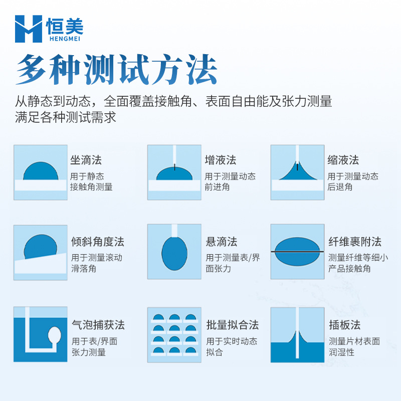 Ручной измеритель угла контакта — ручное падение и тестирование; Полуавтоматический прибор для измерения угла контакта Автоматический капельный ручной тест; Полностью автоматический прибор для измерения угла контакта может измерять угол наклона и угол скатывания.; Полностью автоматический измеритель угла контакта с платформой и функцией автоматической док-станции для точного позиционирования точки капли.; Портативный полностью автоматический прибор для измерения угла контакта
