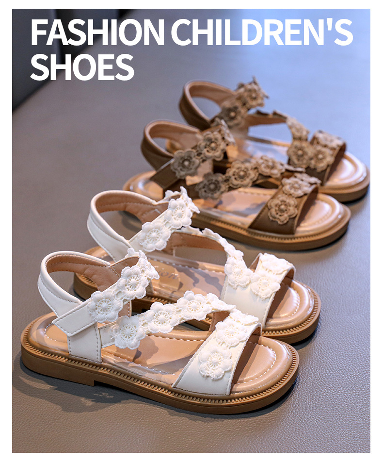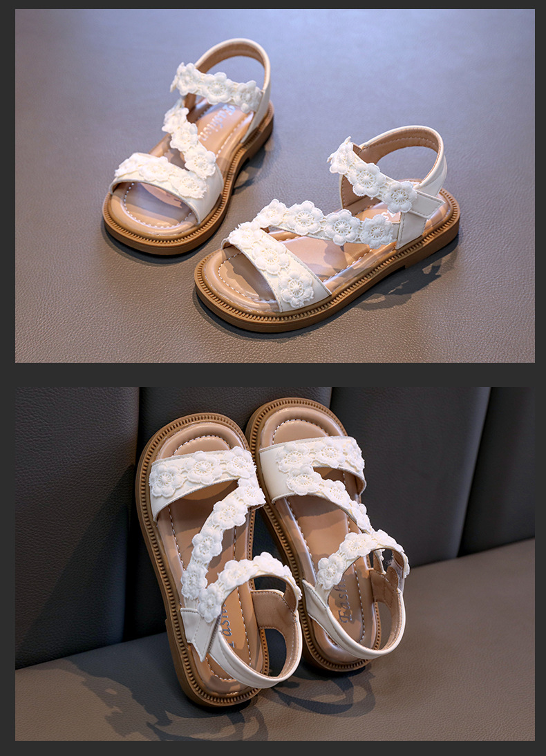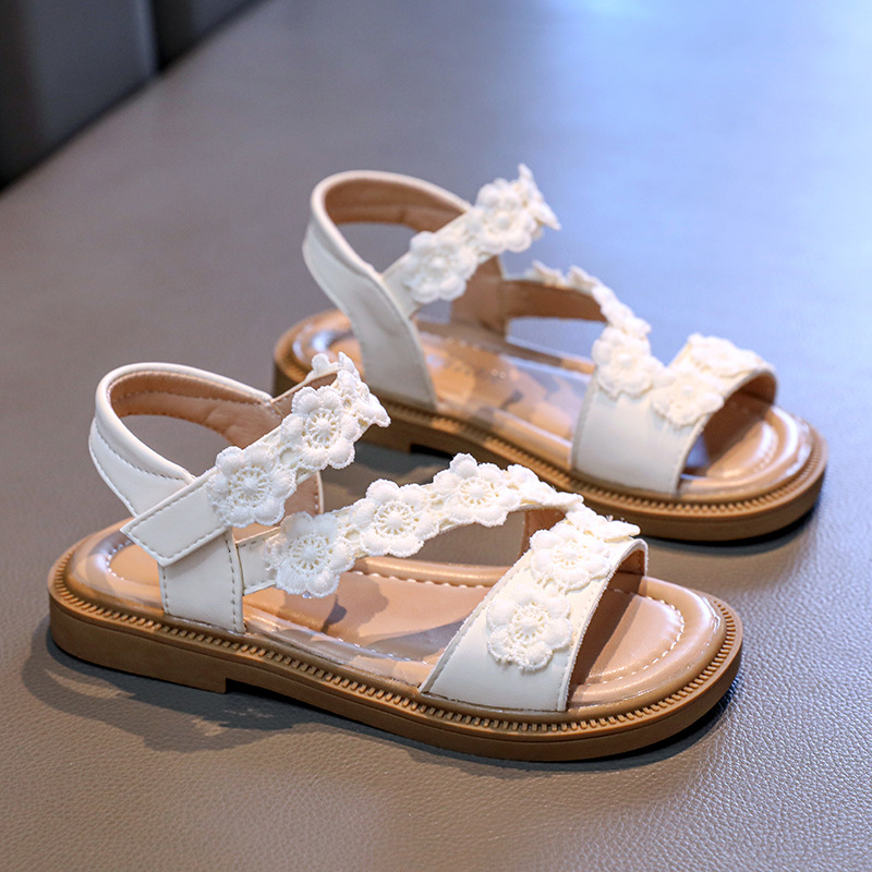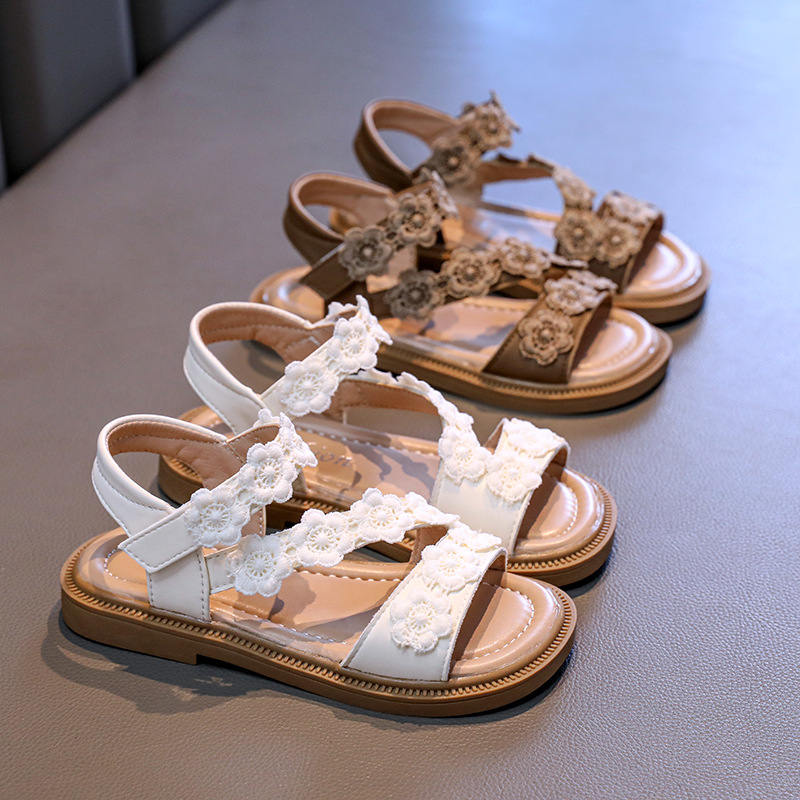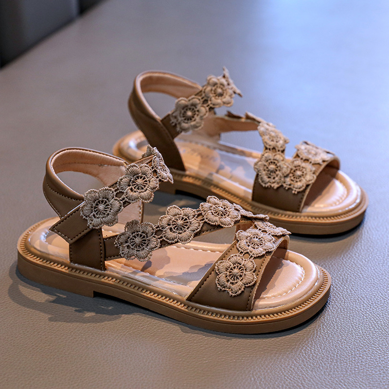 Детские босоножки лето 2025, новый корейский стиль, маленькие цветочные, легко сочетаются, открытый носок, туфельки принцессы, пляжная обувь для маленьких девочек