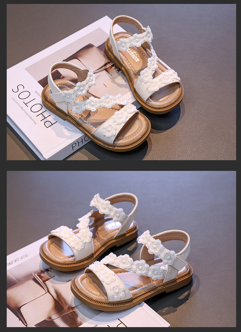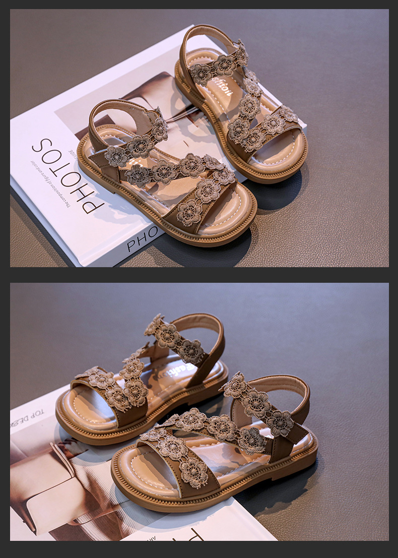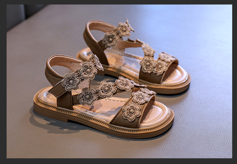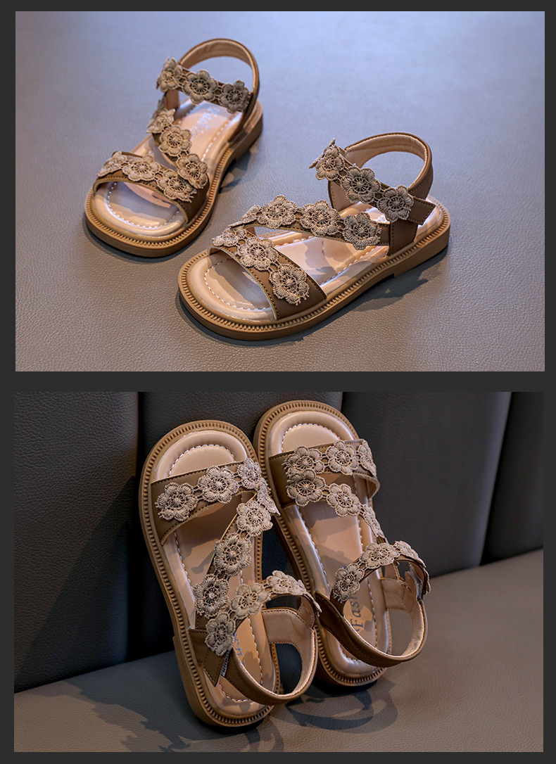Детские босоножки лето 2025, новый корейский стиль, маленькие цветочные, легко сочетаются, открытый носок, туфельки принцессы, пляжная обувь для маленьких девочек