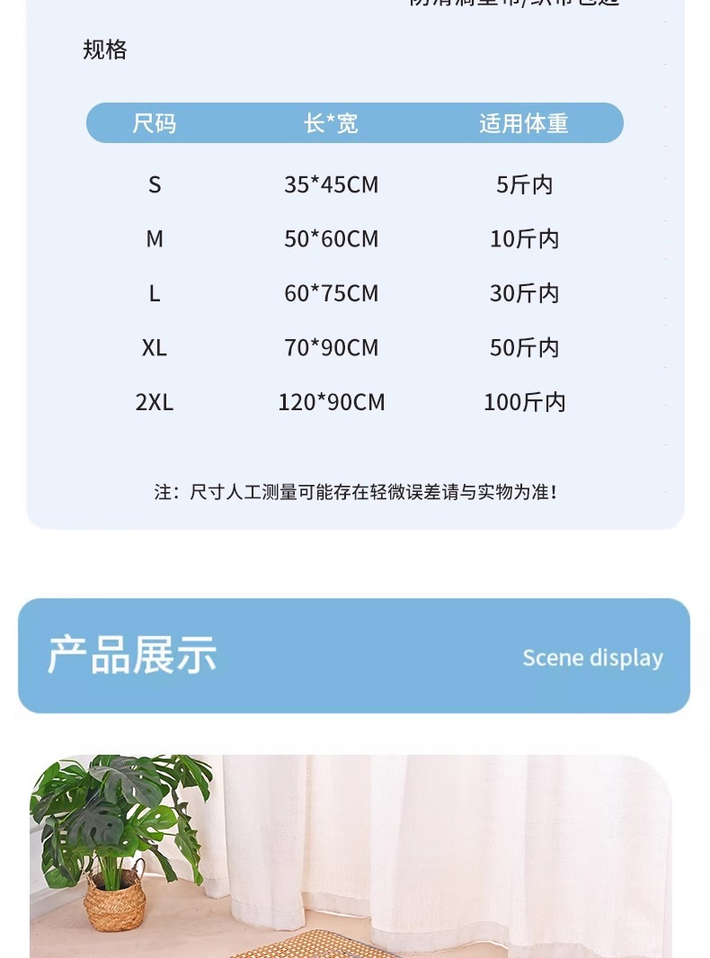 S-маленький-45*35 см-в пределах 5kg; М-средний размер-60*50см-в пределах 10kg; L-Большой-75*60СМ-в пределах 15kg; XL-Супер Большой-90*70СМ-в пределах 25kg; XXL-очень большой-120*90 см-в пределах 50kg