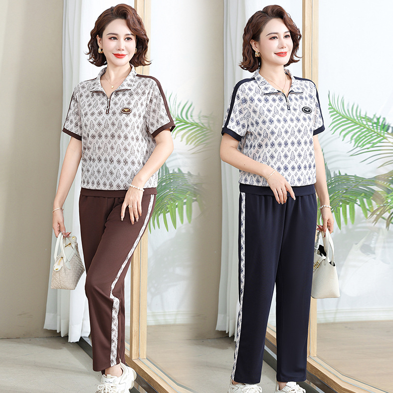Весенний спортивный костюм для мам среднего возраста, модный новый весенне-осенний свитер для женщин среднего и пожилого возраста 2025 года, повседневный комплект из двух предметов
