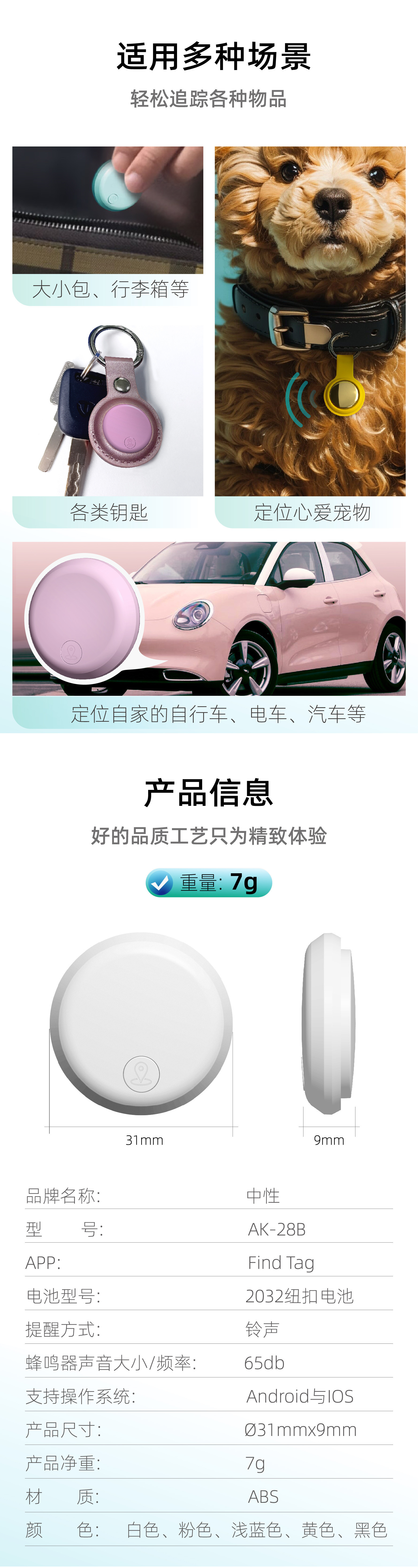 - 物品追踪:挂在钥匙、背包、行李箱,或是贴在自行车、电车、汽车上,轻松追踪,再也不怕丢。