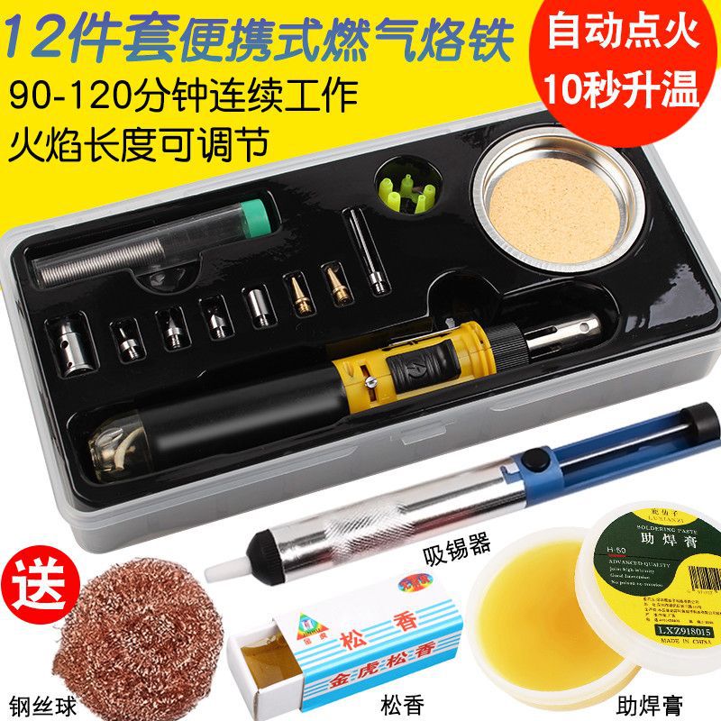 Портативный газовый паяльник 12-в-1, 1300 градусов, автоматическое зажигание, надувной газовый паяльник, электрический паяльник с регулируемой температурой