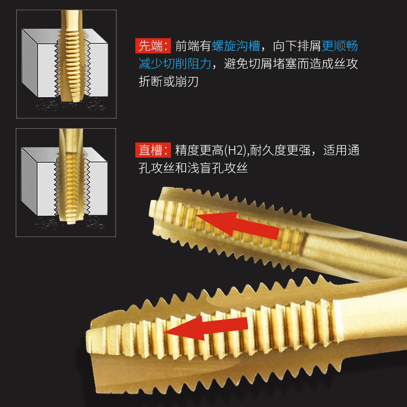 Продвинутый ручной метчик с титановым покрытием, спиральный винтовой наконечник с кобальтом, метчик с прямой канавкой, кобальтовый машинный метчик