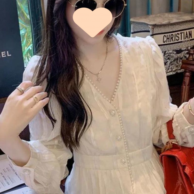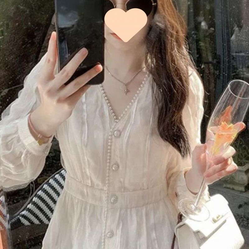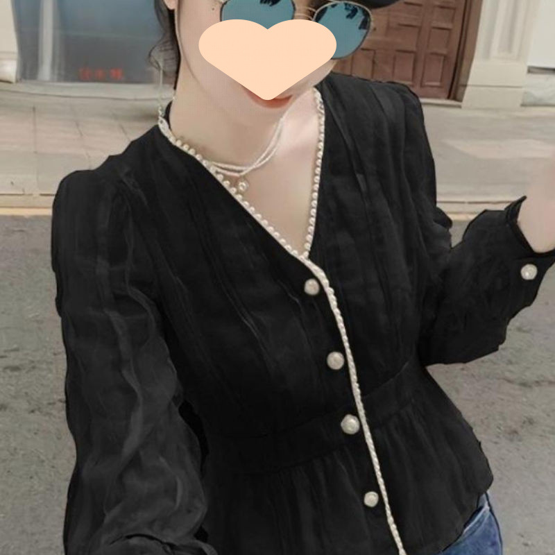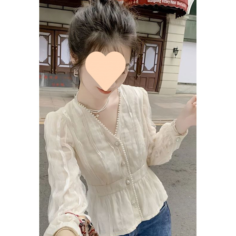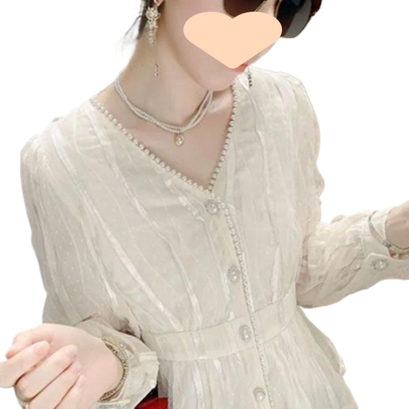 2025 Весна/Лето Новая рубашка с нишевым воротником Модная шикарная шифоновая блузка с жемчужной талией Утягивающий внутренний топ для женщин.