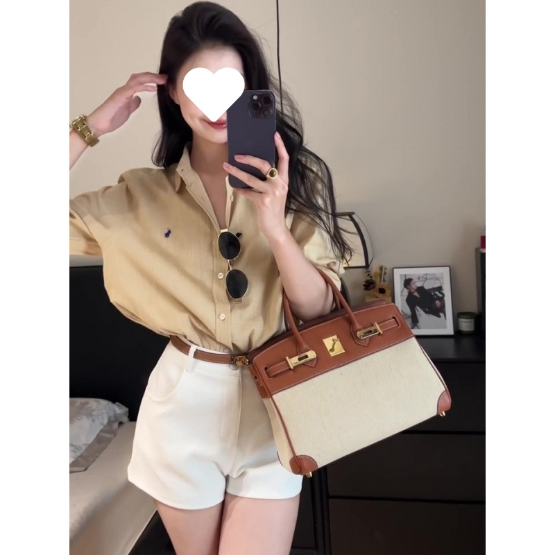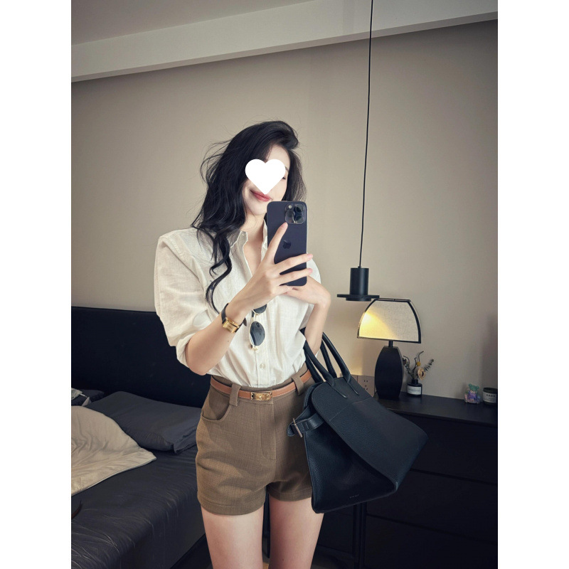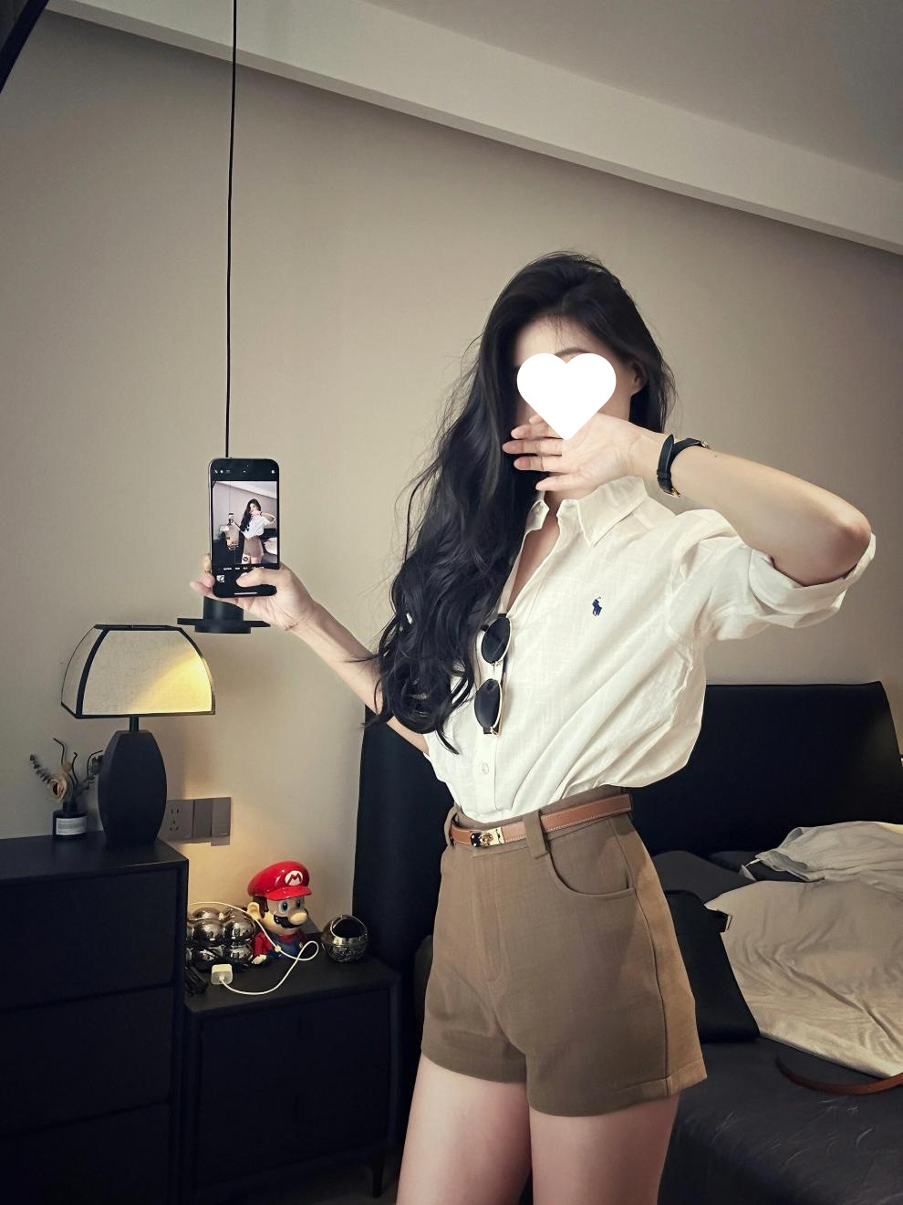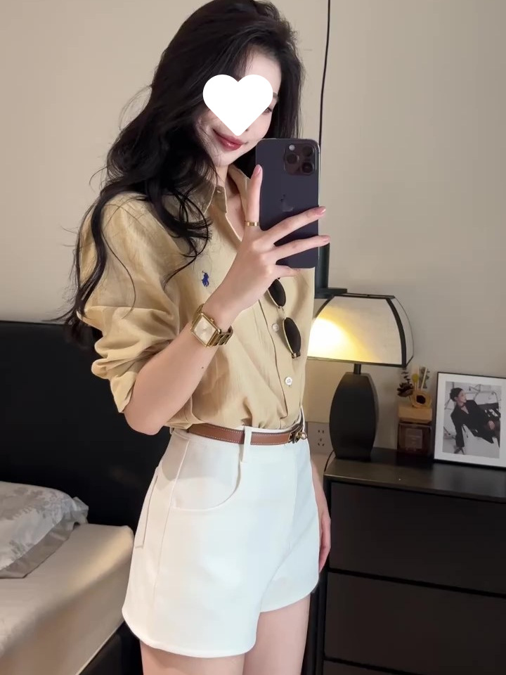 Американский комплект в стиле "старые деньги": свободная льняная рубашка с вышивкой пони + элегантные универсальные шорты с высокой талией, подчеркивающие фигуру