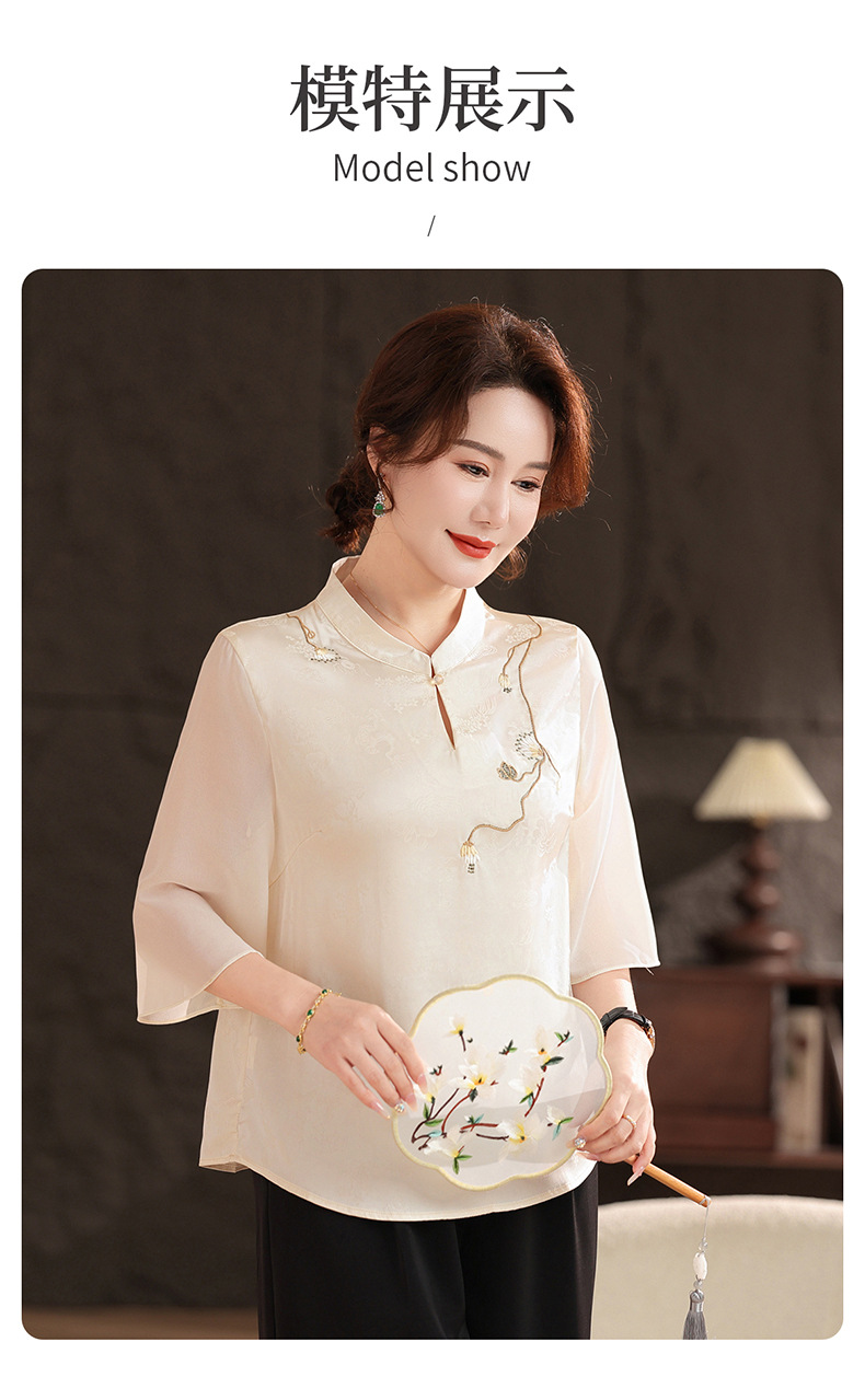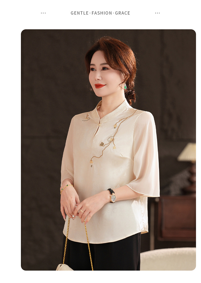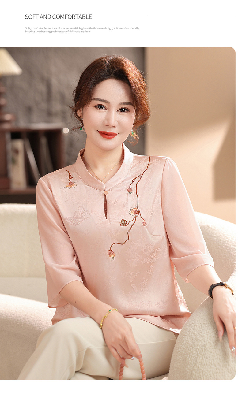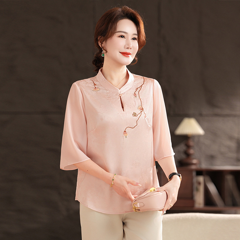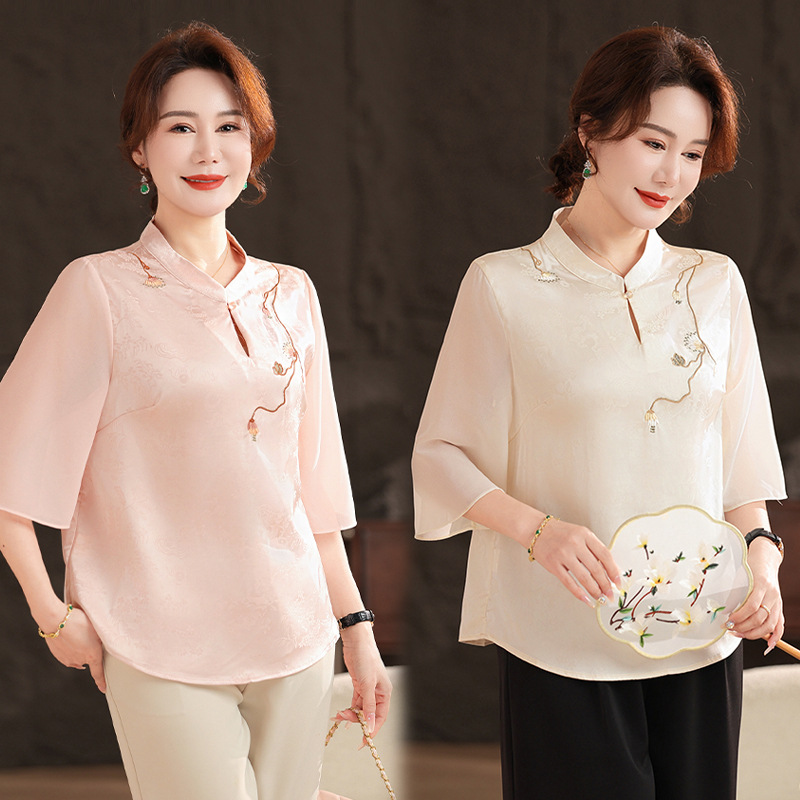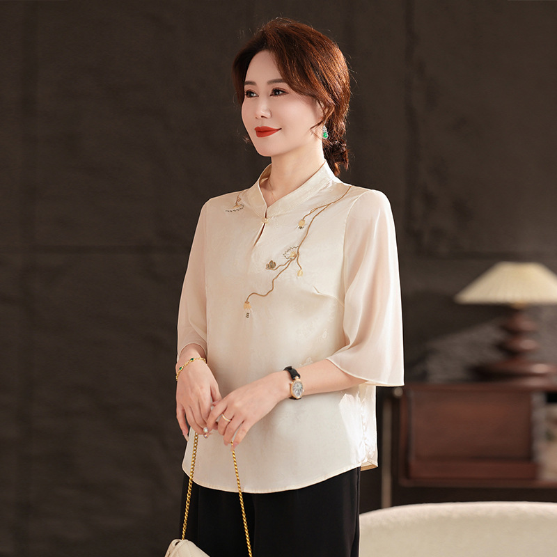 Женская одежда 2025, рубашка весна-осень, новый стиль, свободные топы для женщин среднего и пожилого возраста, вышитые рубашки для пожилых, мода