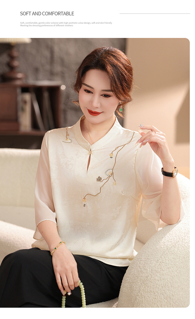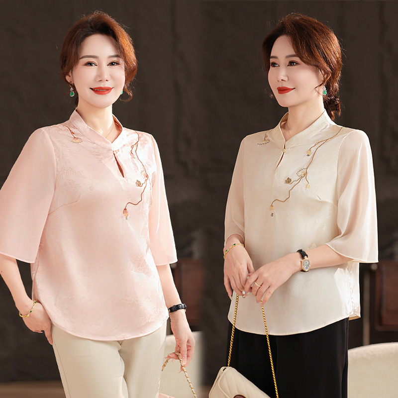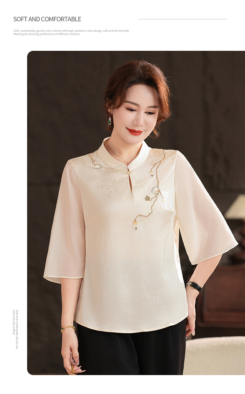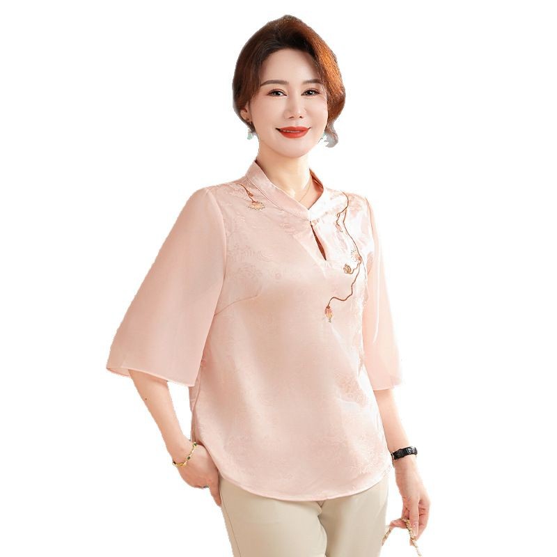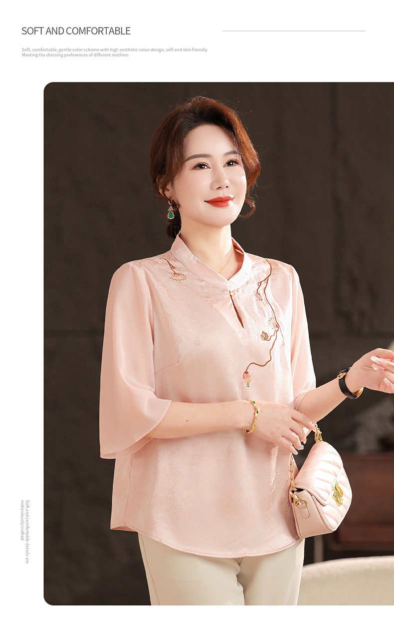 Женская одежда 2025, рубашка весна-осень, новый стиль, свободные топы для женщин среднего и пожилого возраста, вышитые рубашки для пожилых, мода