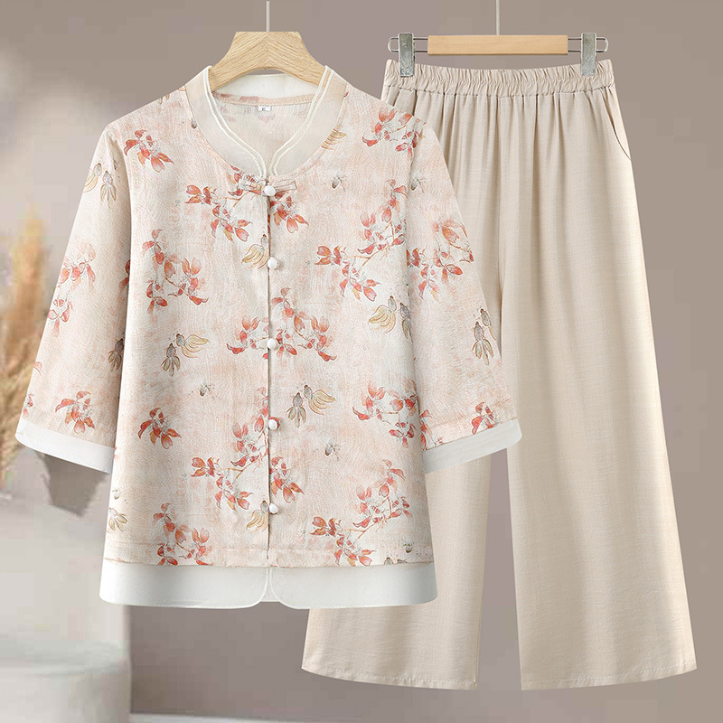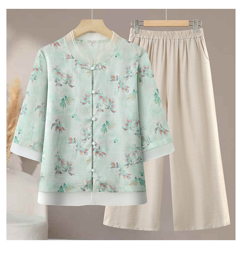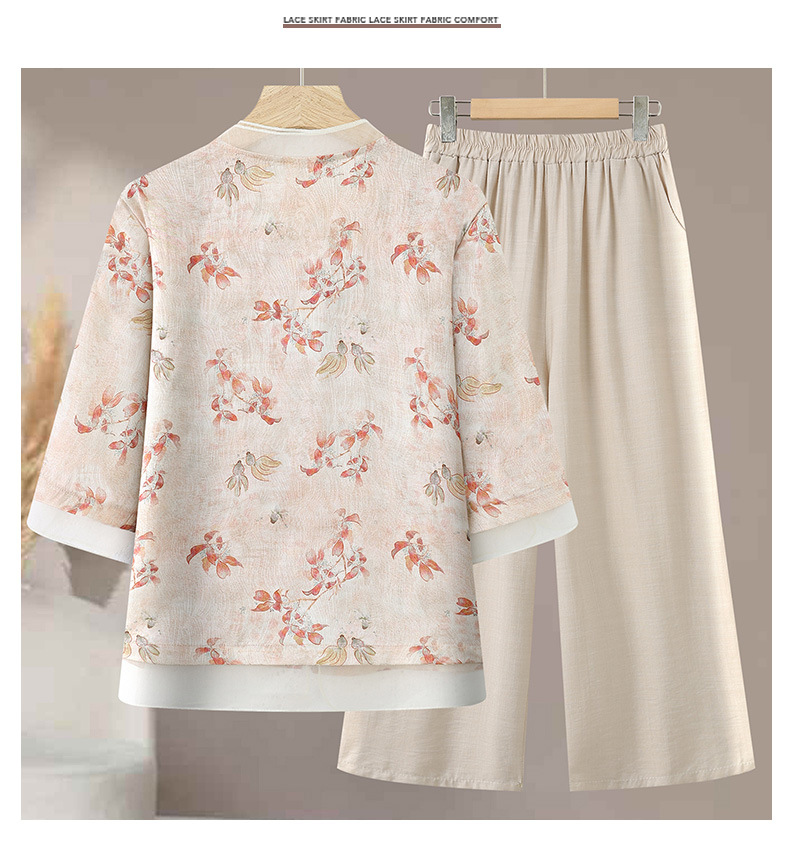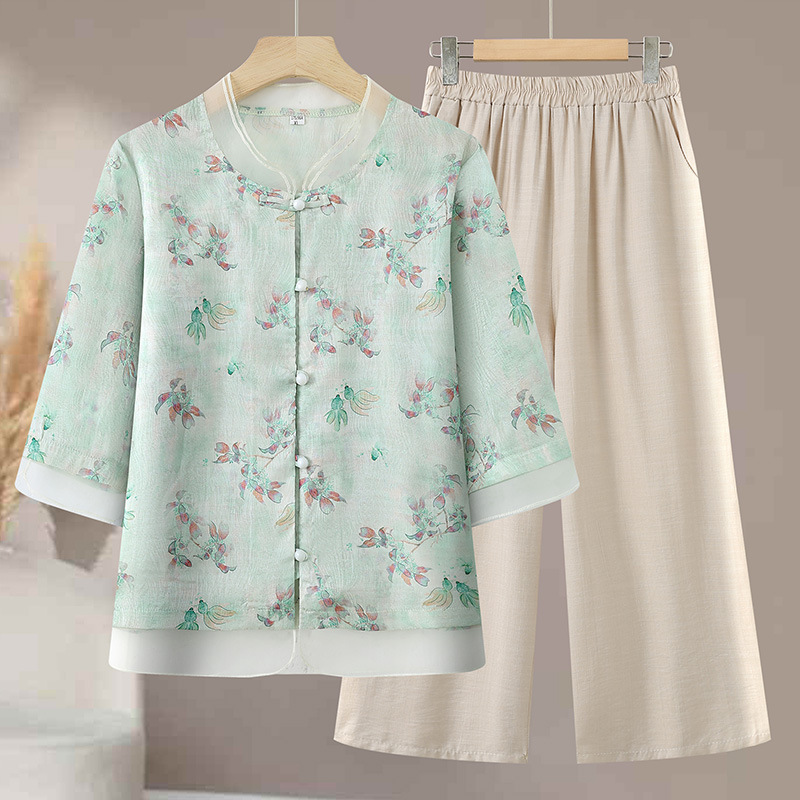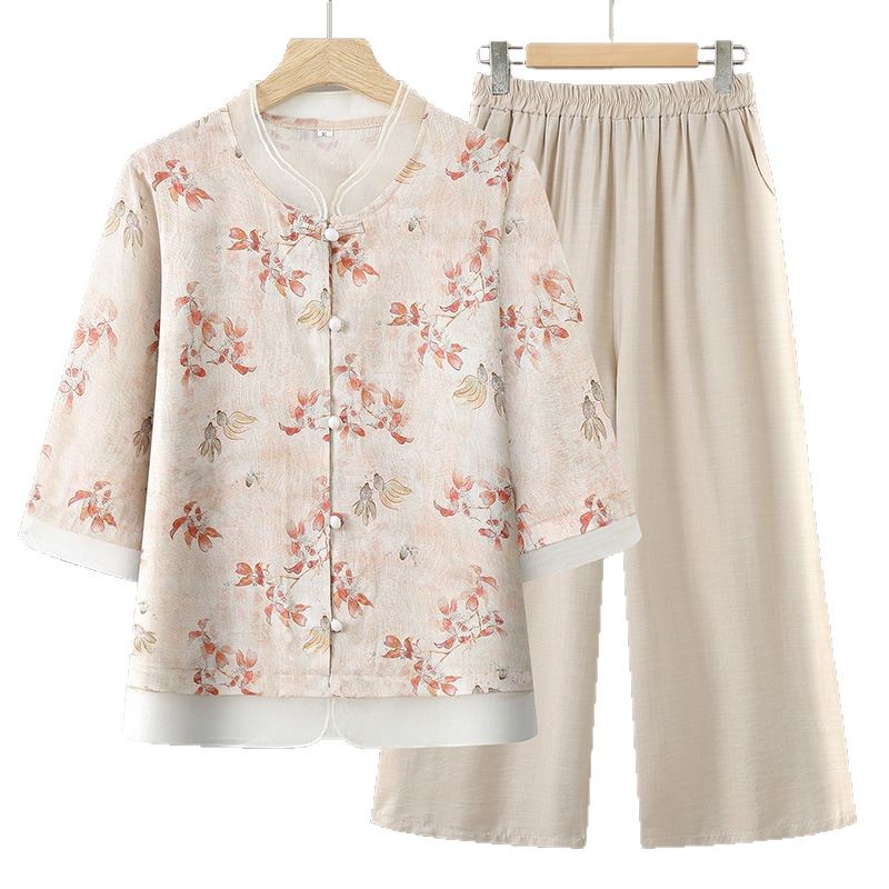 Мама летняя одежда тонкая ретро национальная ветреная маленькая рубашка из двух частей среднего и пожилого женского возраста летняя одежда с половинным рукавом