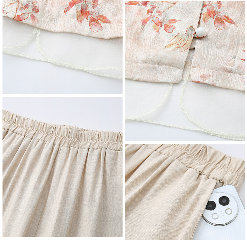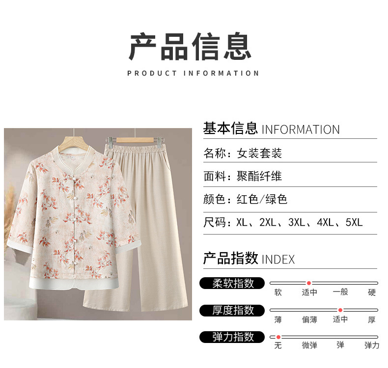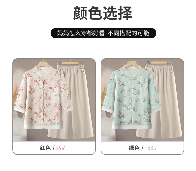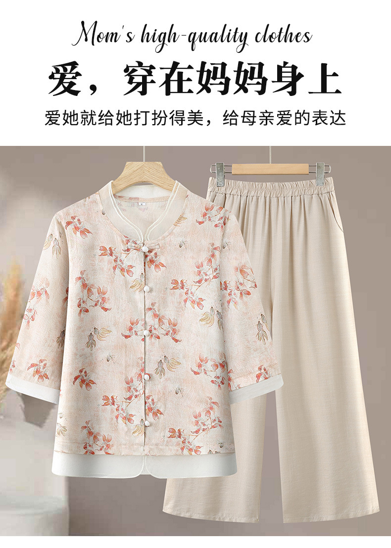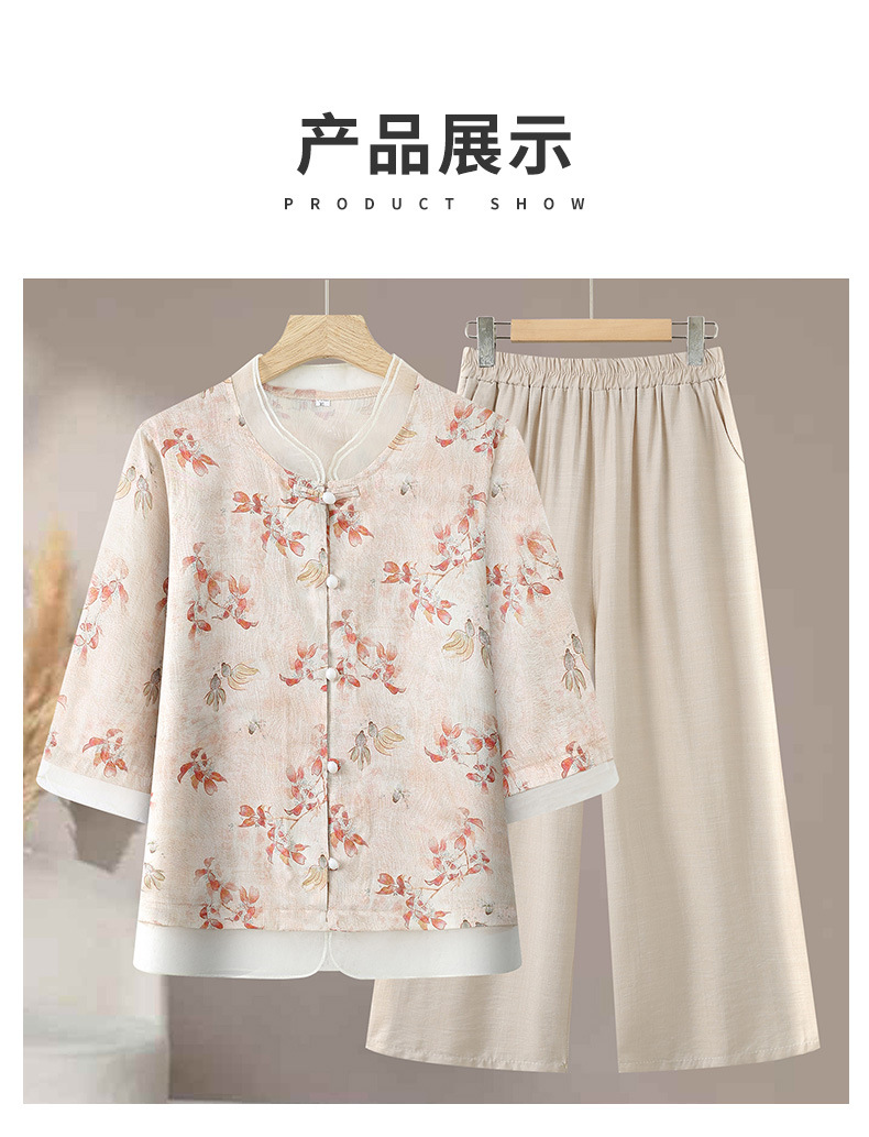 Мама летняя одежда тонкая ретро национальная ветреная маленькая рубашка из двух частей среднего и пожилого женского возраста летняя одежда с половинным рукавом