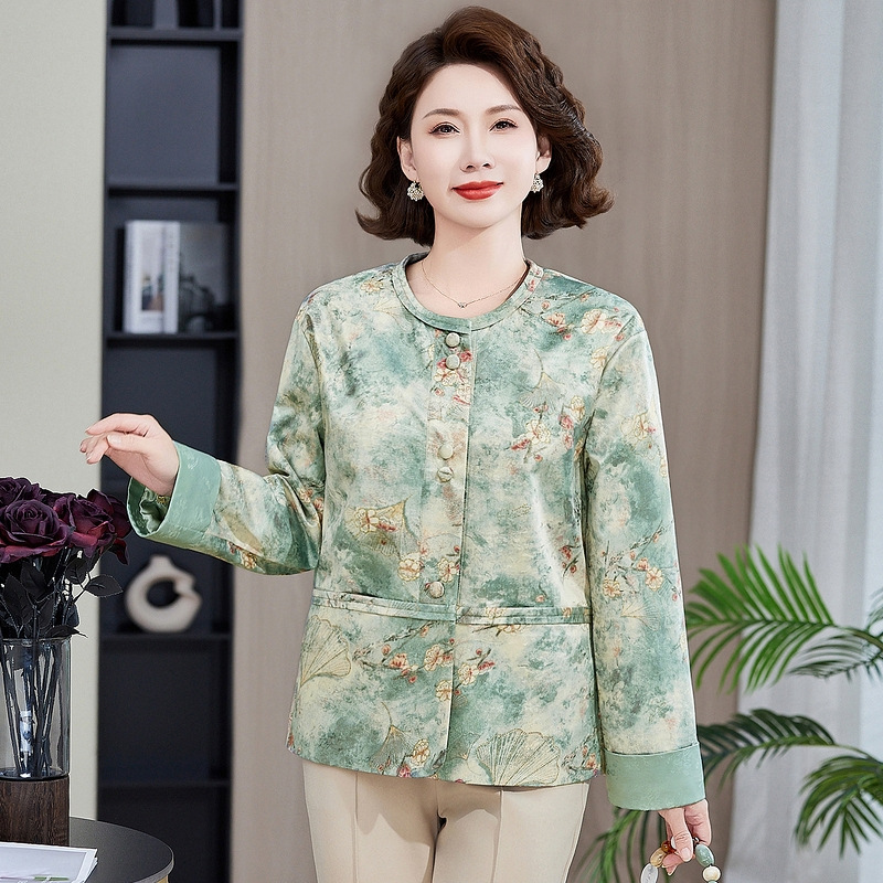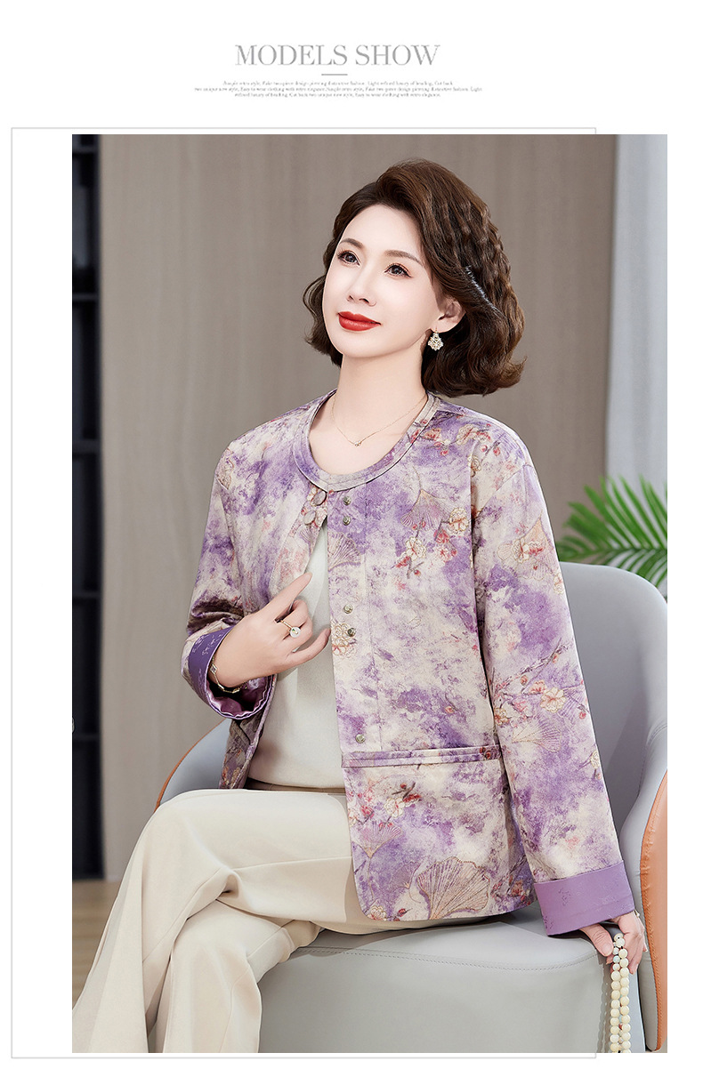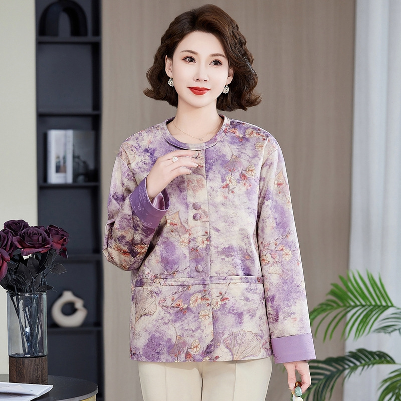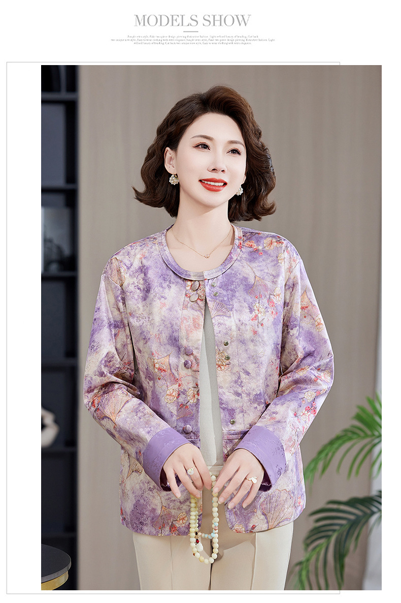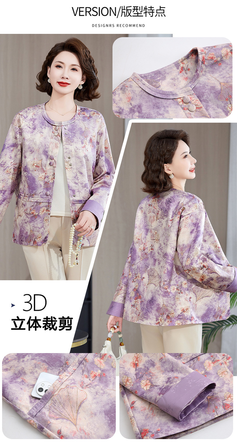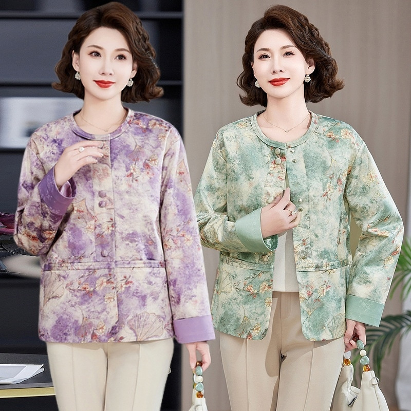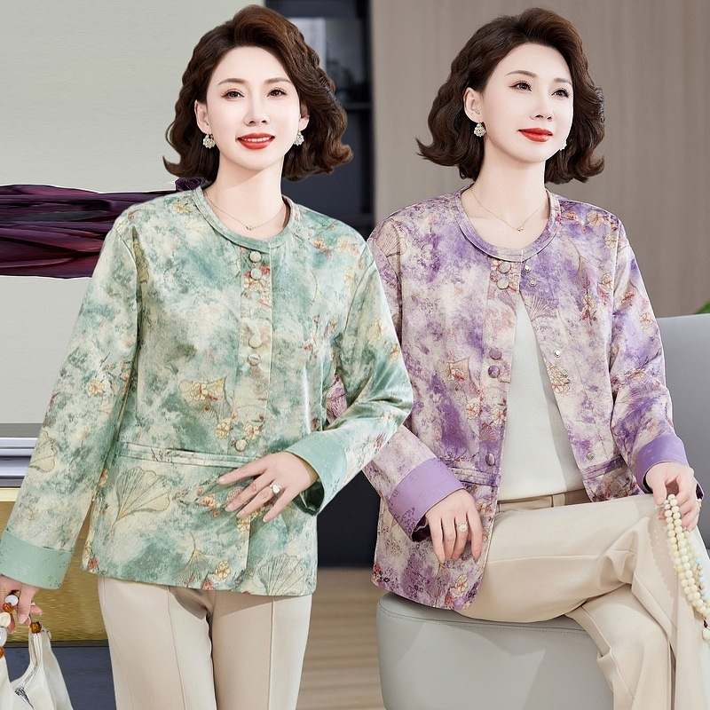 Одежда для мам, весна и осень 2025, куртки для женщин среднего и пожилого возраста, новая весенне-осенняя одежда, свободные топы и куртки с круглым вырезом.