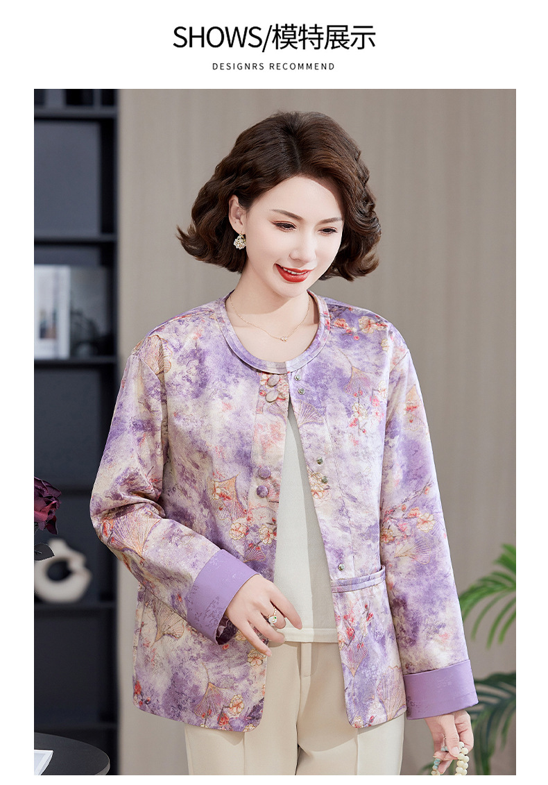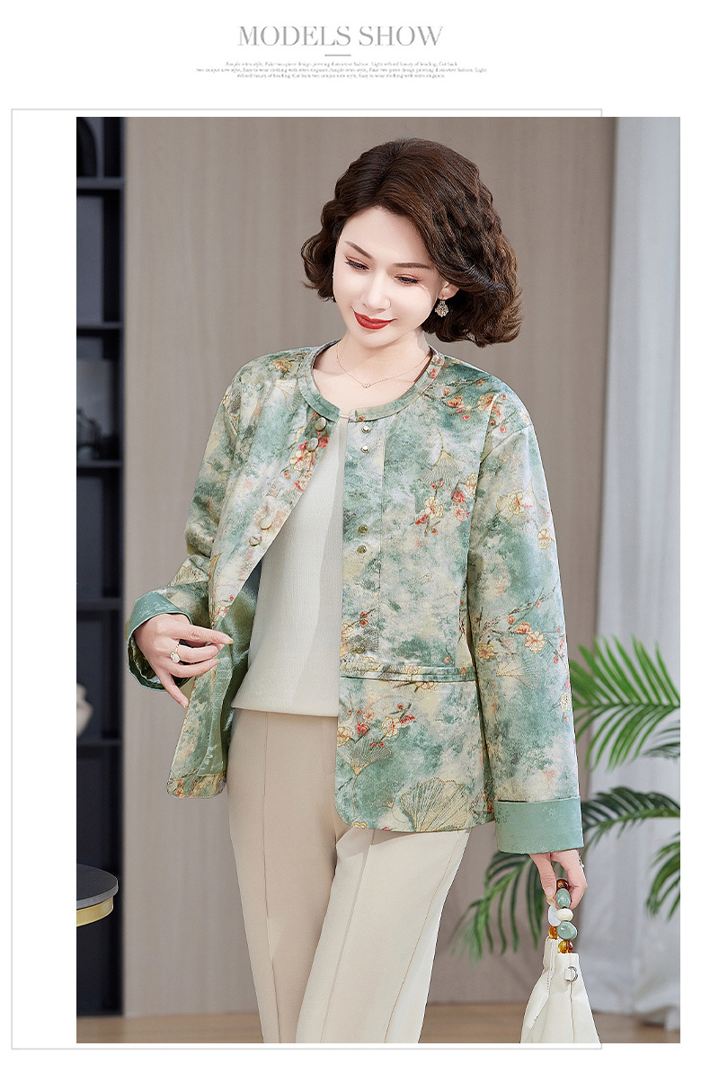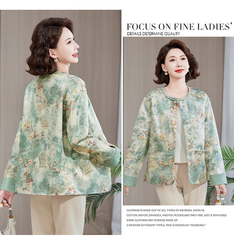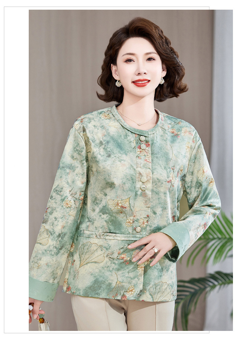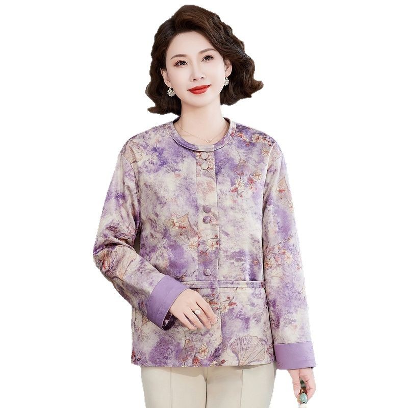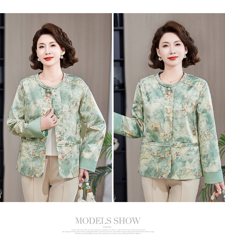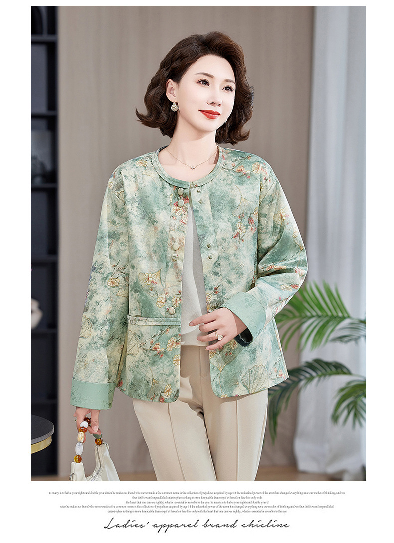 Одежда для мам, весна и осень 2025, куртки для женщин среднего и пожилого возраста, новая весенне-осенняя одежда, свободные топы и куртки с круглым вырезом.