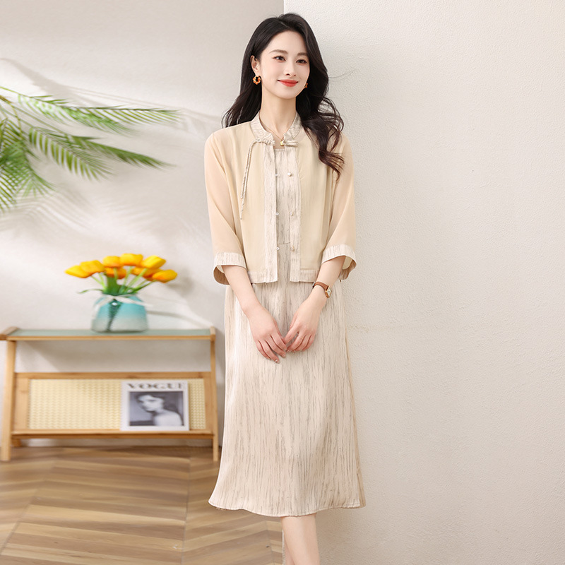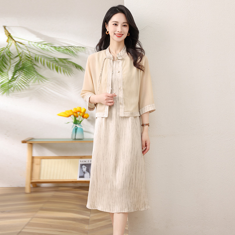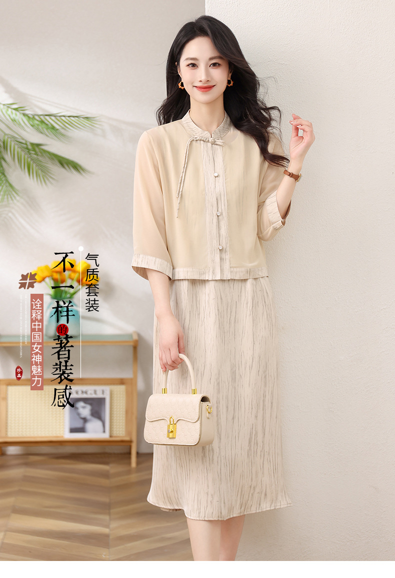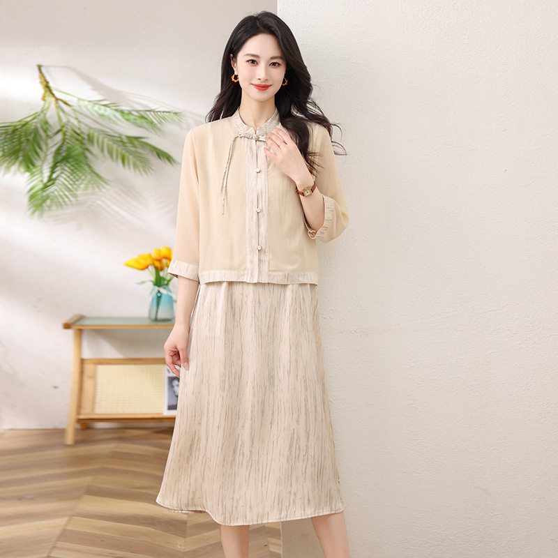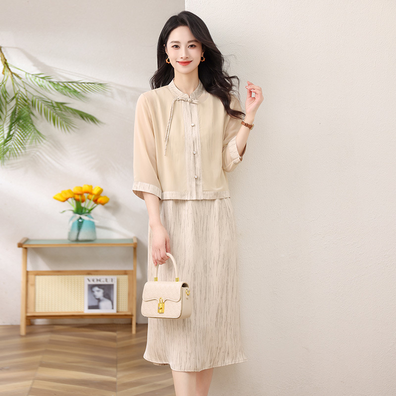 Новый китайский стиль: комплект из двух предметов для мамы, летний стиль 2025, юбка в китайском стиле, летний костюм для женщин среднего и пожилого возраста