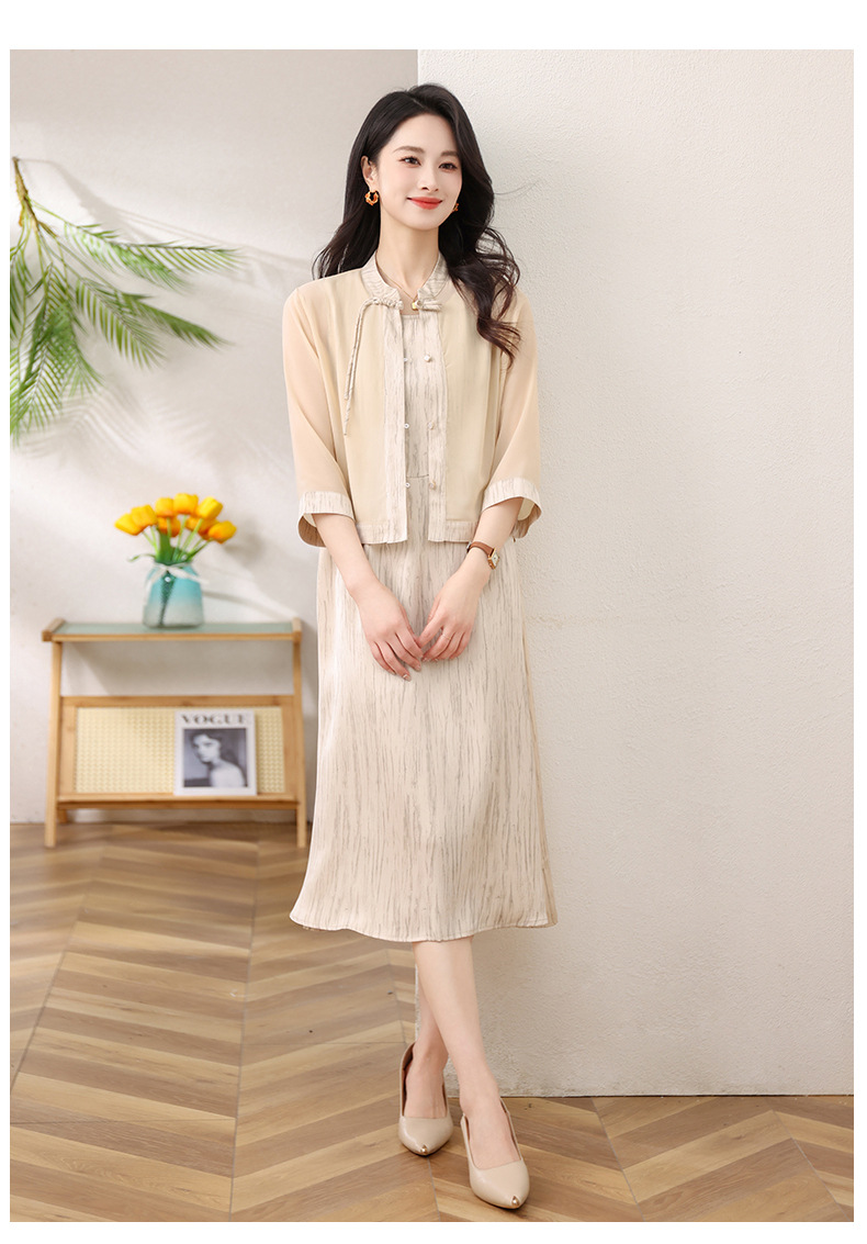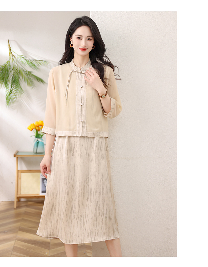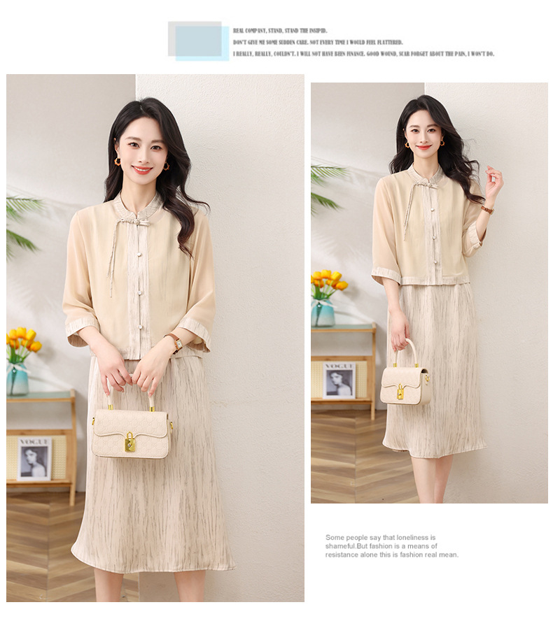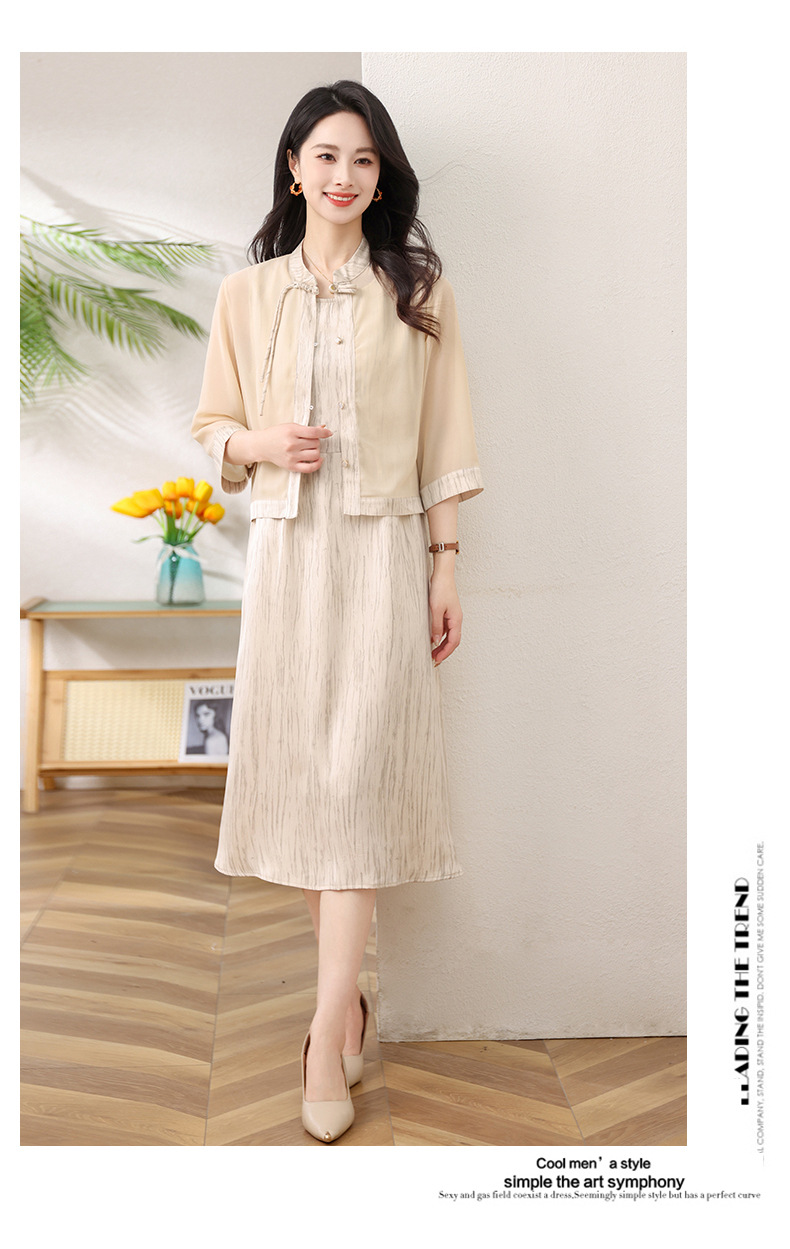 Новый китайский стиль: комплект из двух предметов для мамы, летний стиль 2025, юбка в китайском стиле, летний костюм для женщин среднего и пожилого возраста