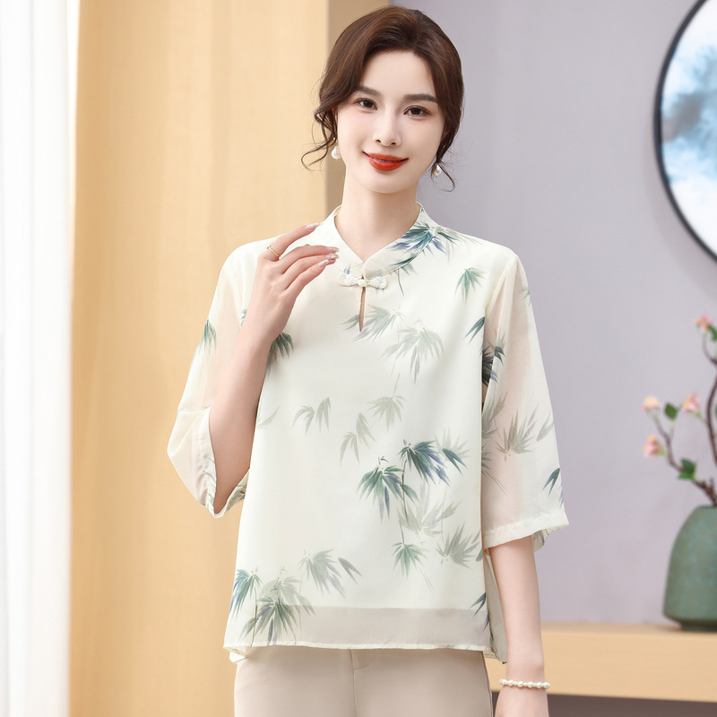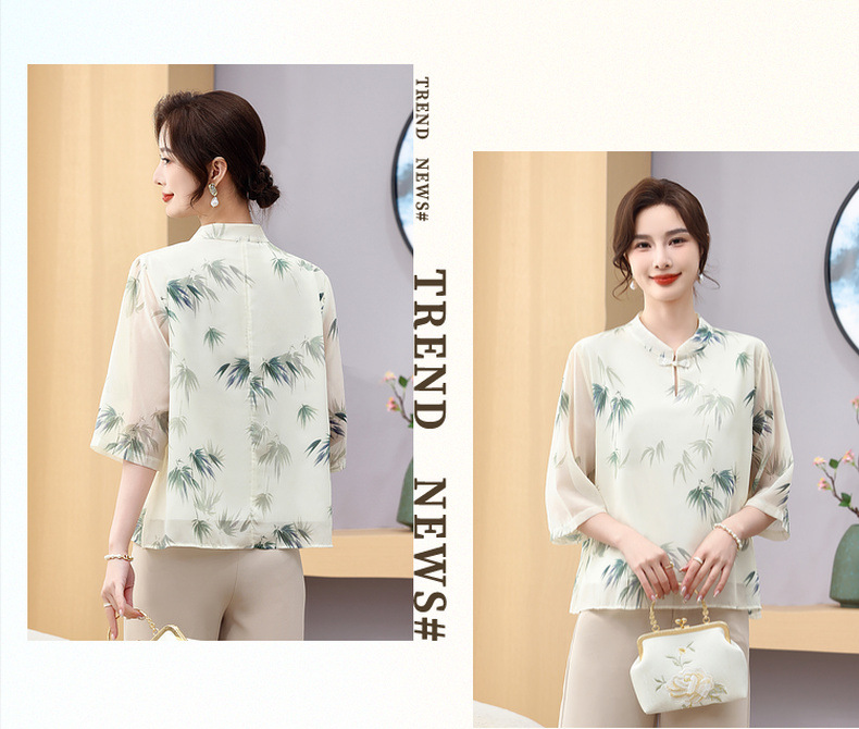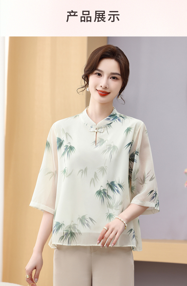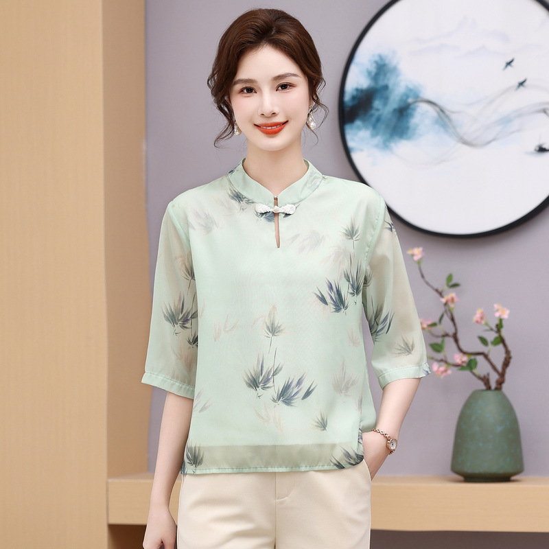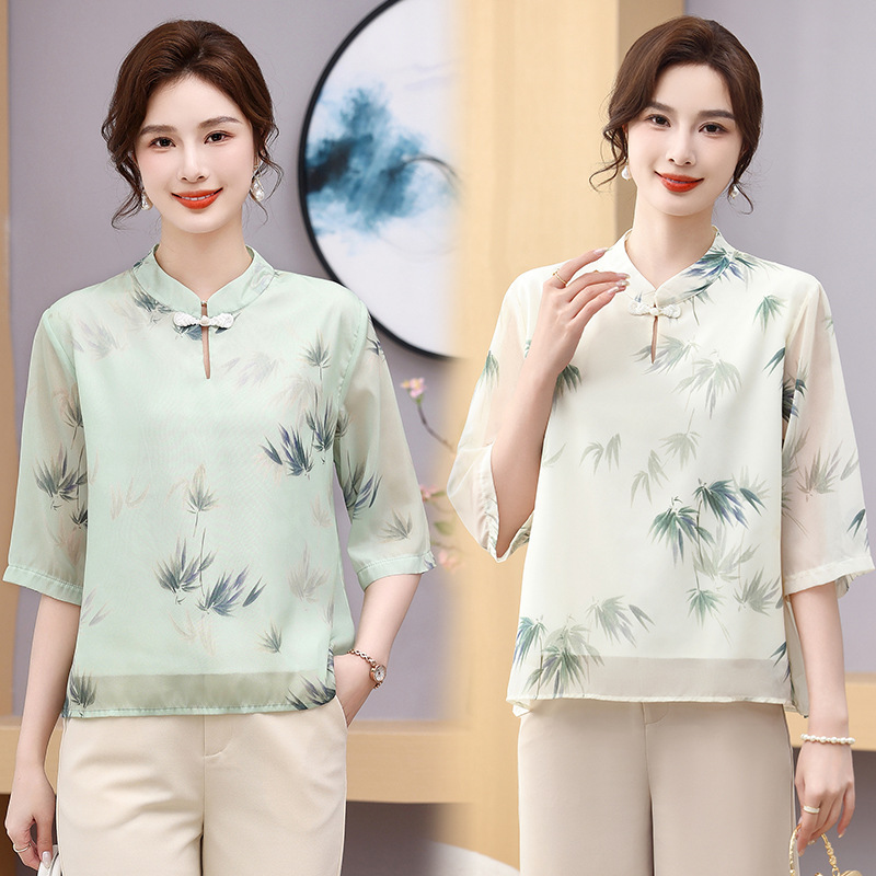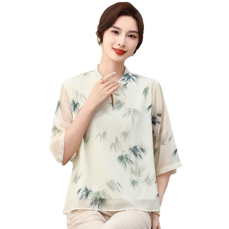 Мама платье 2025 рубашка весна и осень новый средний и пожилой женщины свободный топ для пожилых людей рубашка с принтом моды