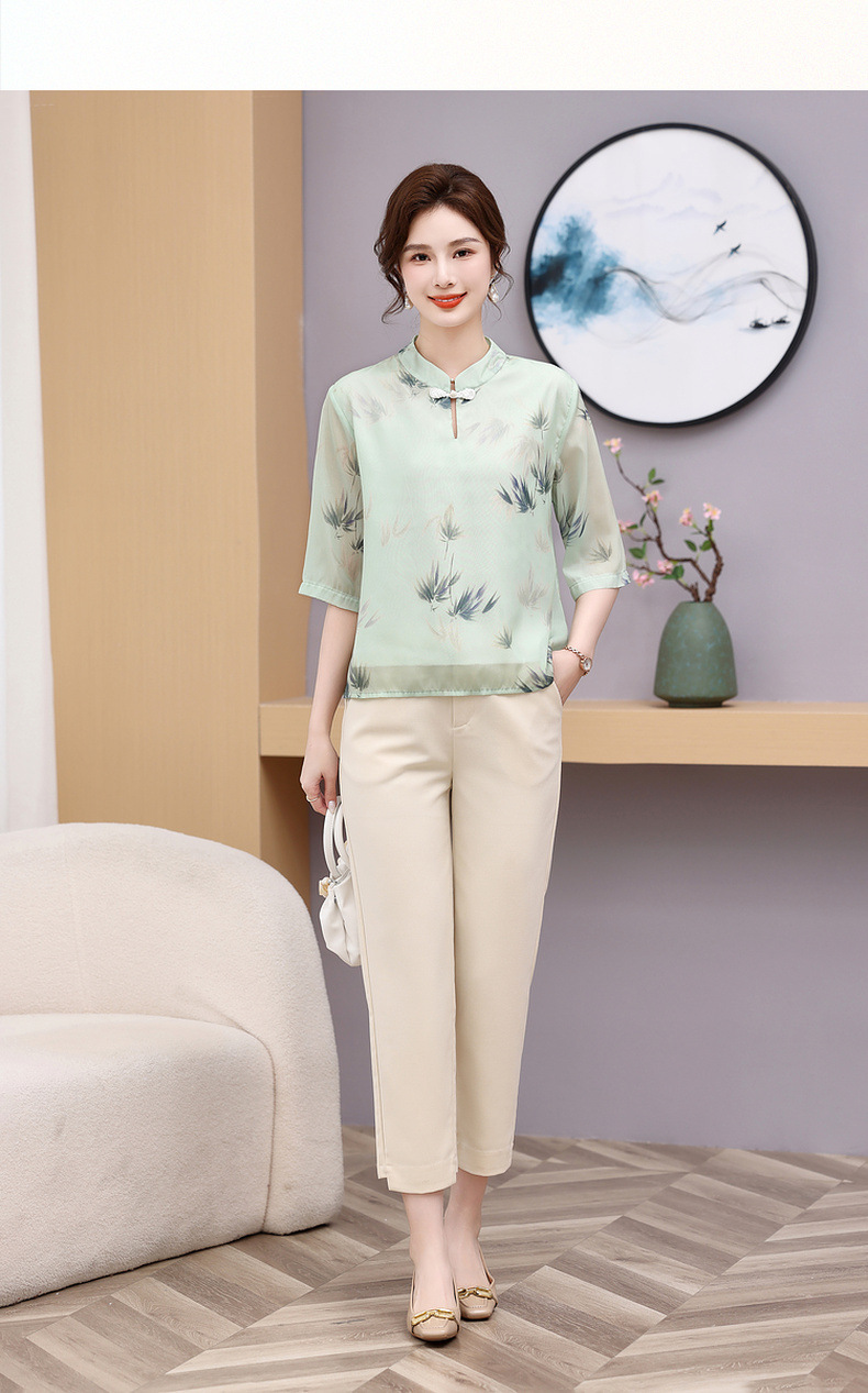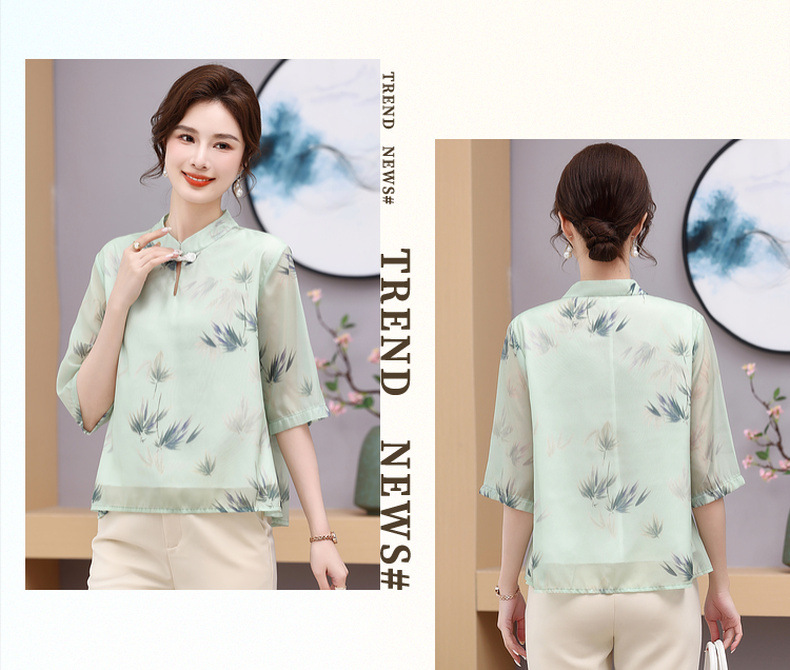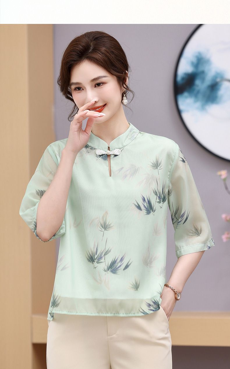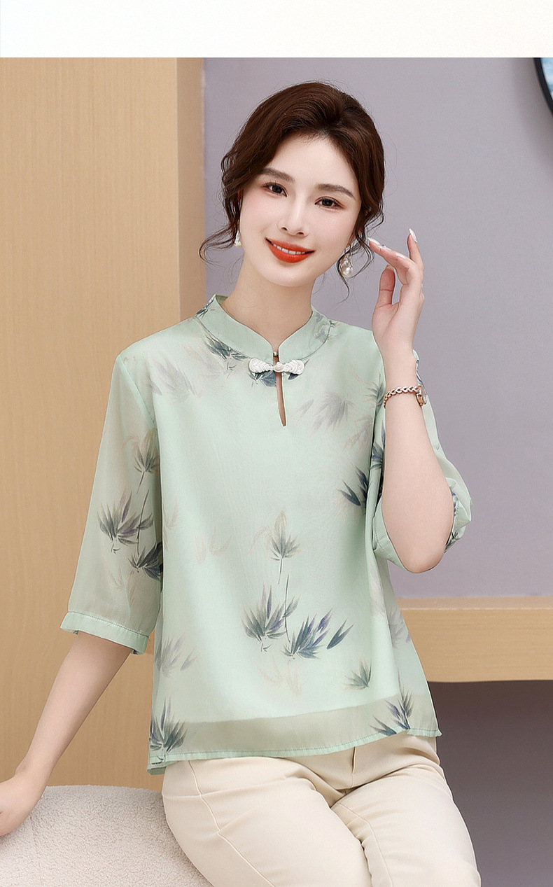 Мама платье 2025 рубашка весна и осень новый средний и пожилой женщины свободный топ для пожилых людей рубашка с принтом моды