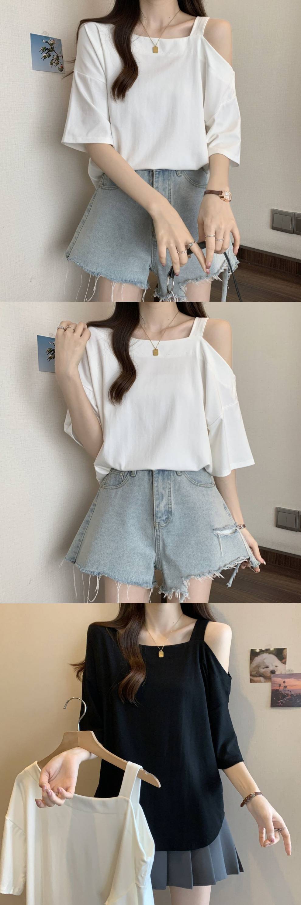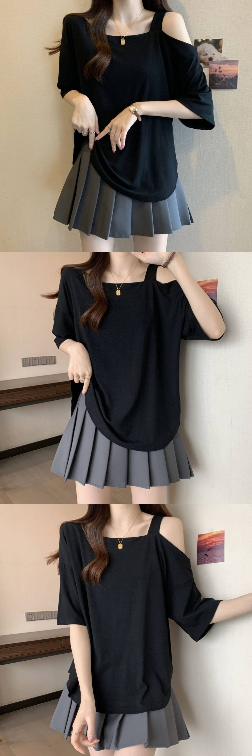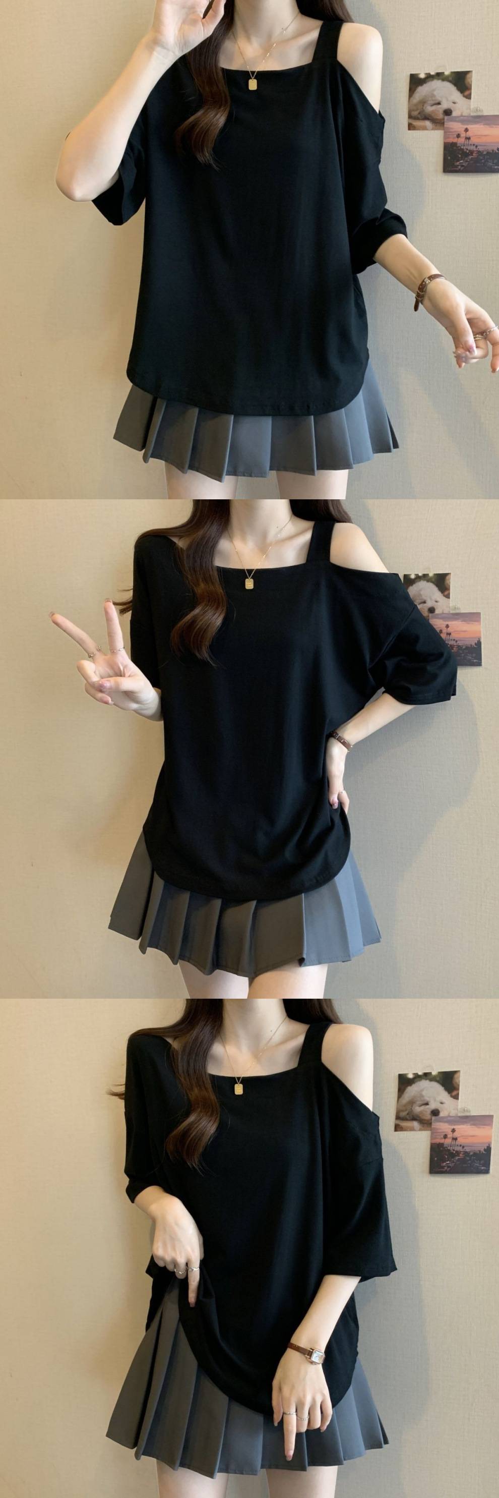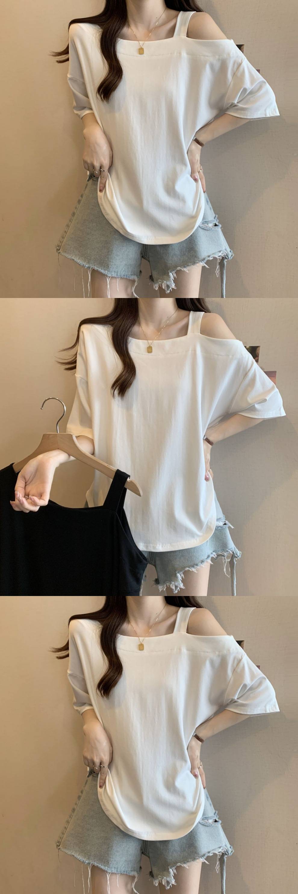 Женская рубашка больших размеров с короткими рукавами нестандартной формы, лето 2025, новый свободный утягивающий топ, закрывающий тело, уменьшающий возраст, однотонный топ с открытыми плечами