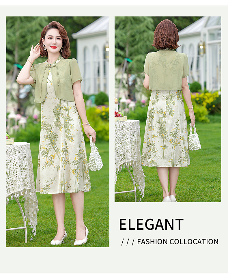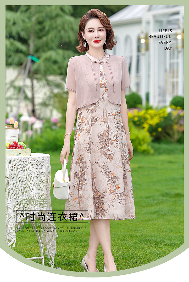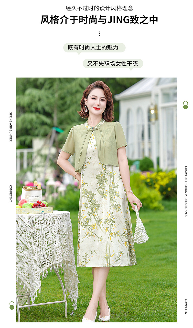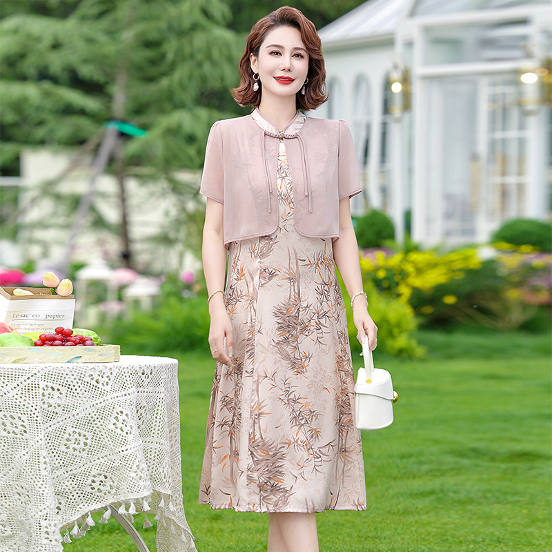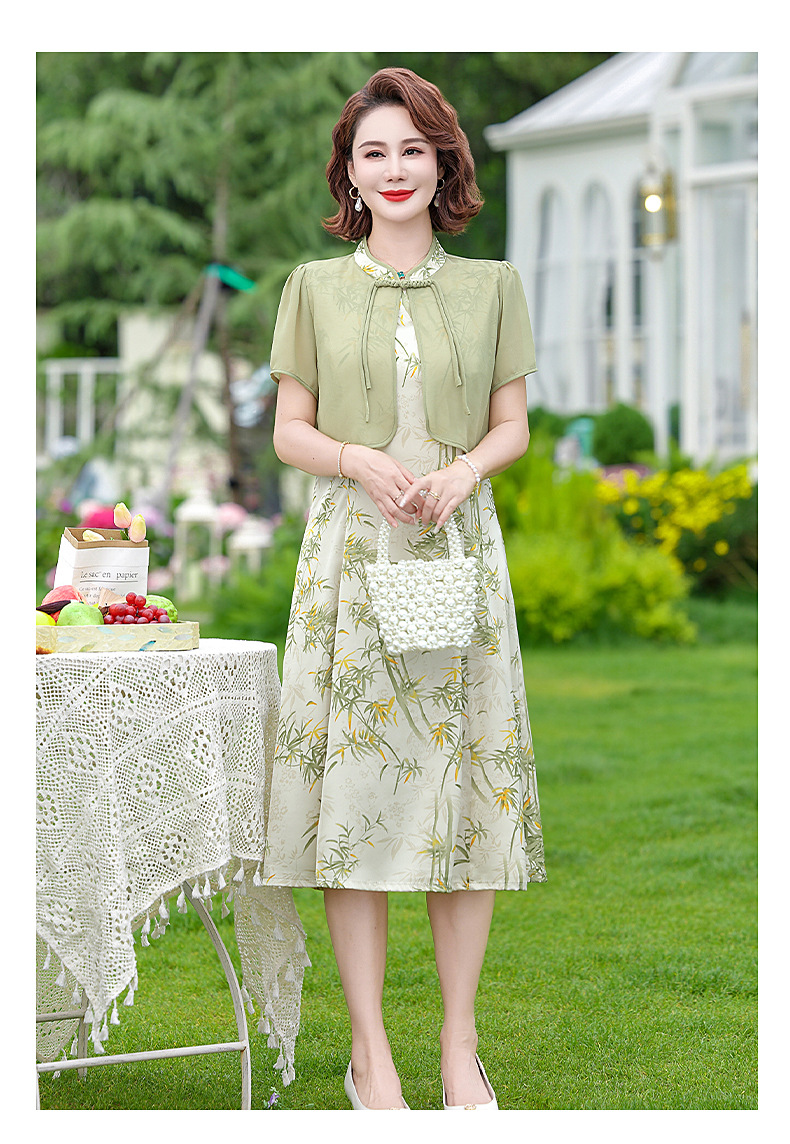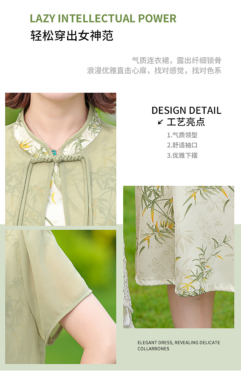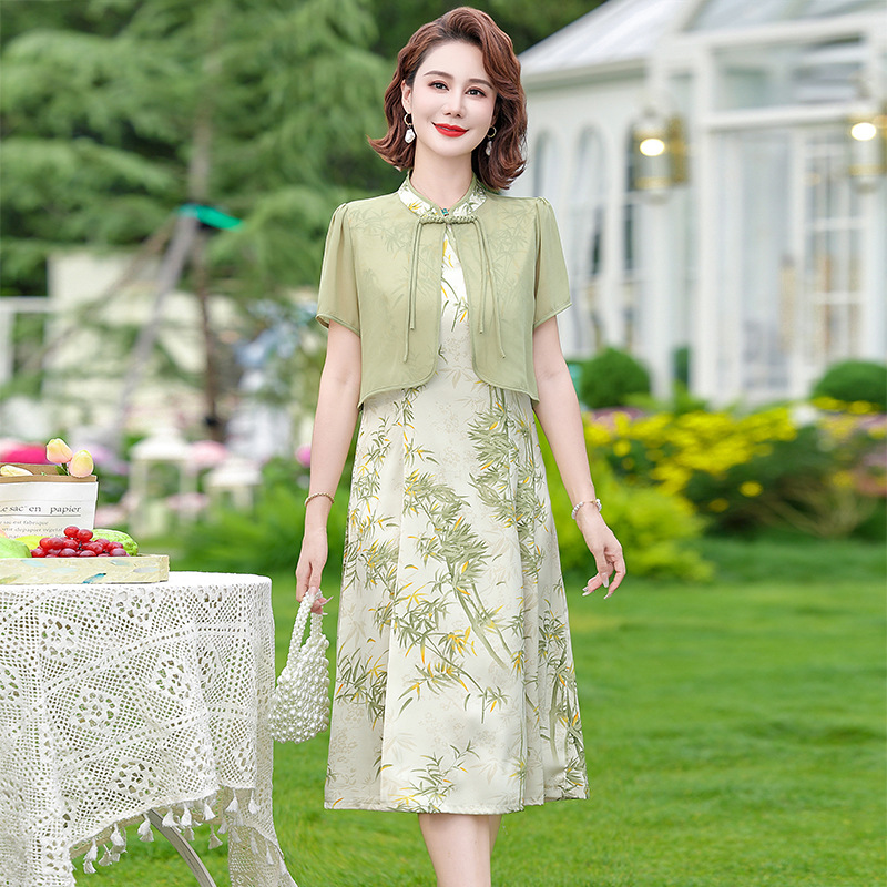 Новое летнее платье-костюм в китайском стиле для мамы 2024 года, элегантный летний национальный стиль для женщин среднего и пожилого возраста, комплект из двух предметов