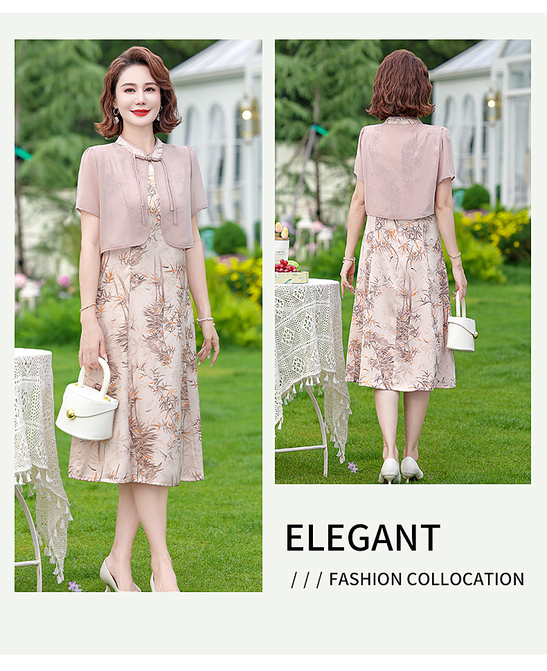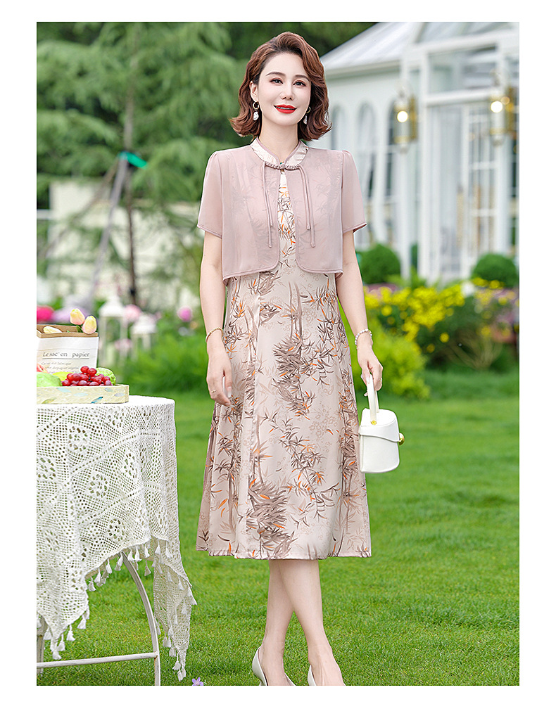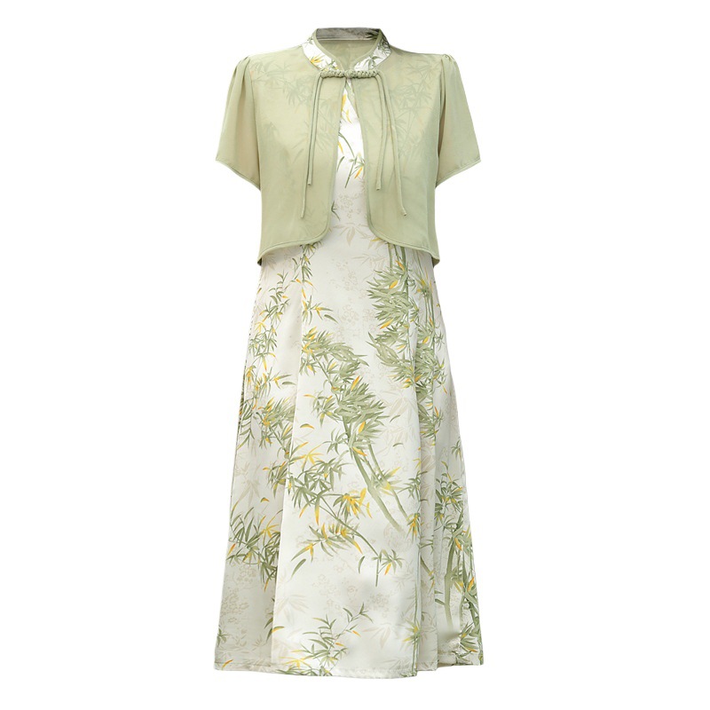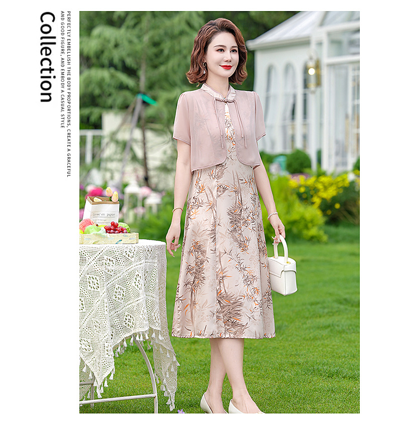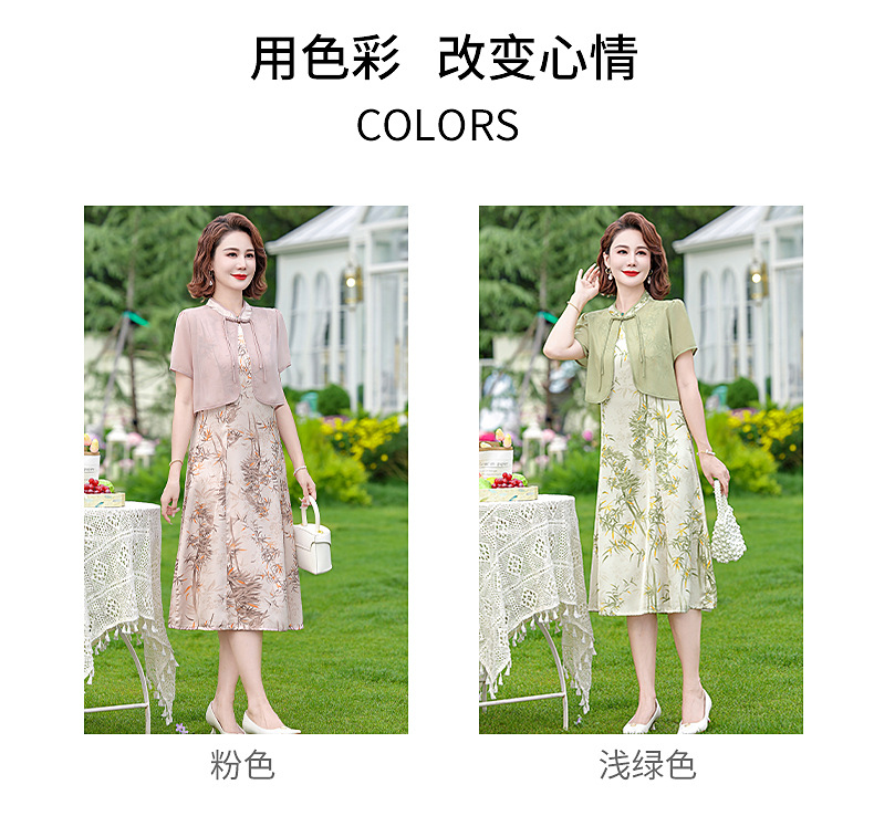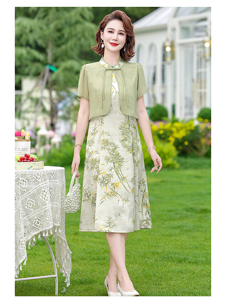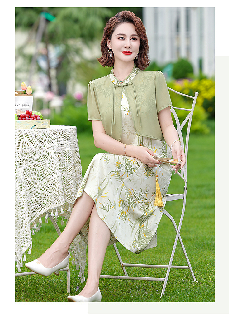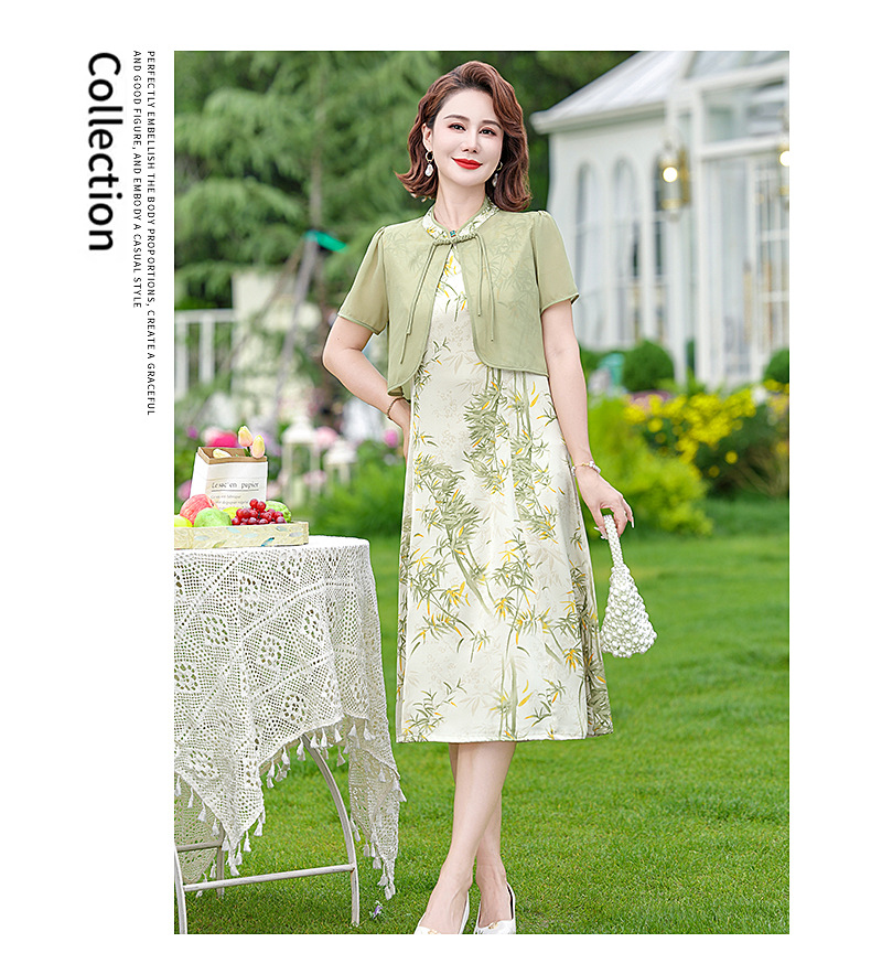 Новое летнее платье-костюм в китайском стиле для мамы 2024 года, элегантный летний национальный стиль для женщин среднего и пожилого возраста, комплект из двух предметов
