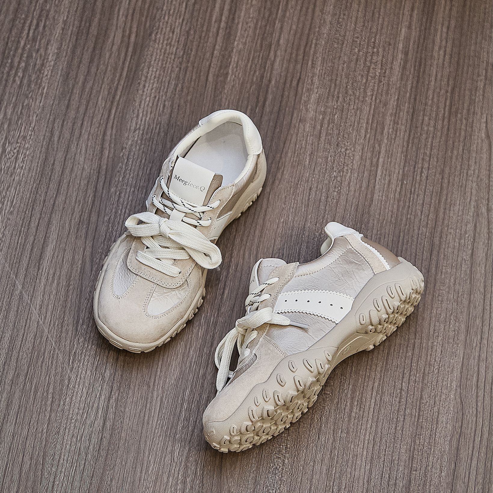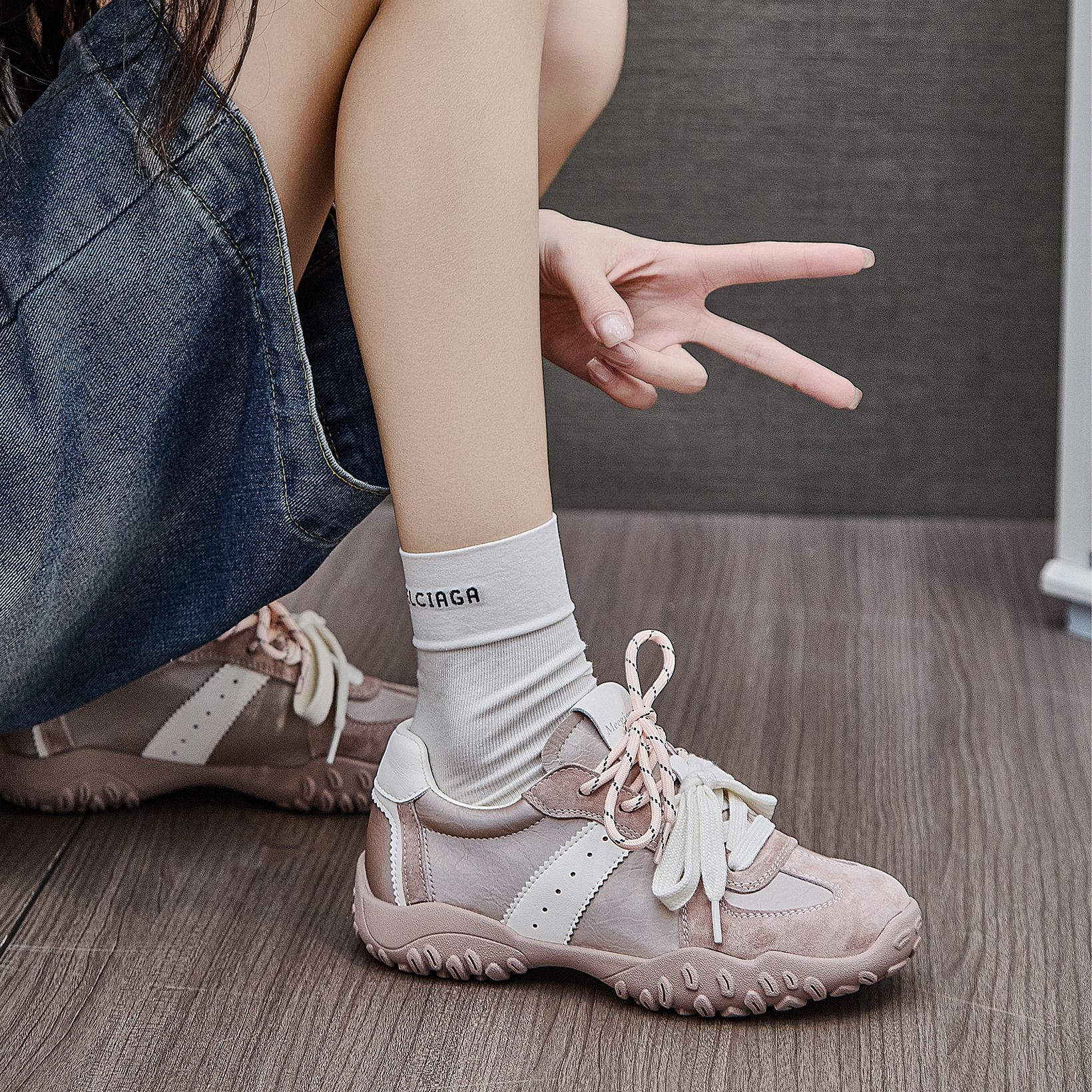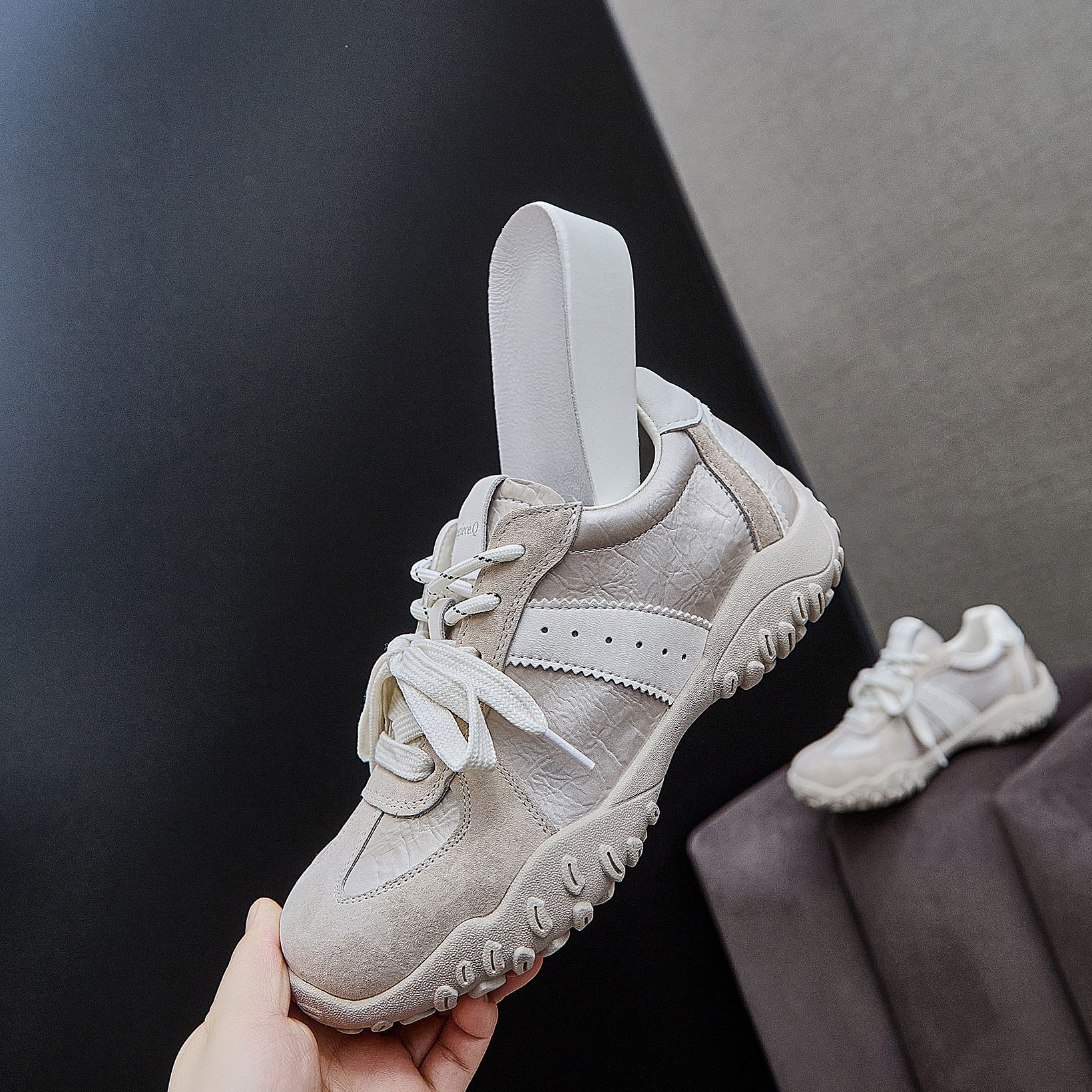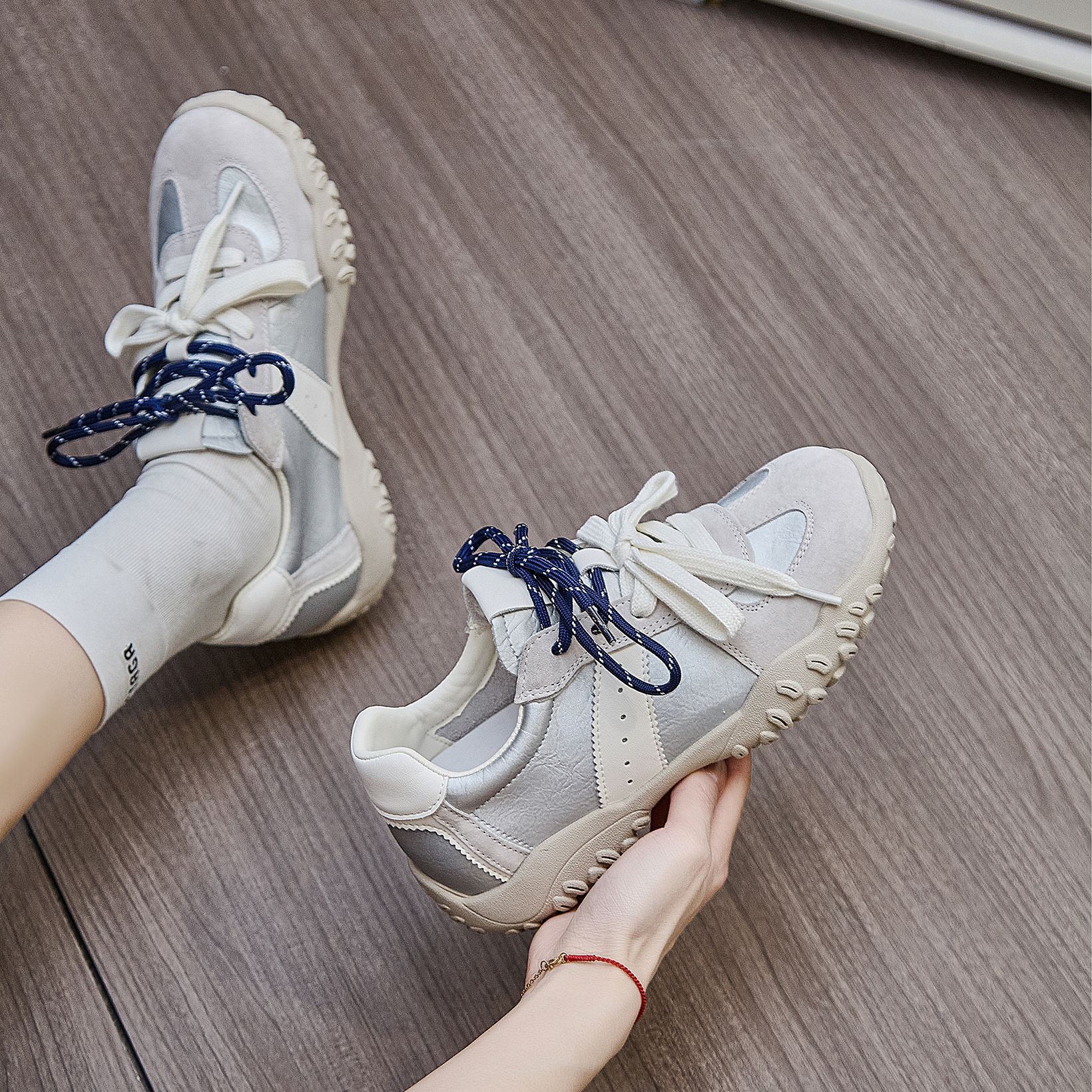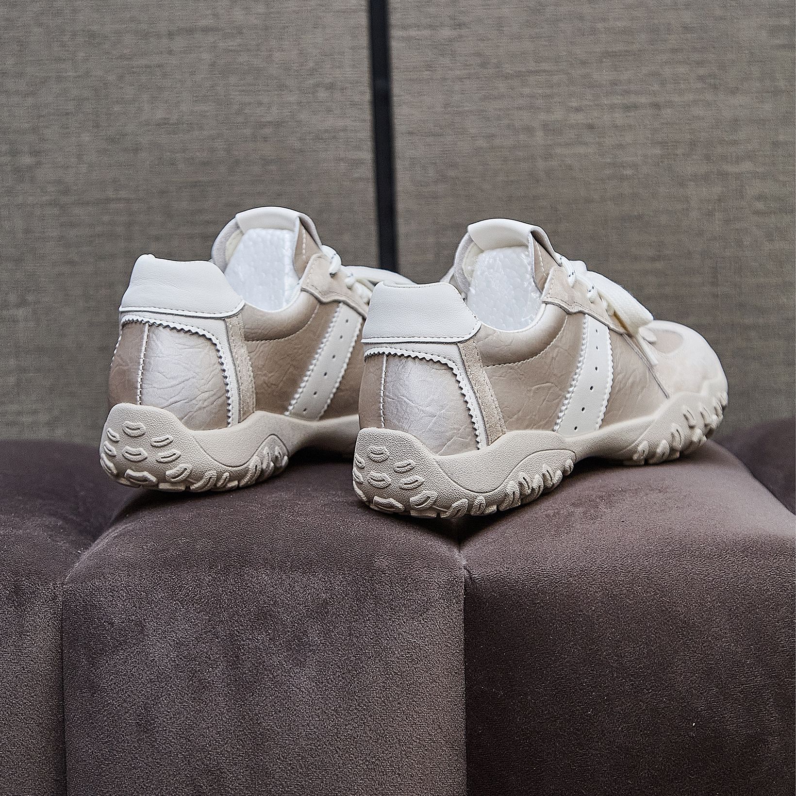 Кожаная весна и лето 2025 новый 7cm внутренний рост дикие повседневные модные кроссовки женские круглые шнуровые туфли