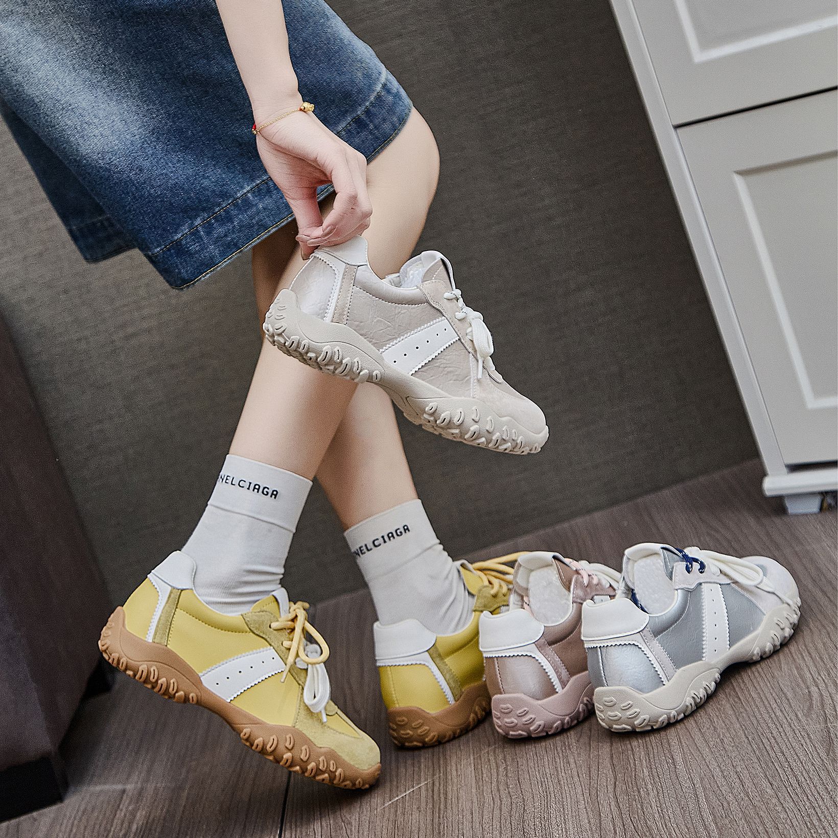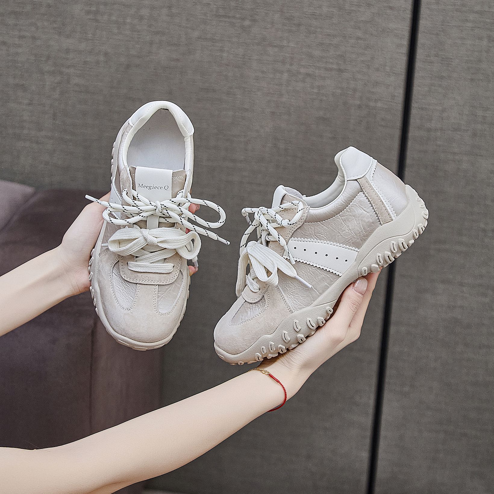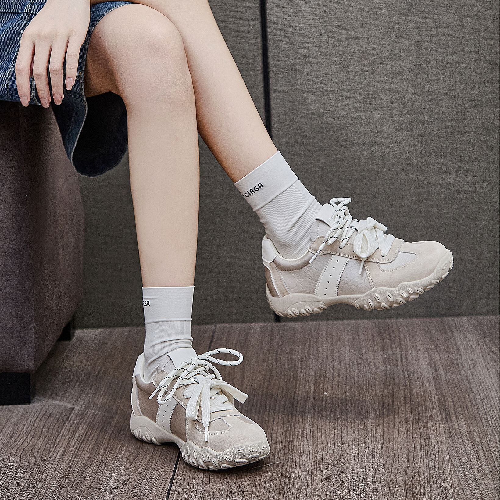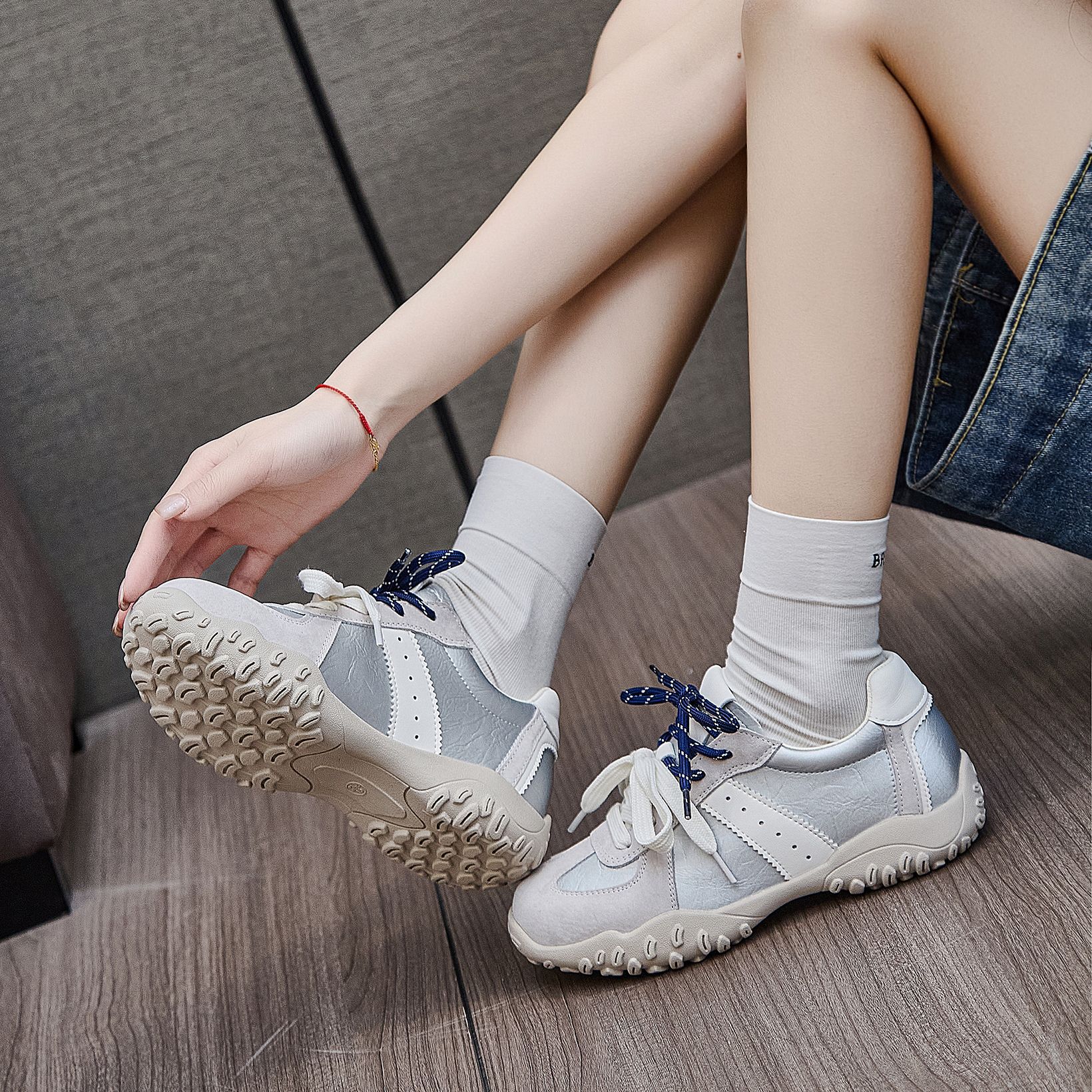Кожаная весна и лето 2025 новый 7cm внутренний рост дикие повседневные модные кроссовки женские круглые шнуровые туфли