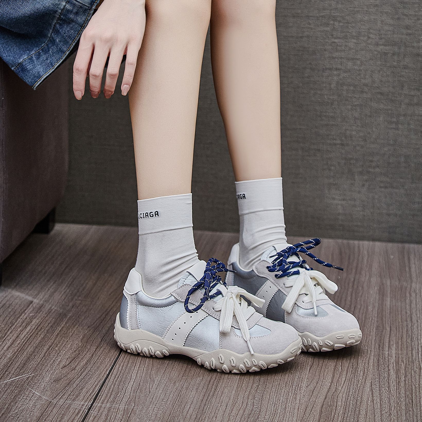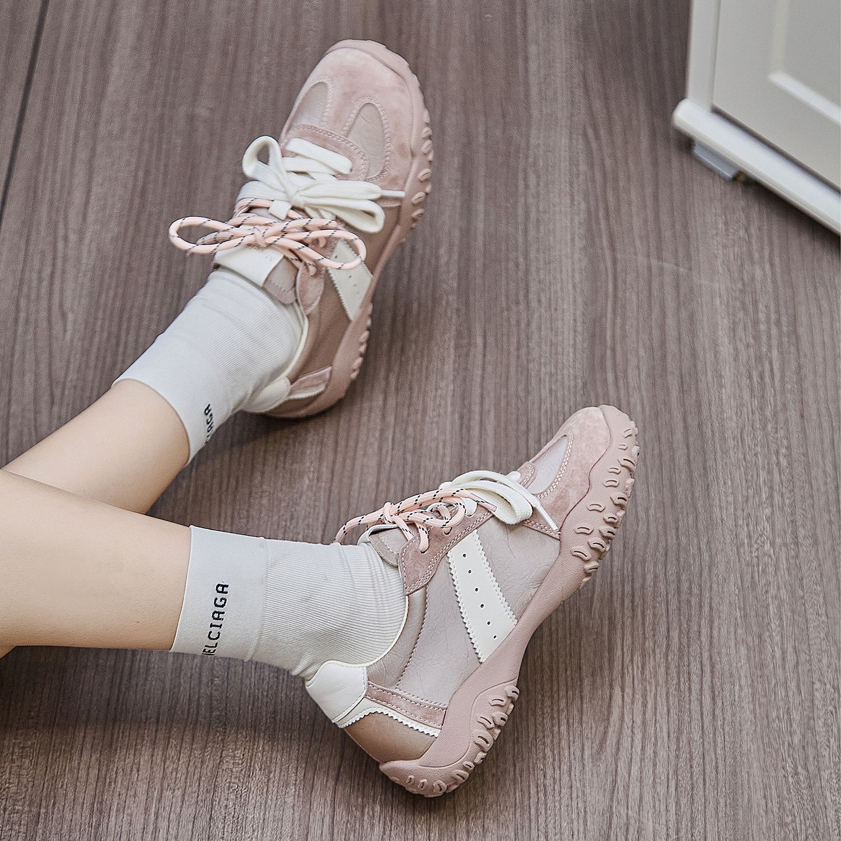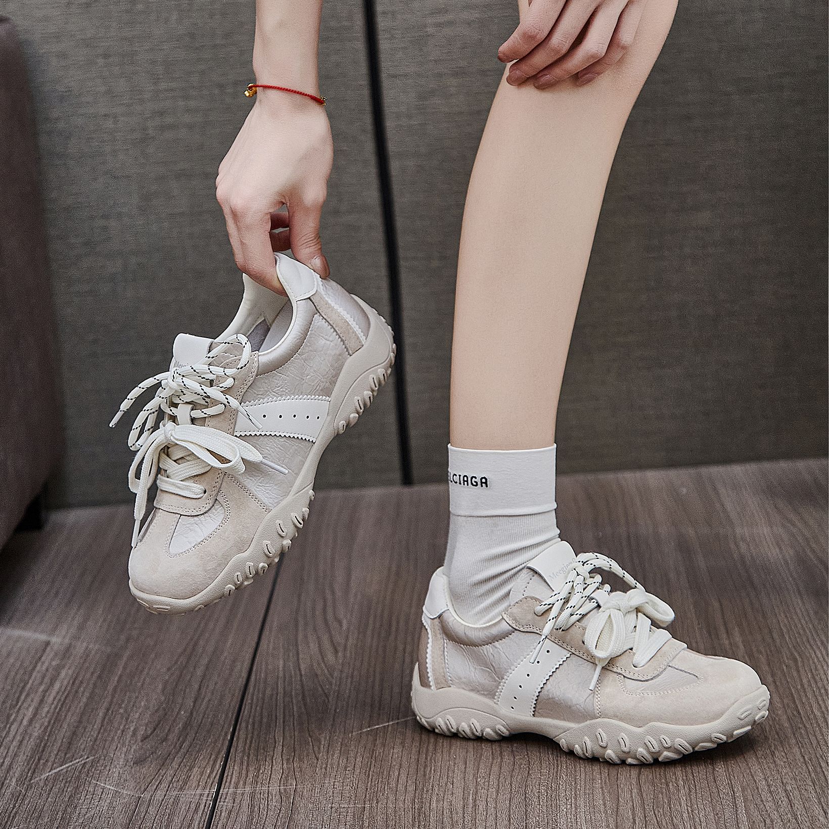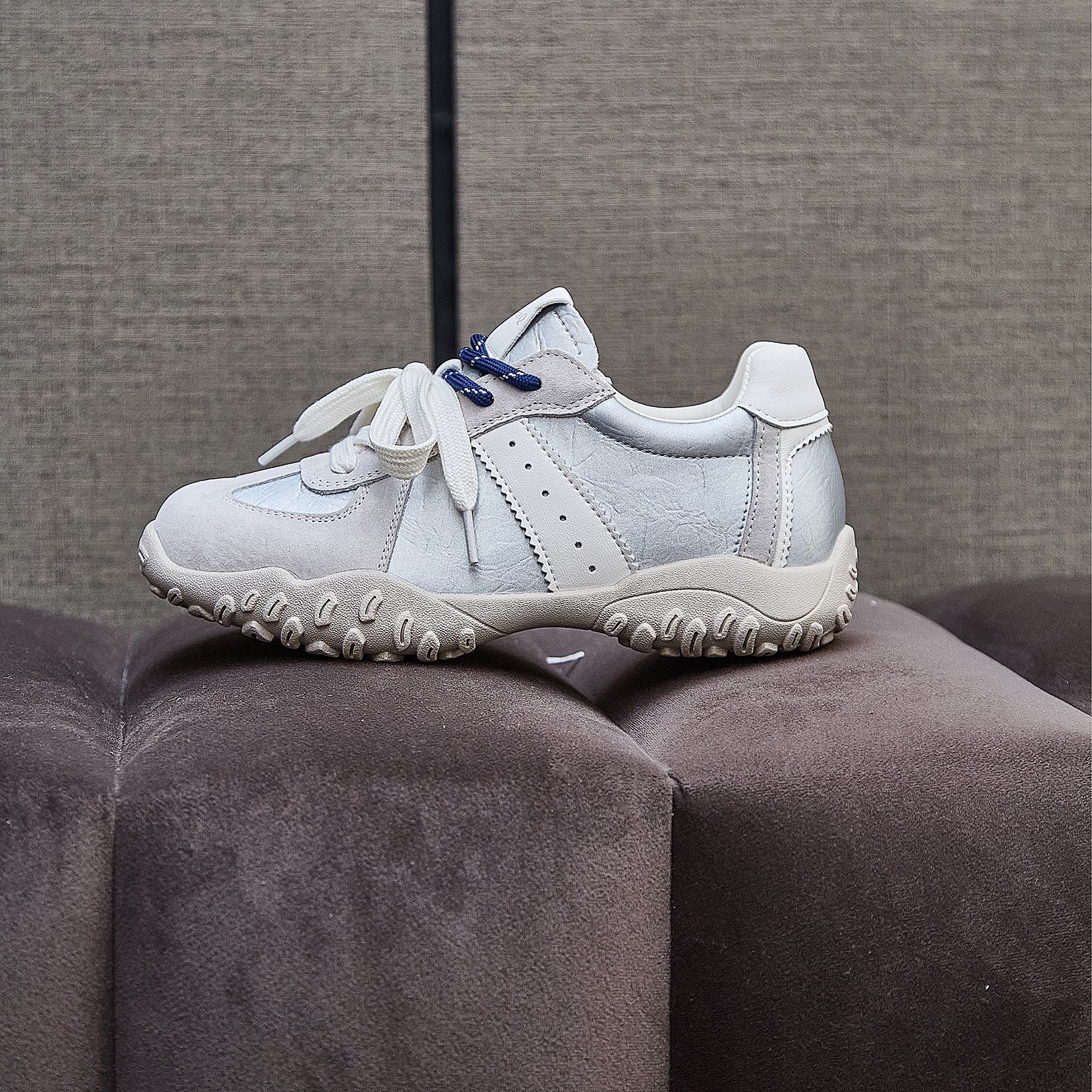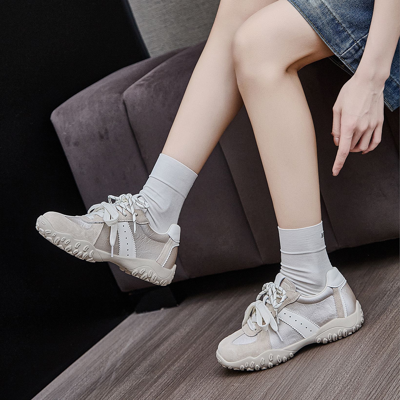 Кожаная весна и лето 2025 новый 7cm внутренний рост дикие повседневные модные кроссовки женские круглые шнуровые туфли