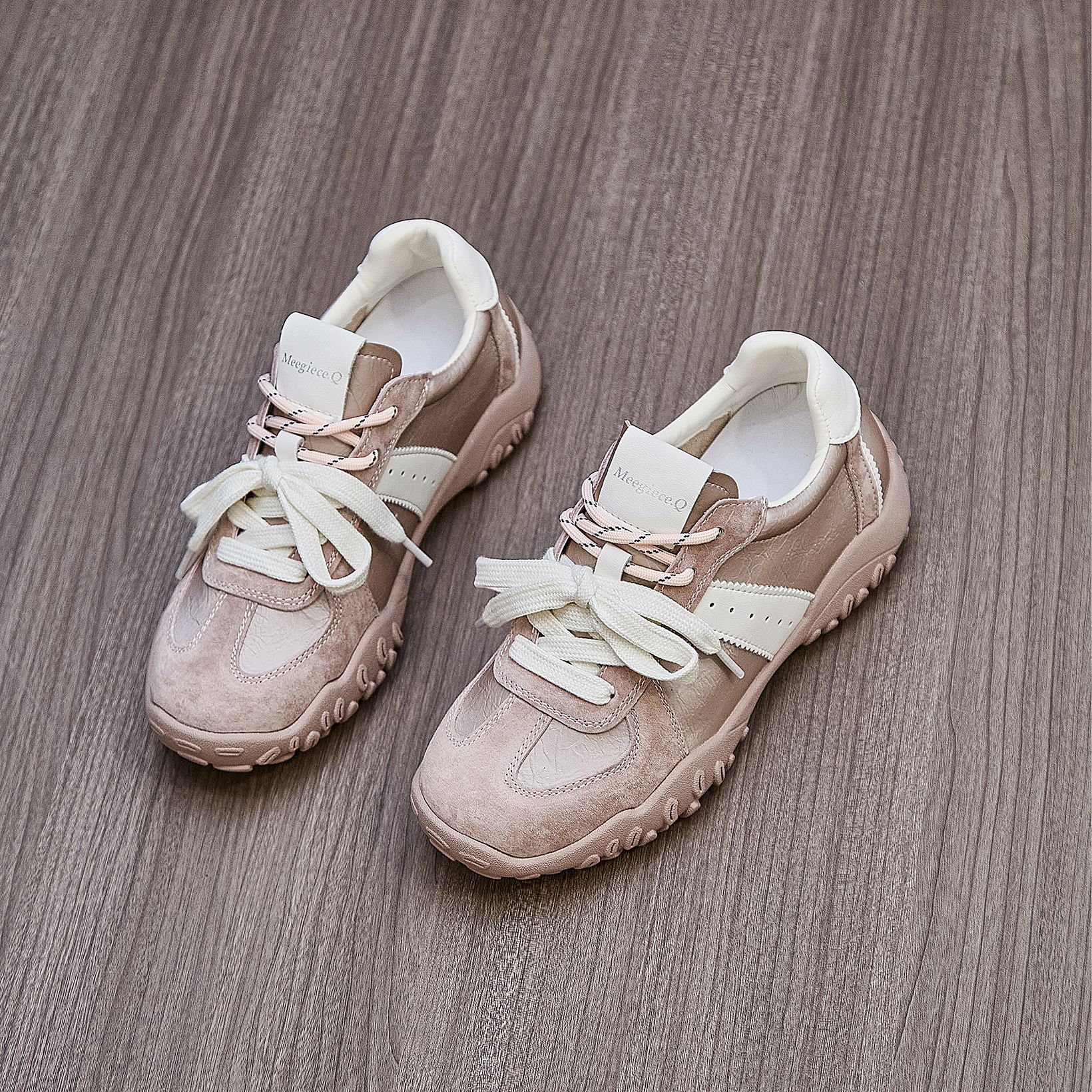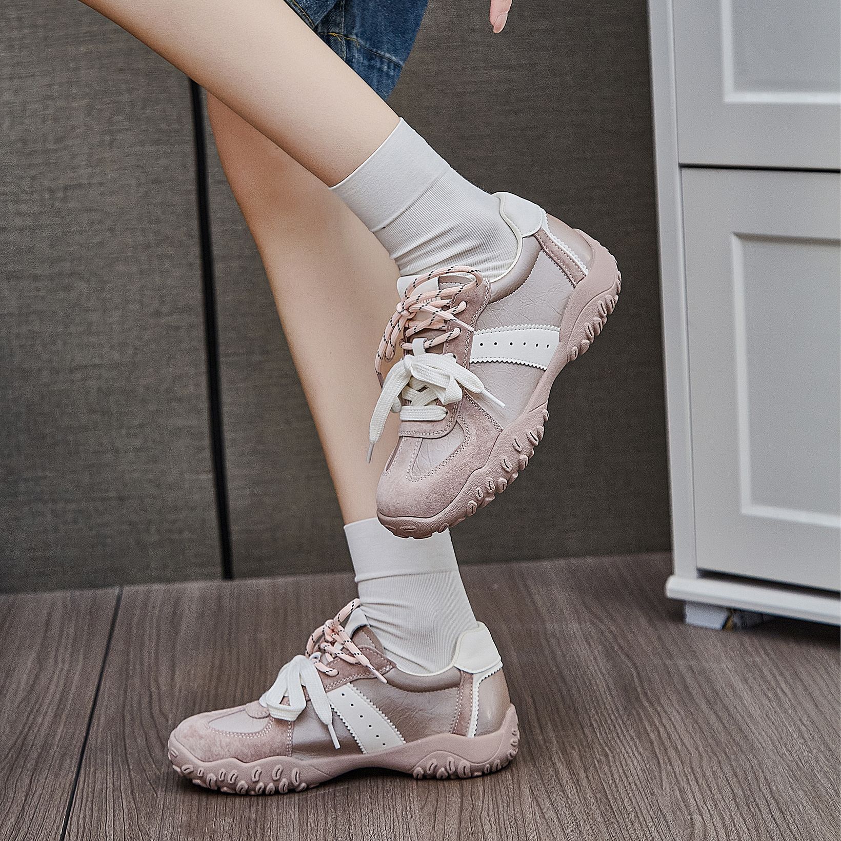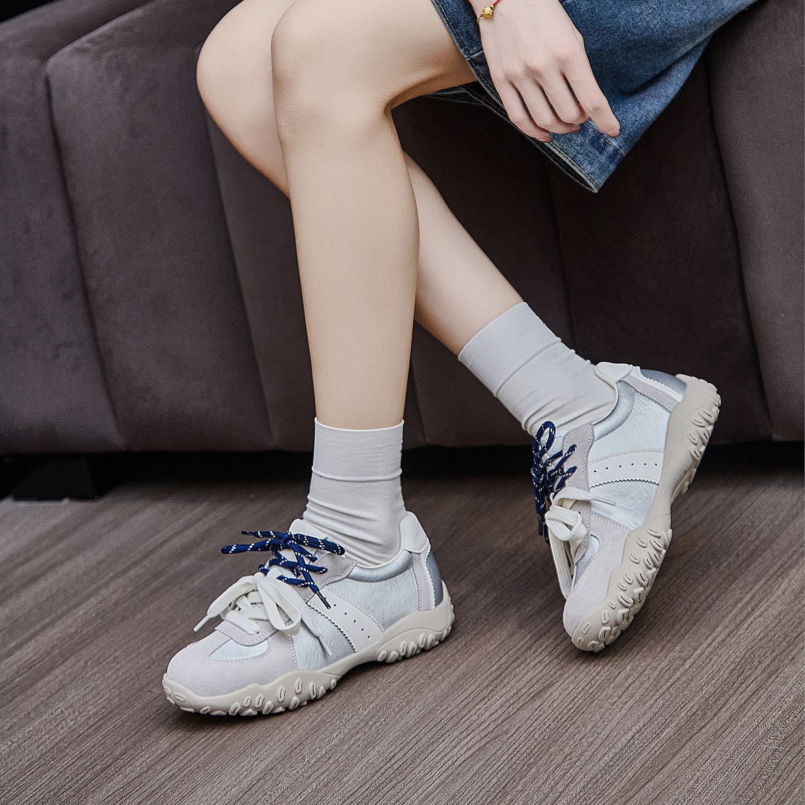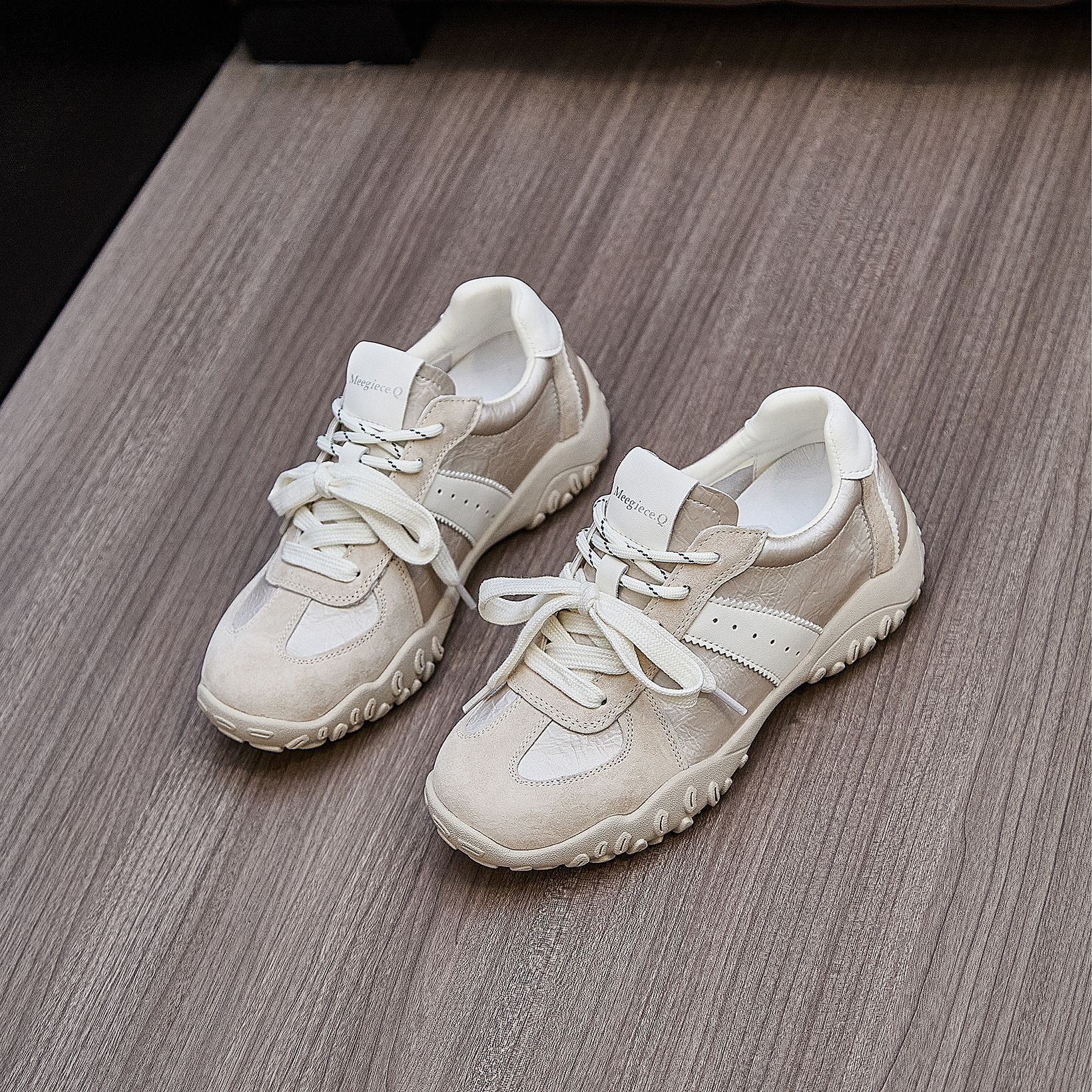 Кожаная весна и лето 2025 новый 7cm внутренний рост дикие повседневные модные кроссовки женские круглые шнуровые туфли