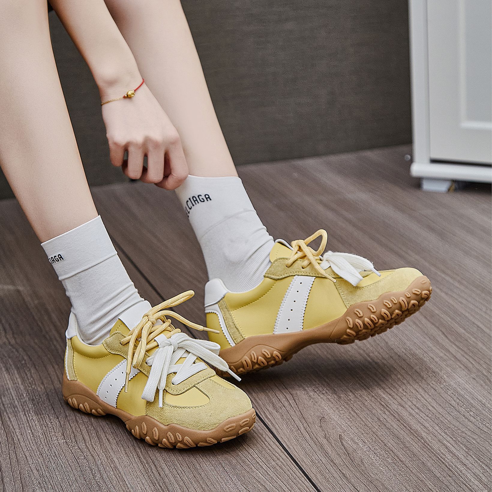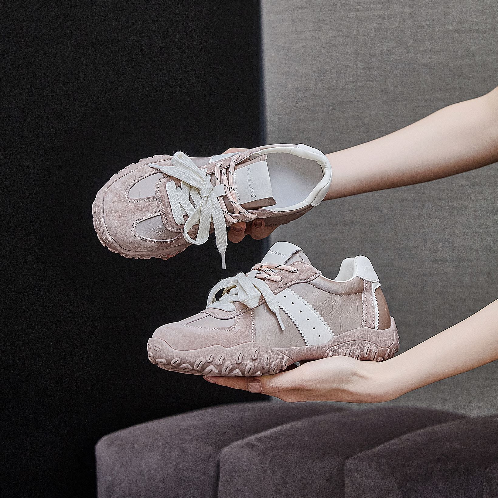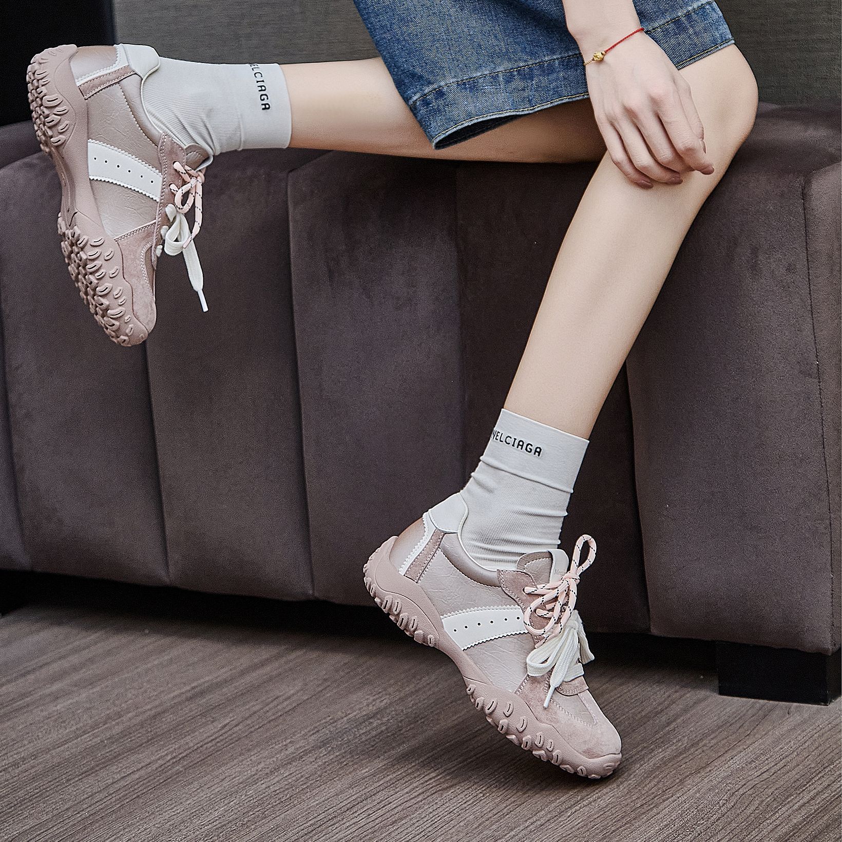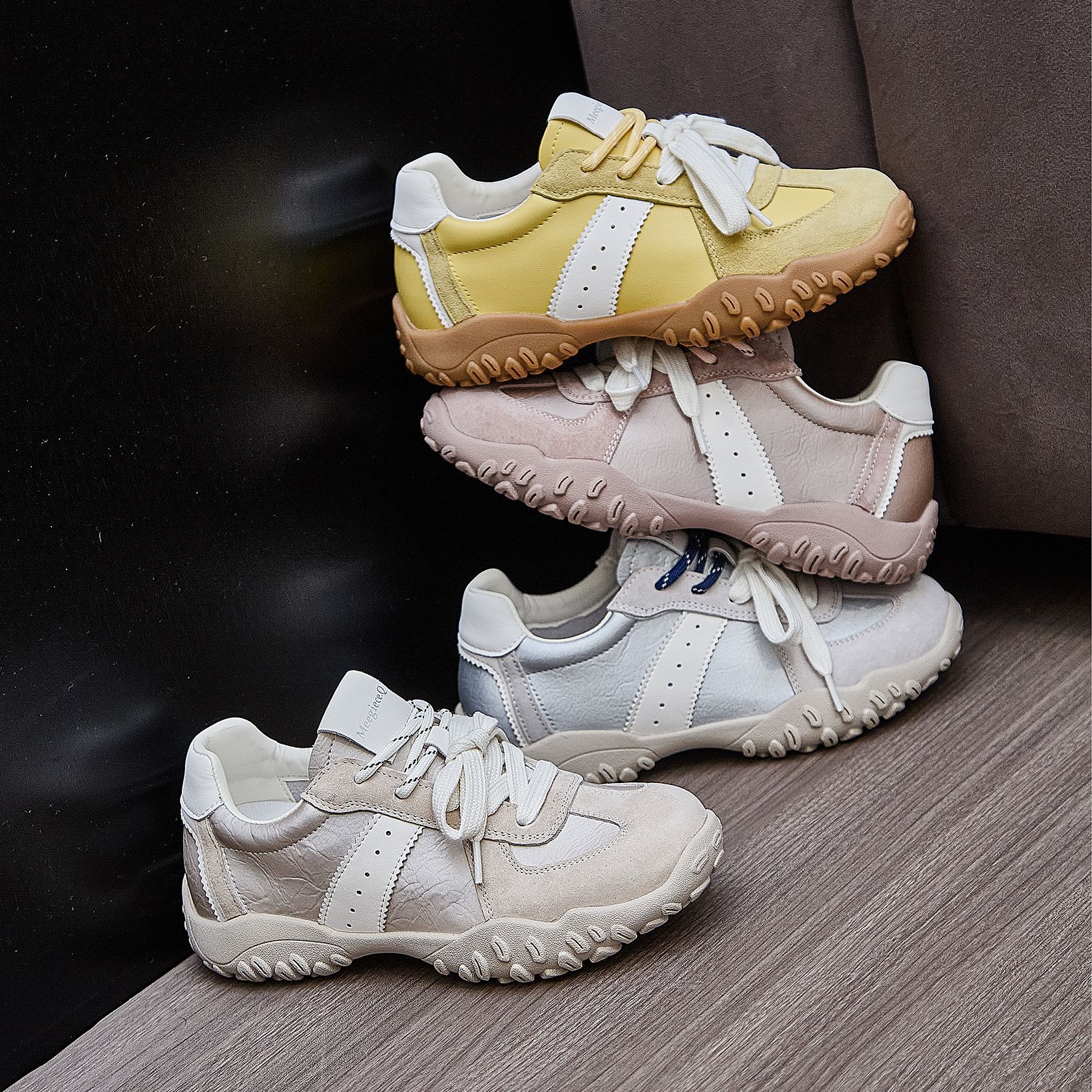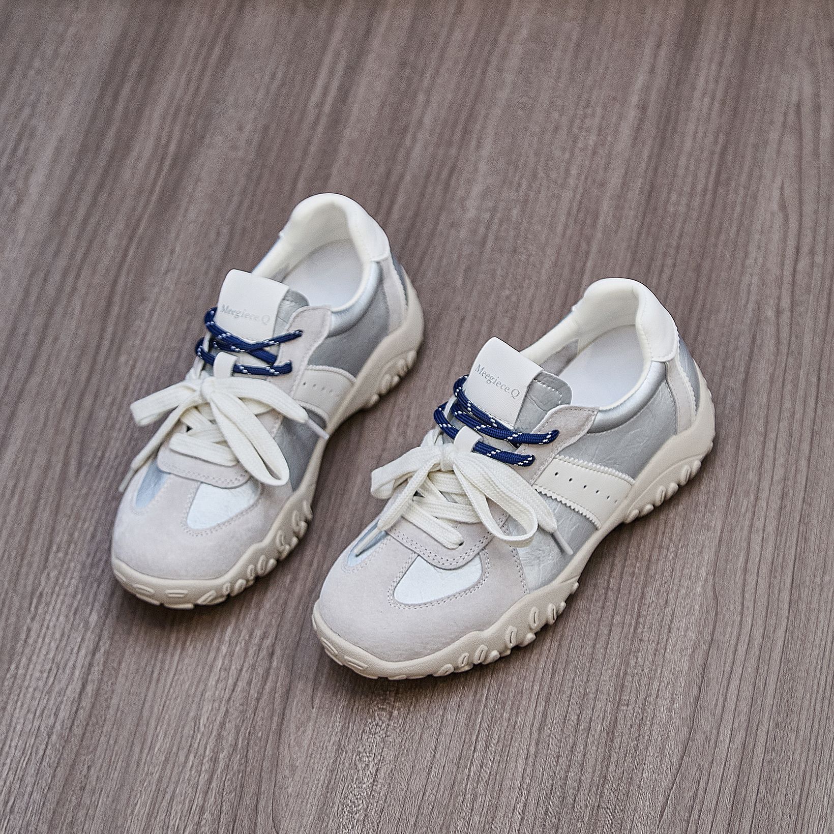 Кожаная весна и лето 2025 новый 7cm внутренний рост дикие повседневные модные кроссовки женские круглые шнуровые туфли