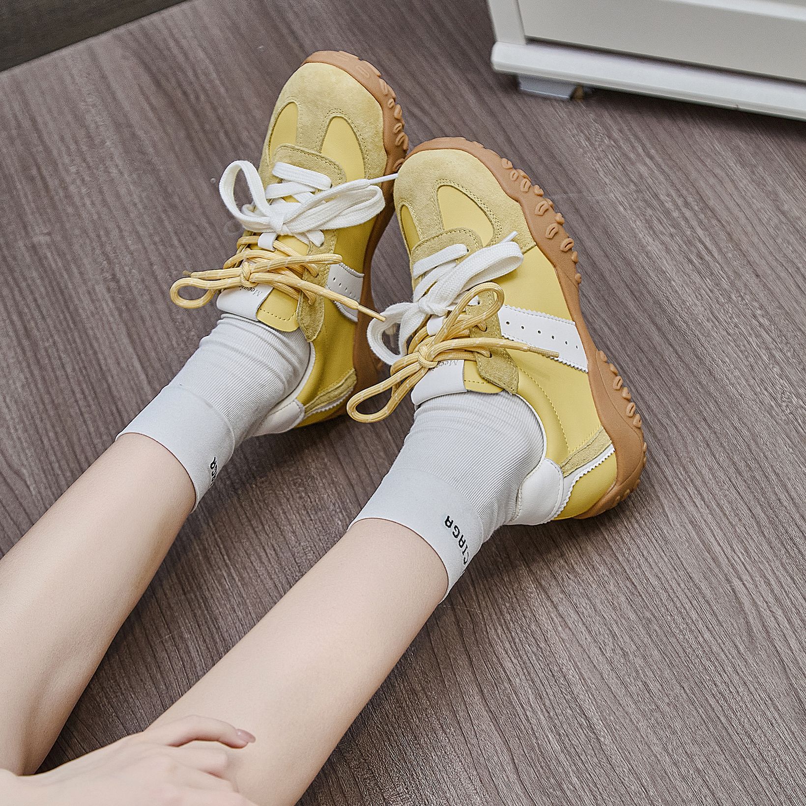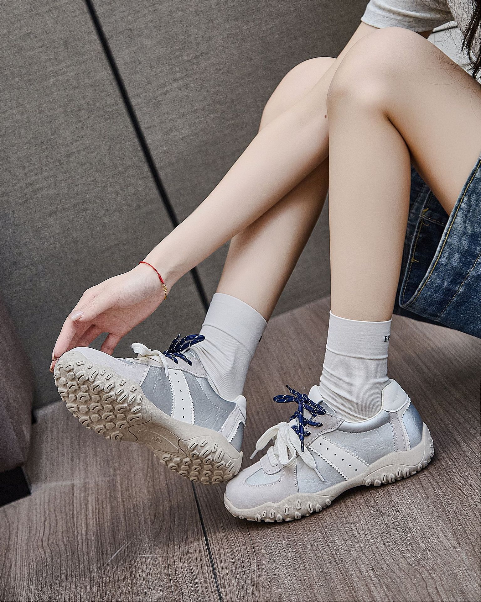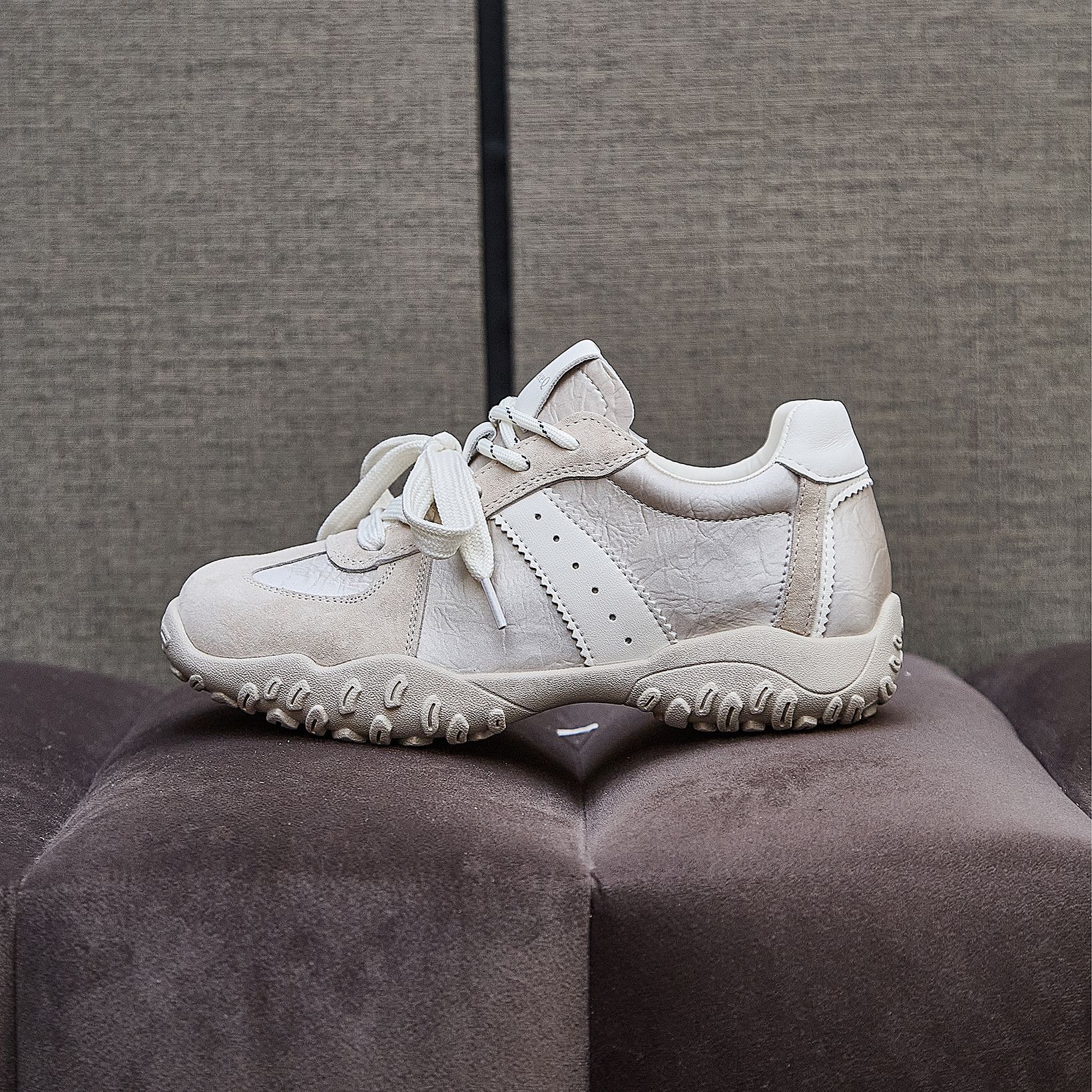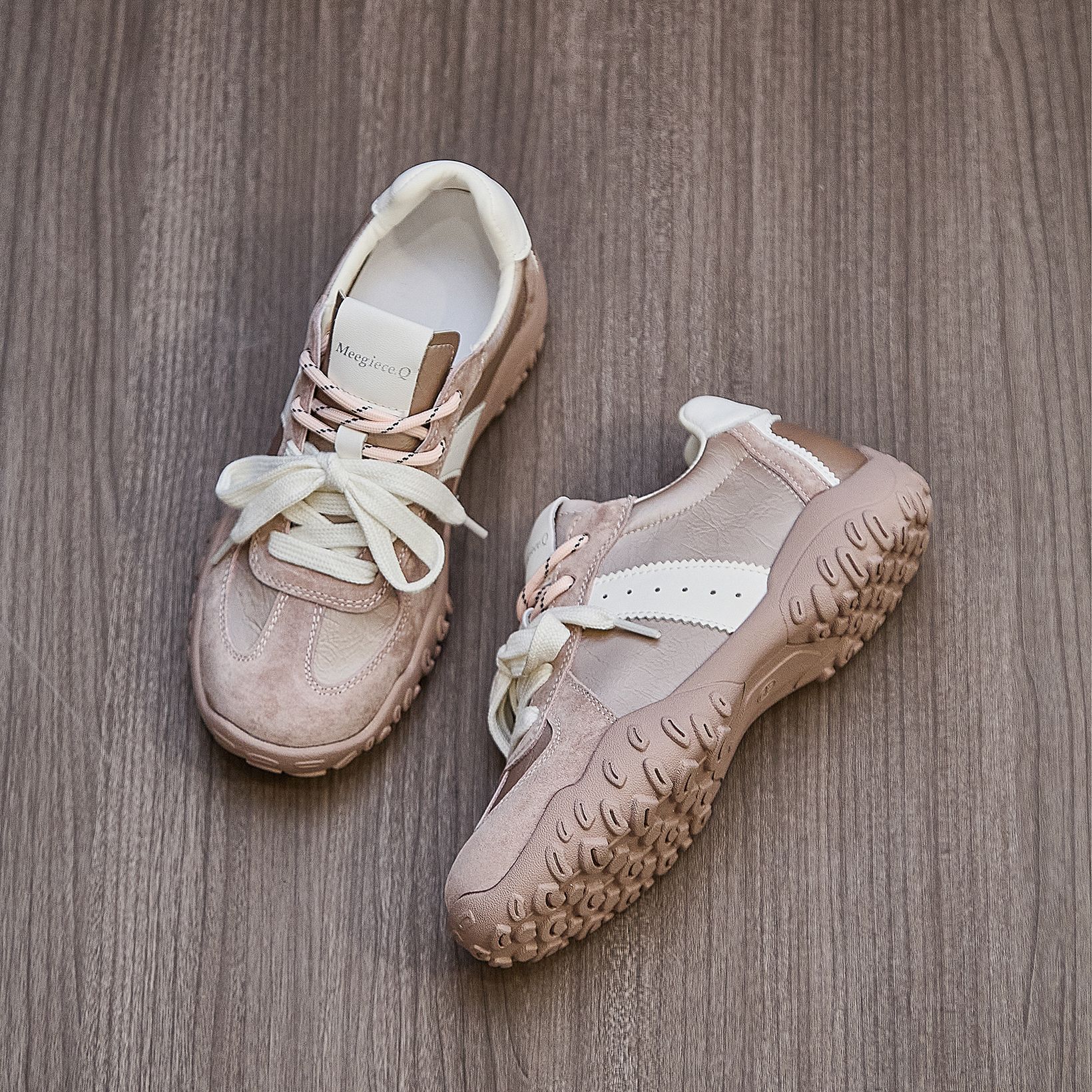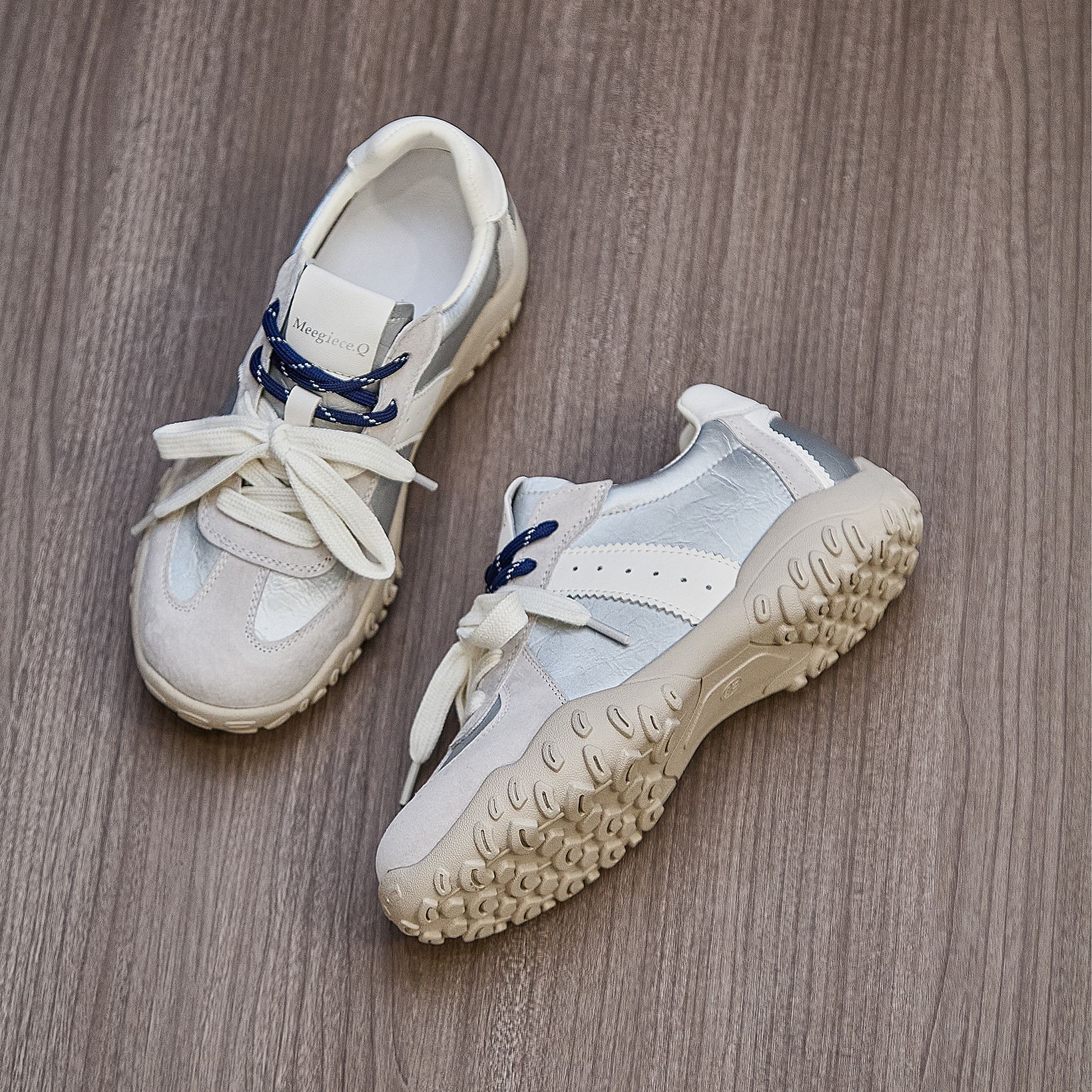 Кожаная весна и лето 2025 новый 7cm внутренний рост дикие повседневные модные кроссовки женские круглые шнуровые туфли