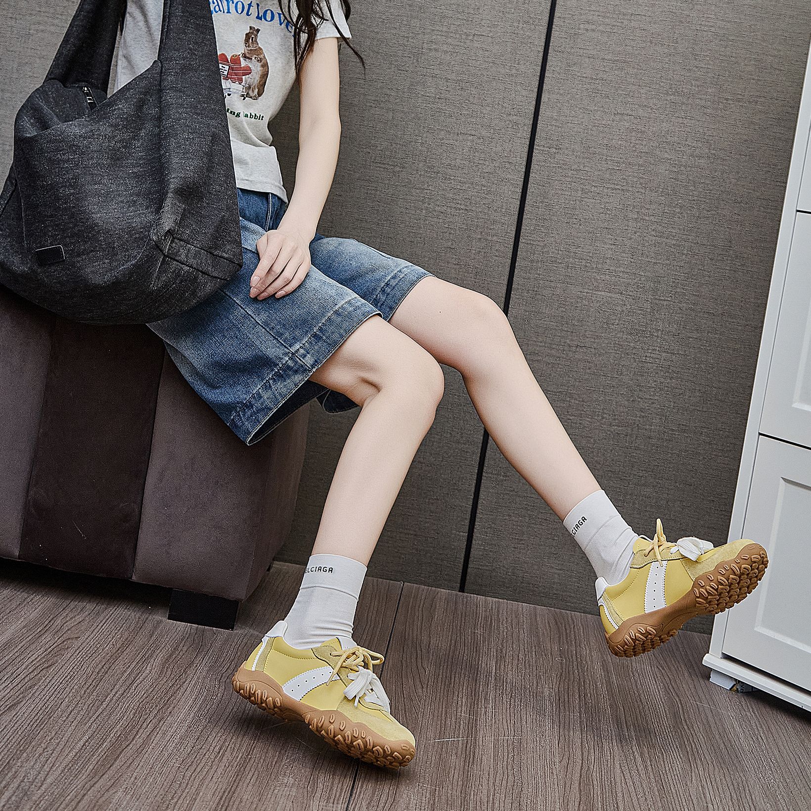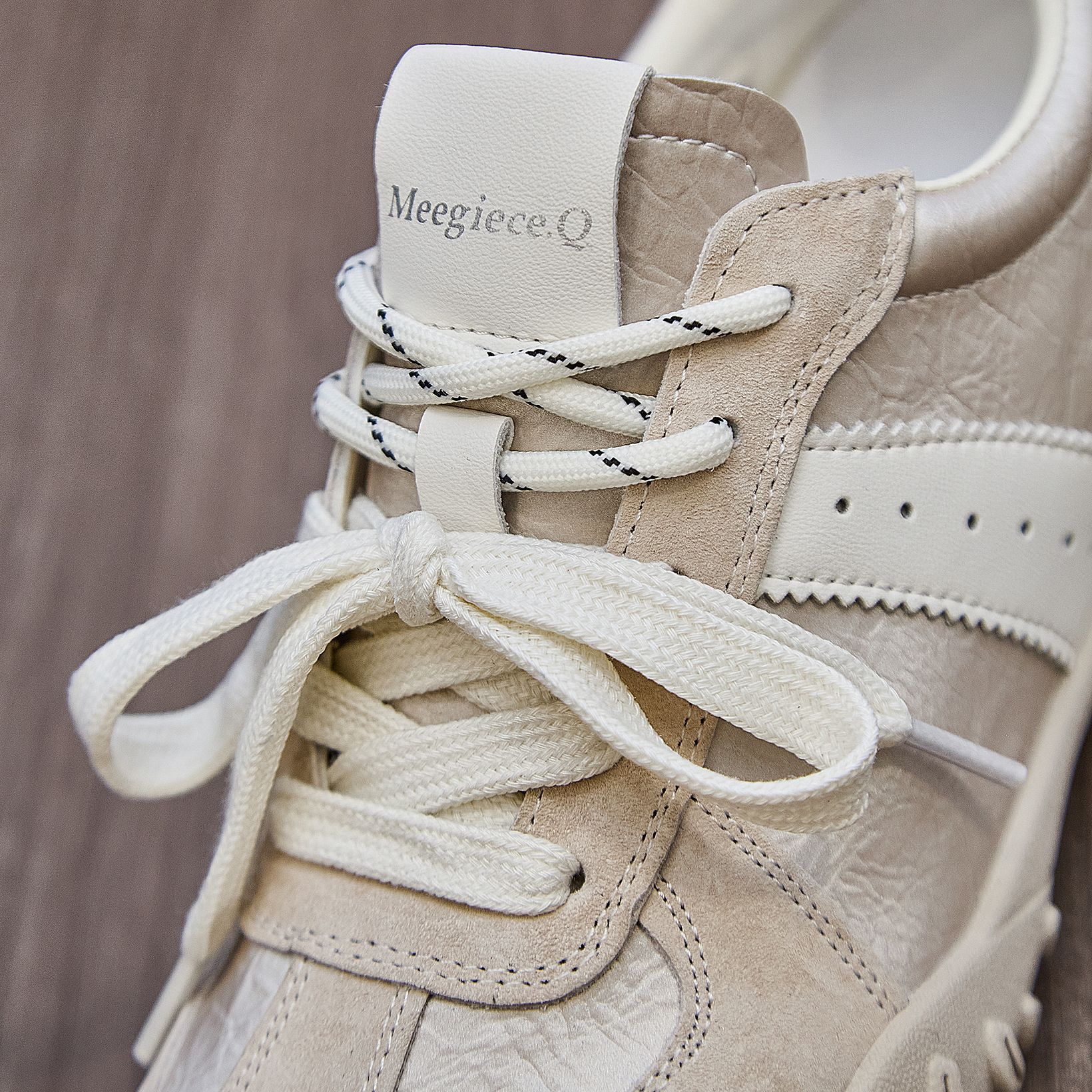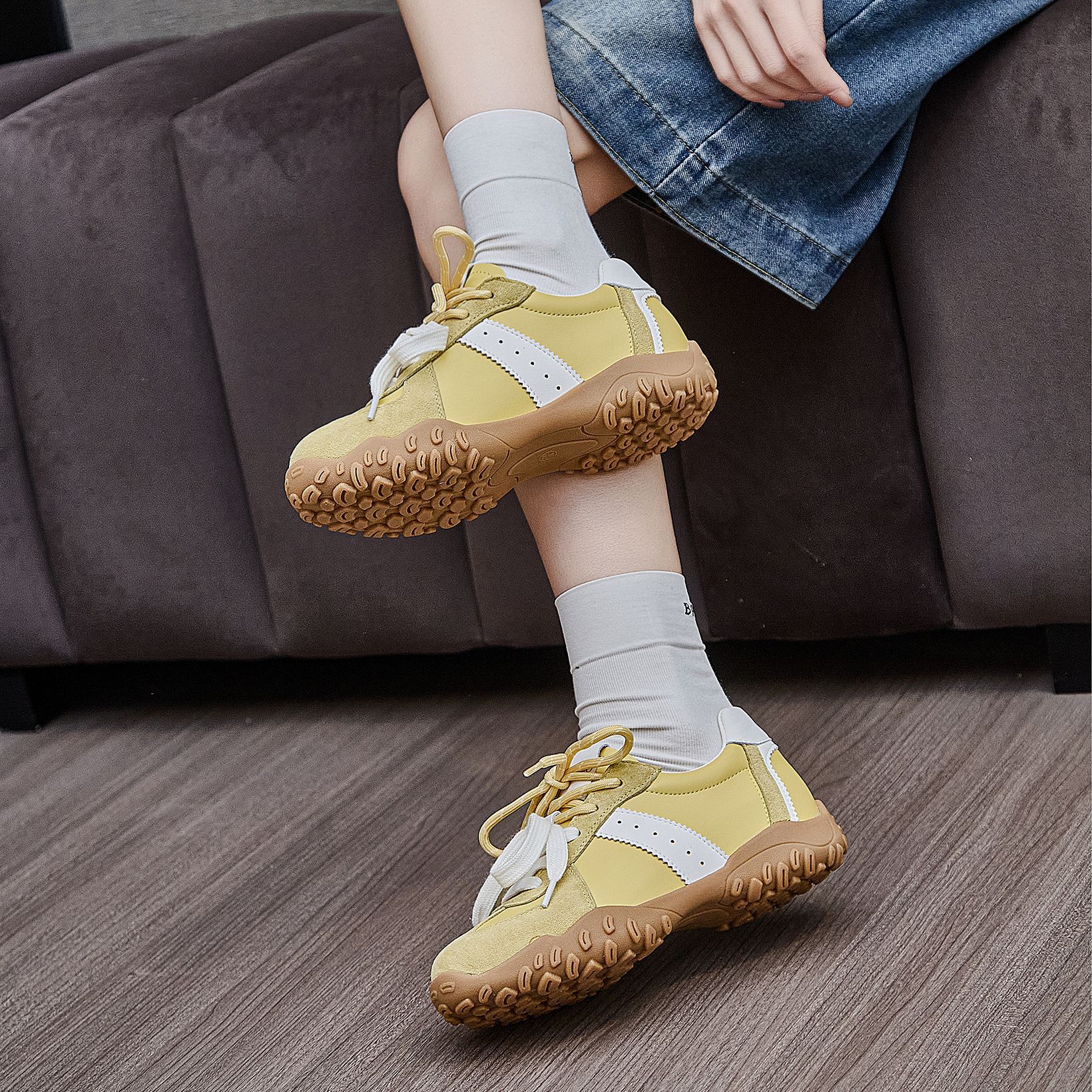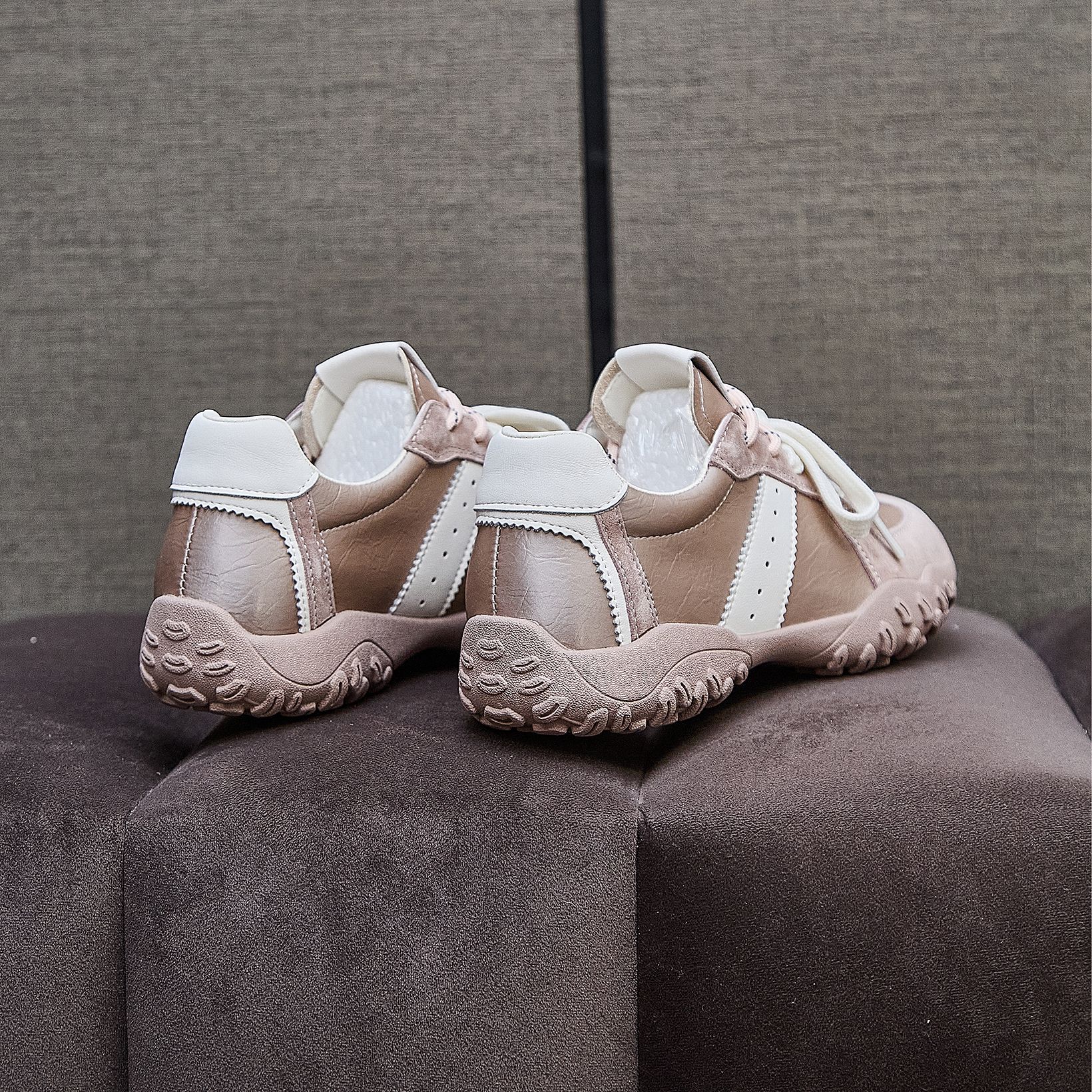 Кожаная весна и лето 2025 новый 7cm внутренний рост дикие повседневные модные кроссовки женские круглые шнуровые туфли