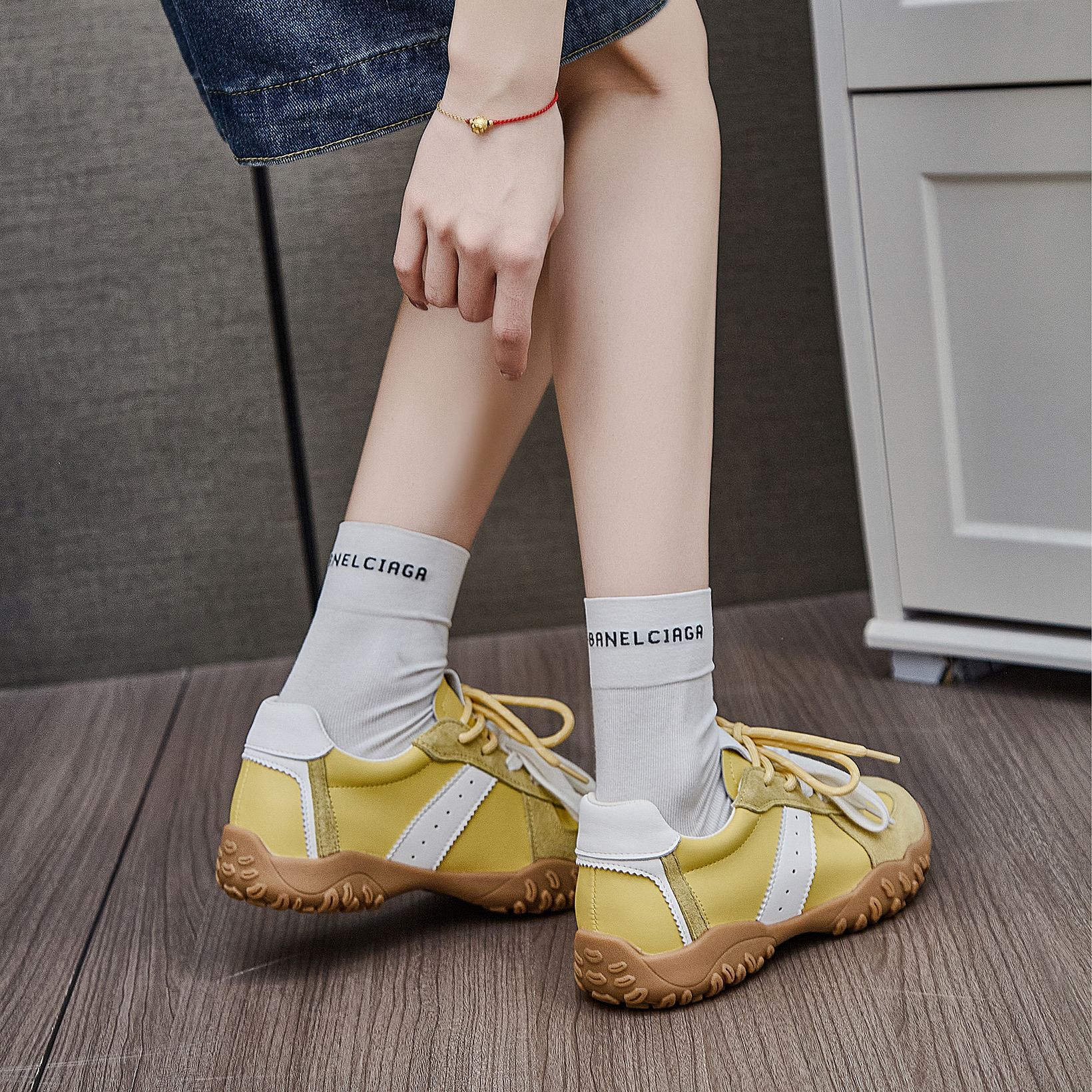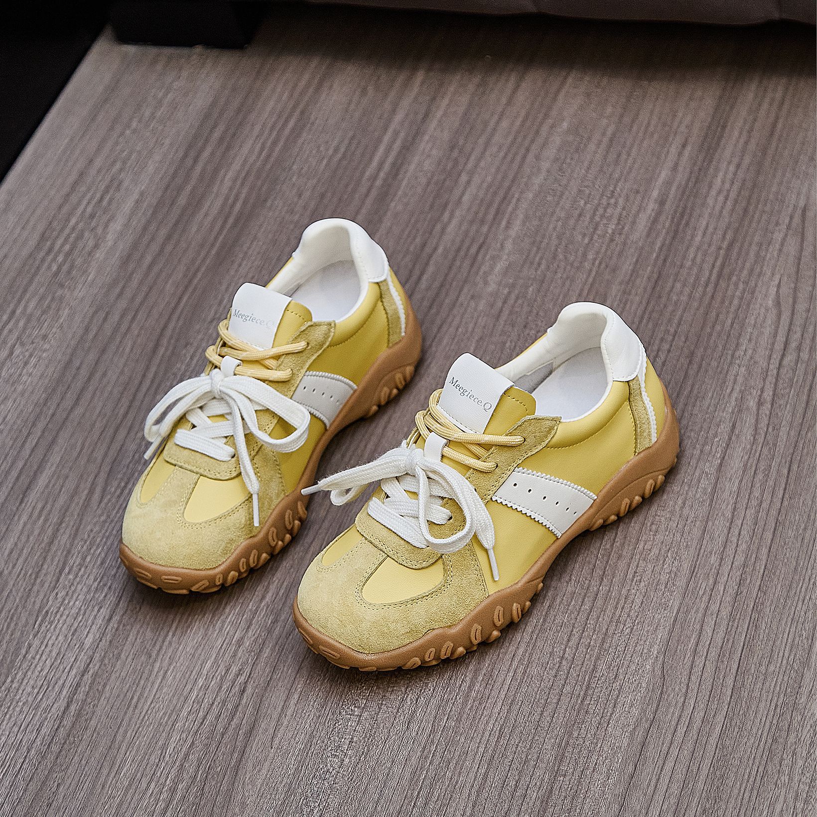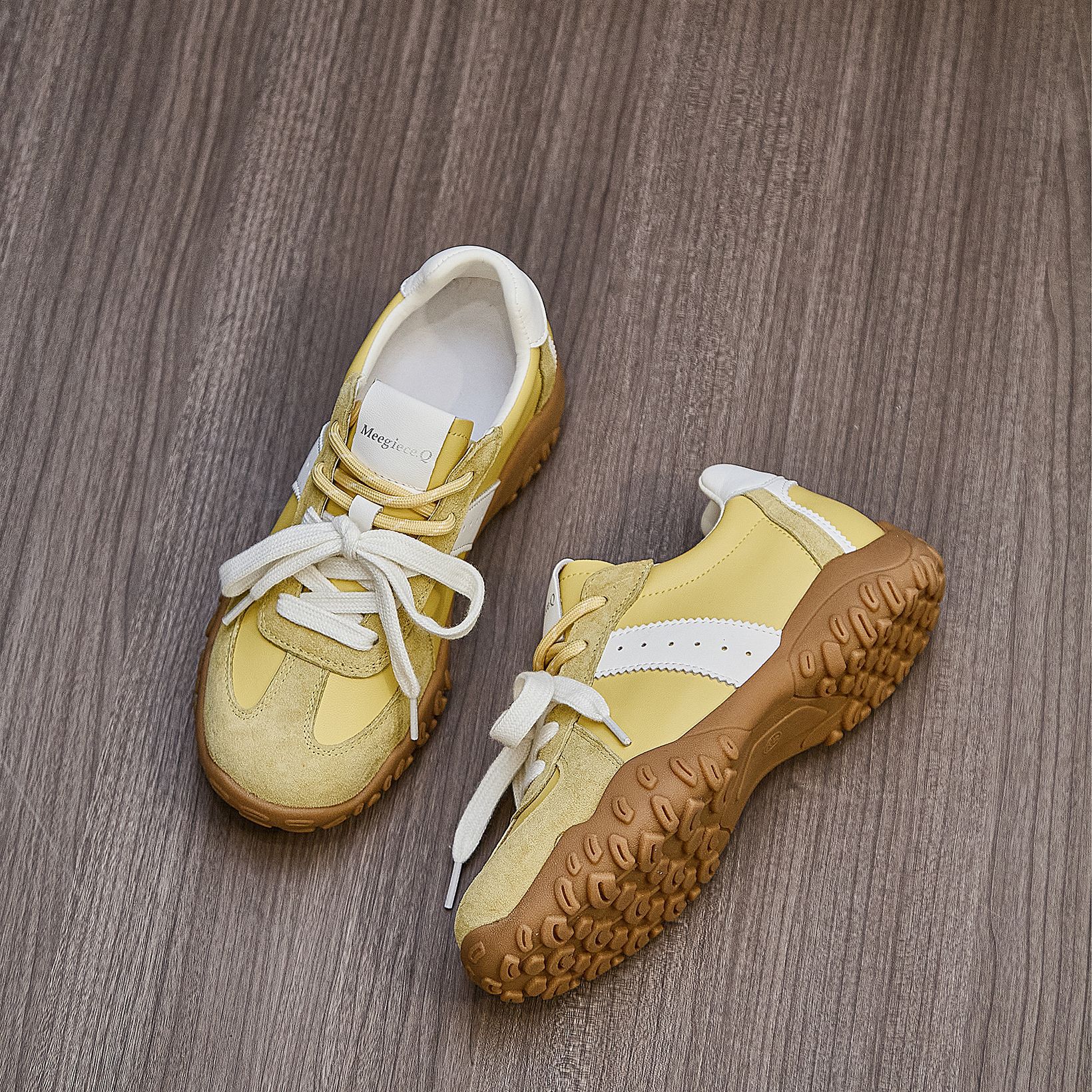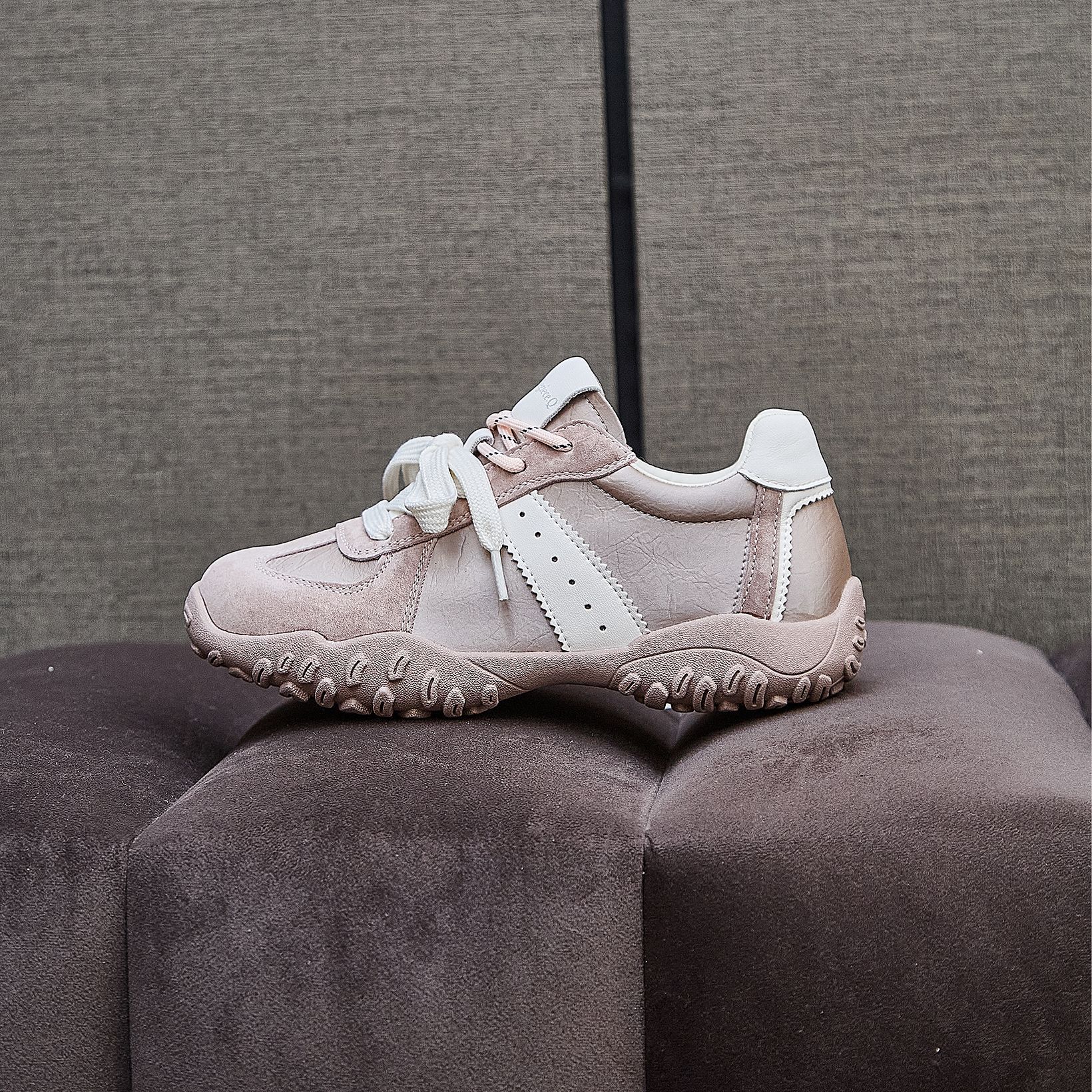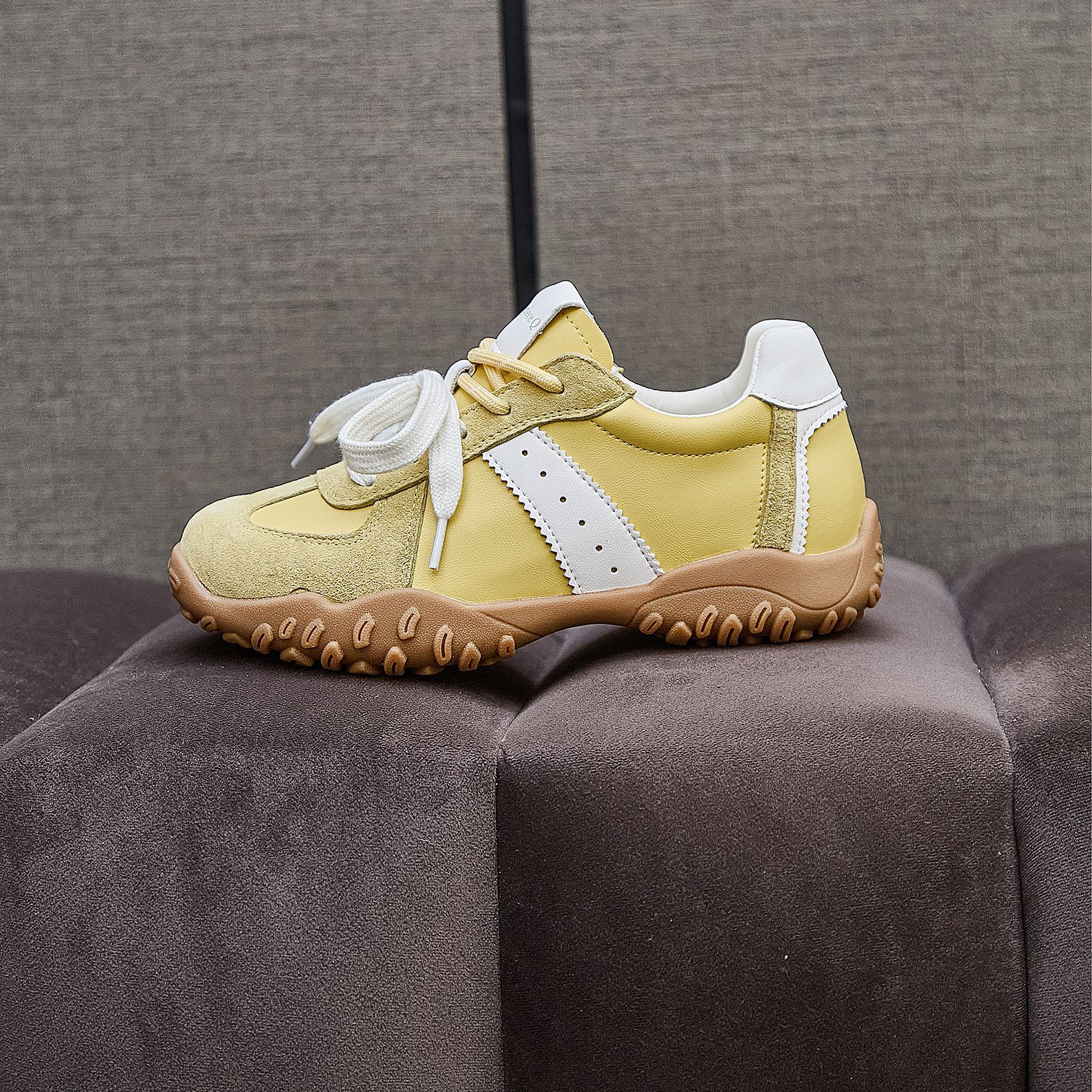 Кожаная весна и лето 2025 новый 7cm внутренний рост дикие повседневные модные кроссовки женские круглые шнуровые туфли