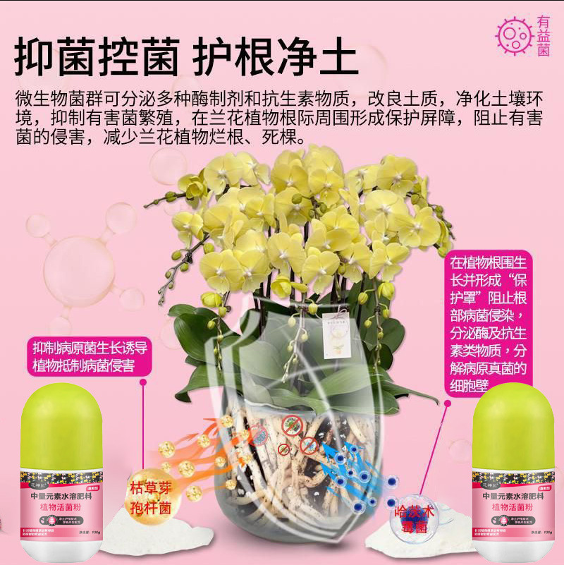 Порошок живых бактерий, специальный микробный препарат для орхидей, питает корни, укрепляет корни, предотвращает гниение корней, водорастворимое удобрение, питает цветы и защищает корни.