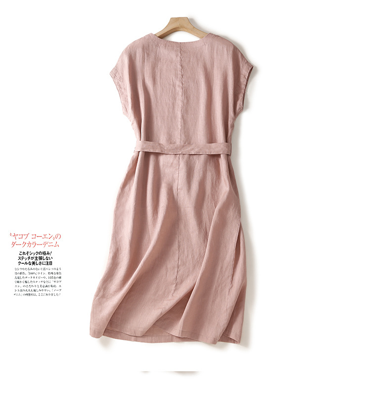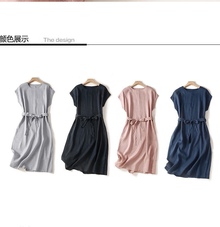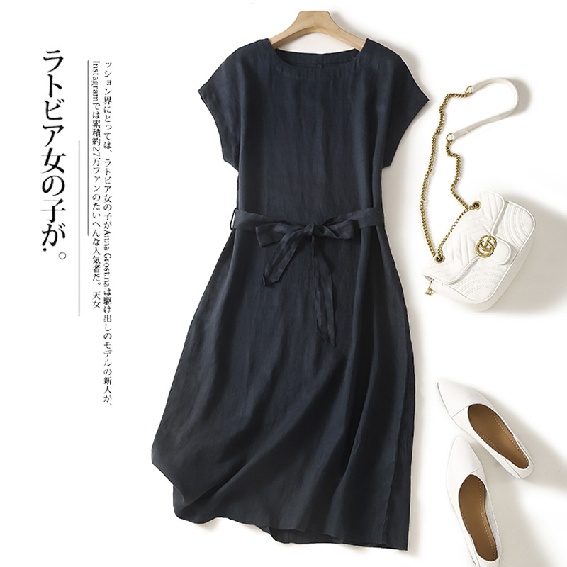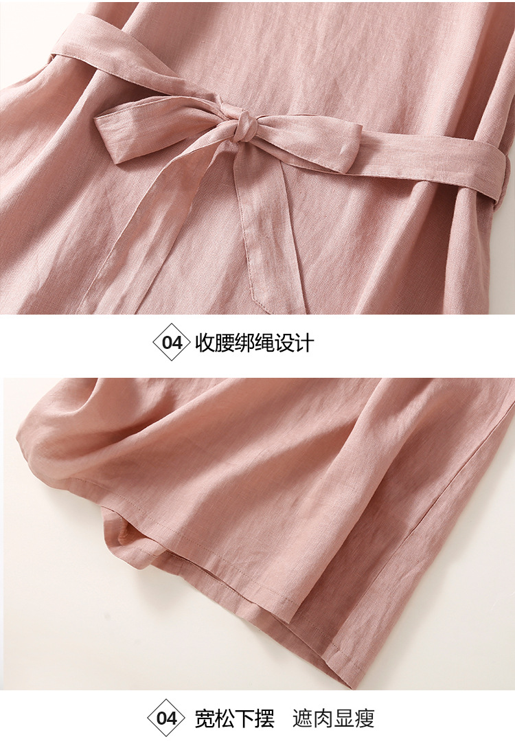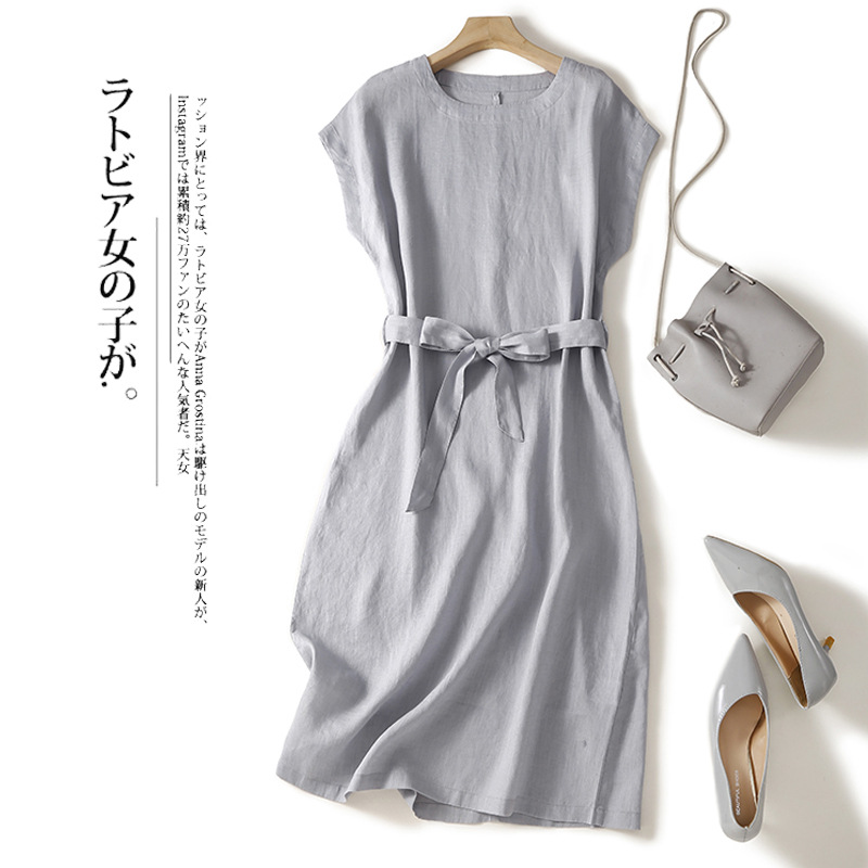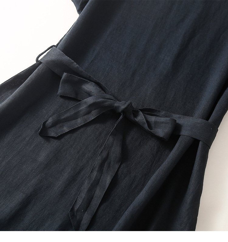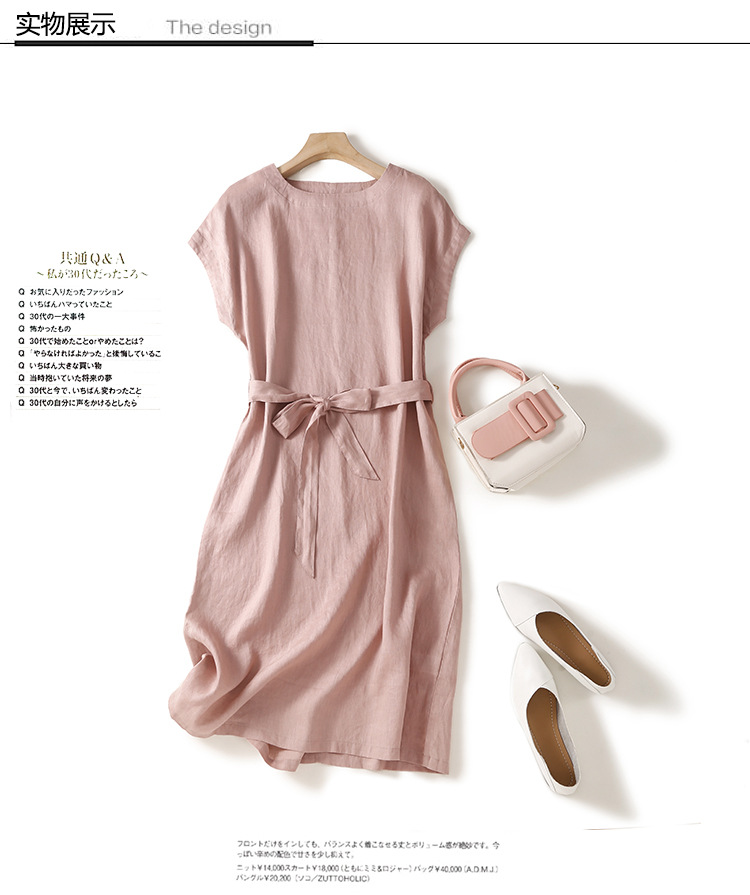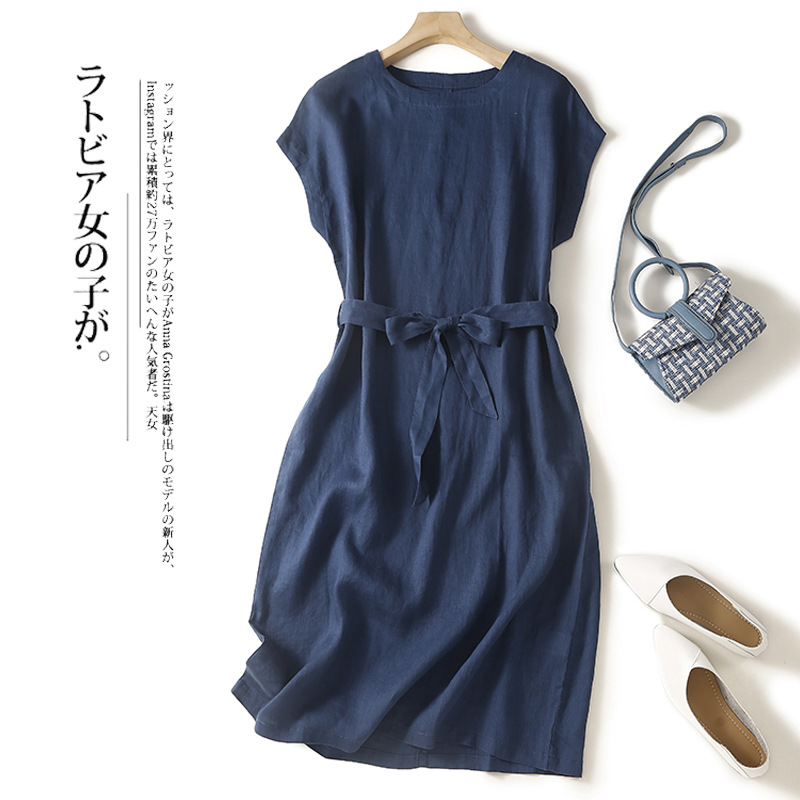 Настоящее фото нового летнего стиля 2022 года, литературное ретро-платье из хлопка и льна, простая юбка средней длины с короткими рукавами на шнуровке